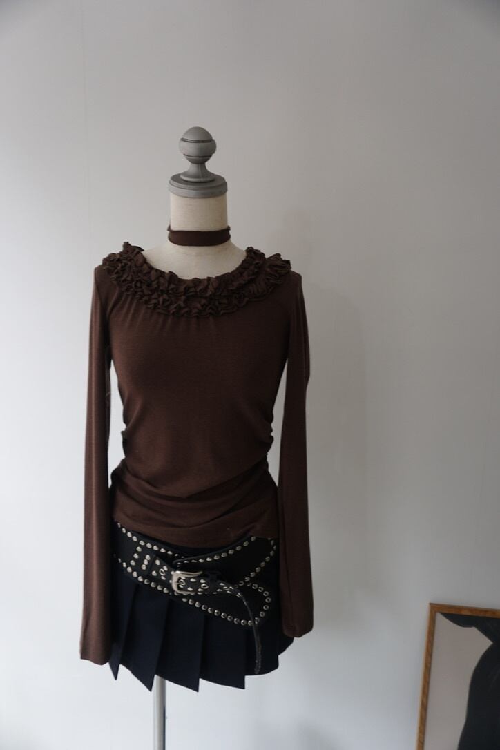 ふんわりとしたフリルディテールが印象的なロングスリーブトップス。