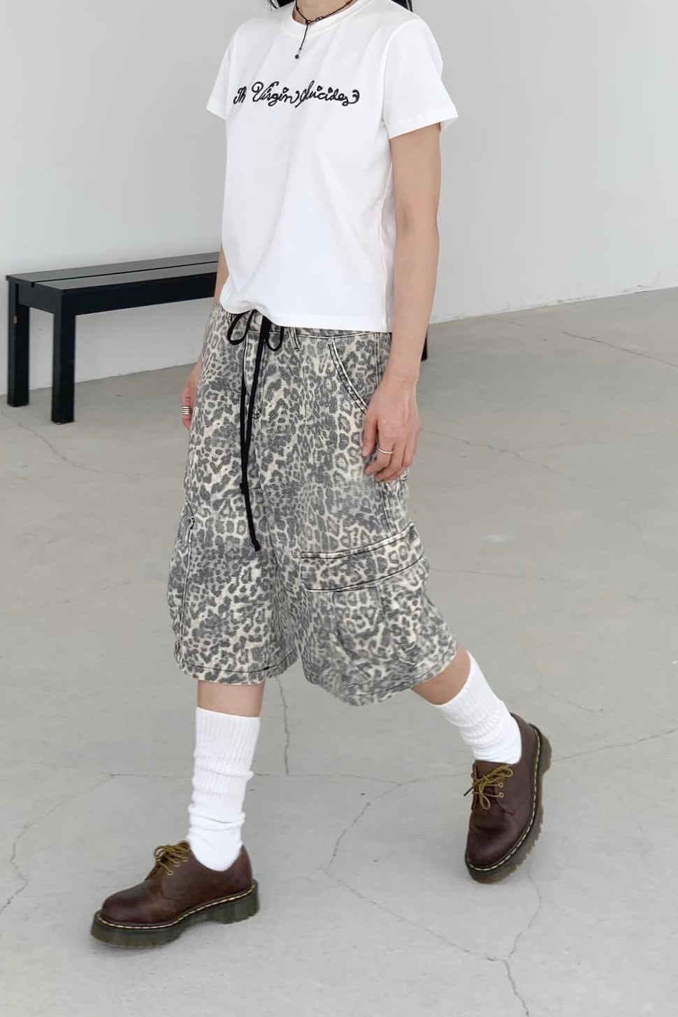 存在感のあるレオパード柄が目を引くカーゴハーフパンツ。