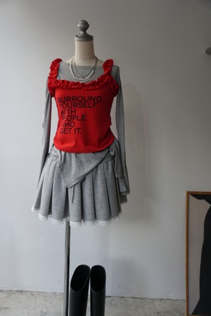 裾にはレースをあしらい、スポーティーさの中にフェミニンな要素をプラスしています。