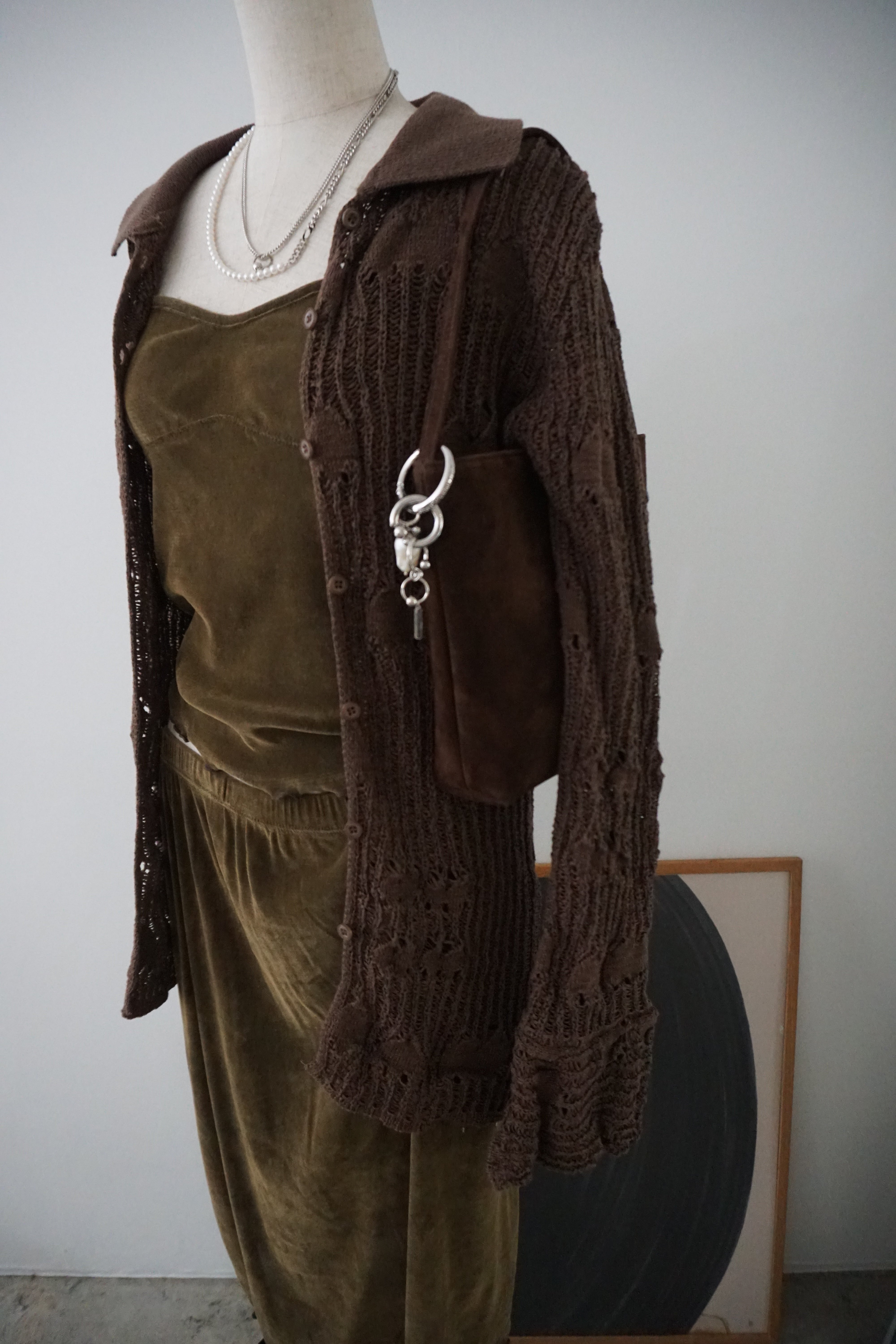柔らかなスエードの風合いが上品で、スタイリングに自然なニュアンスを添えてくれます。