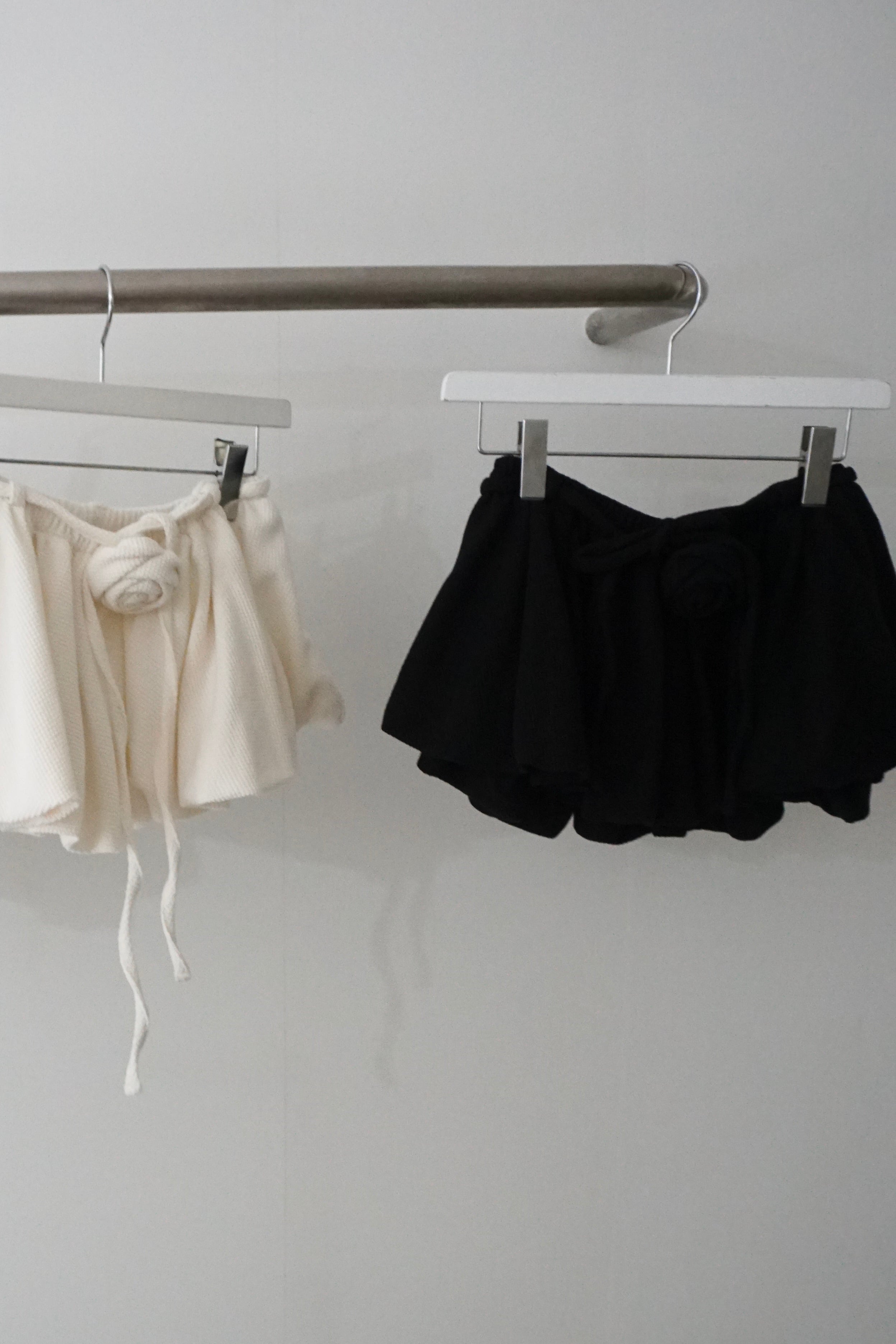 ふんわりと広がるシルエットに、バラモチーフのブローチと紐ベルトをあしらい、立体感のあるウエストラインを演出。