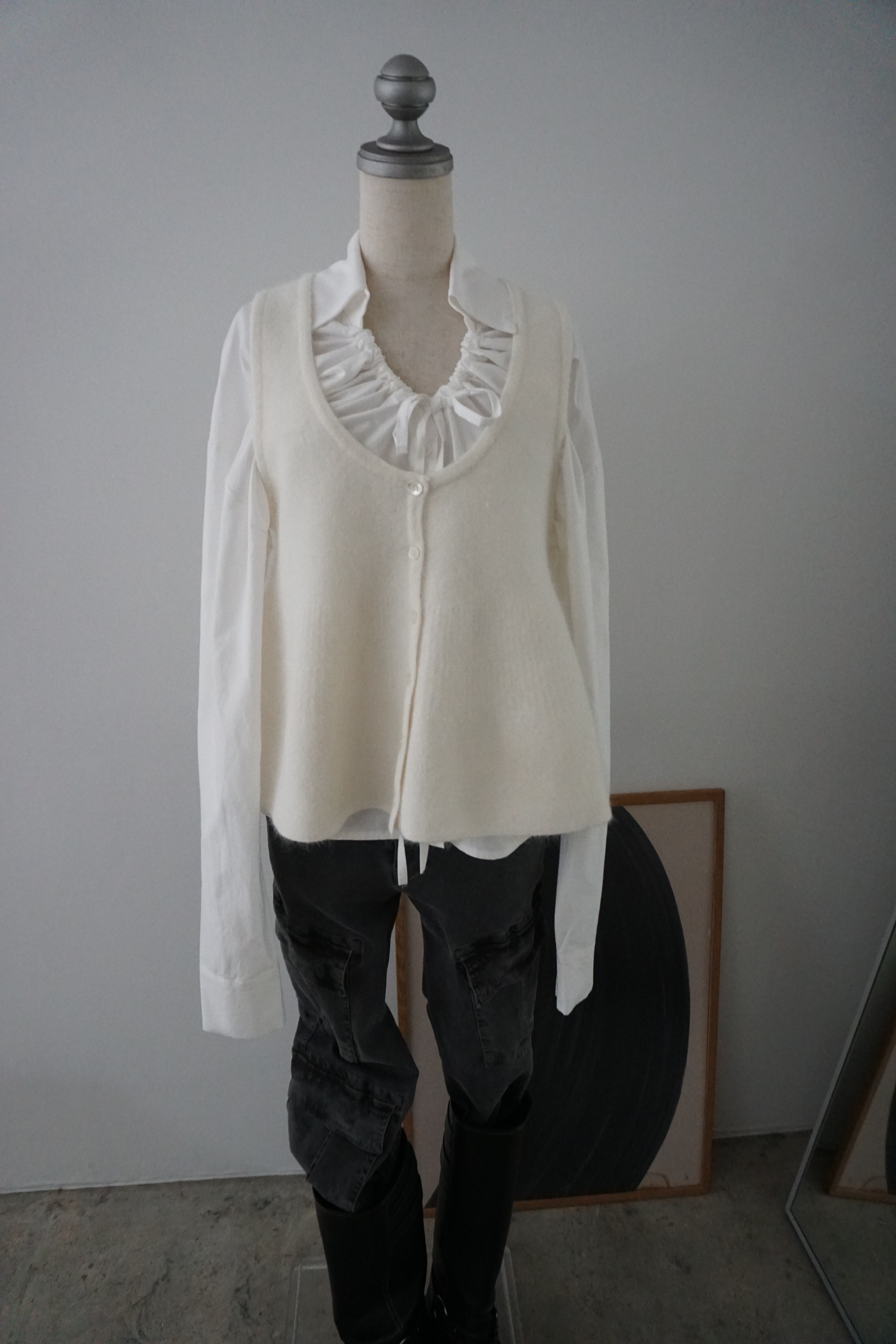 アンゴラ混の柔らかな風合いが魅力のニットベスト。