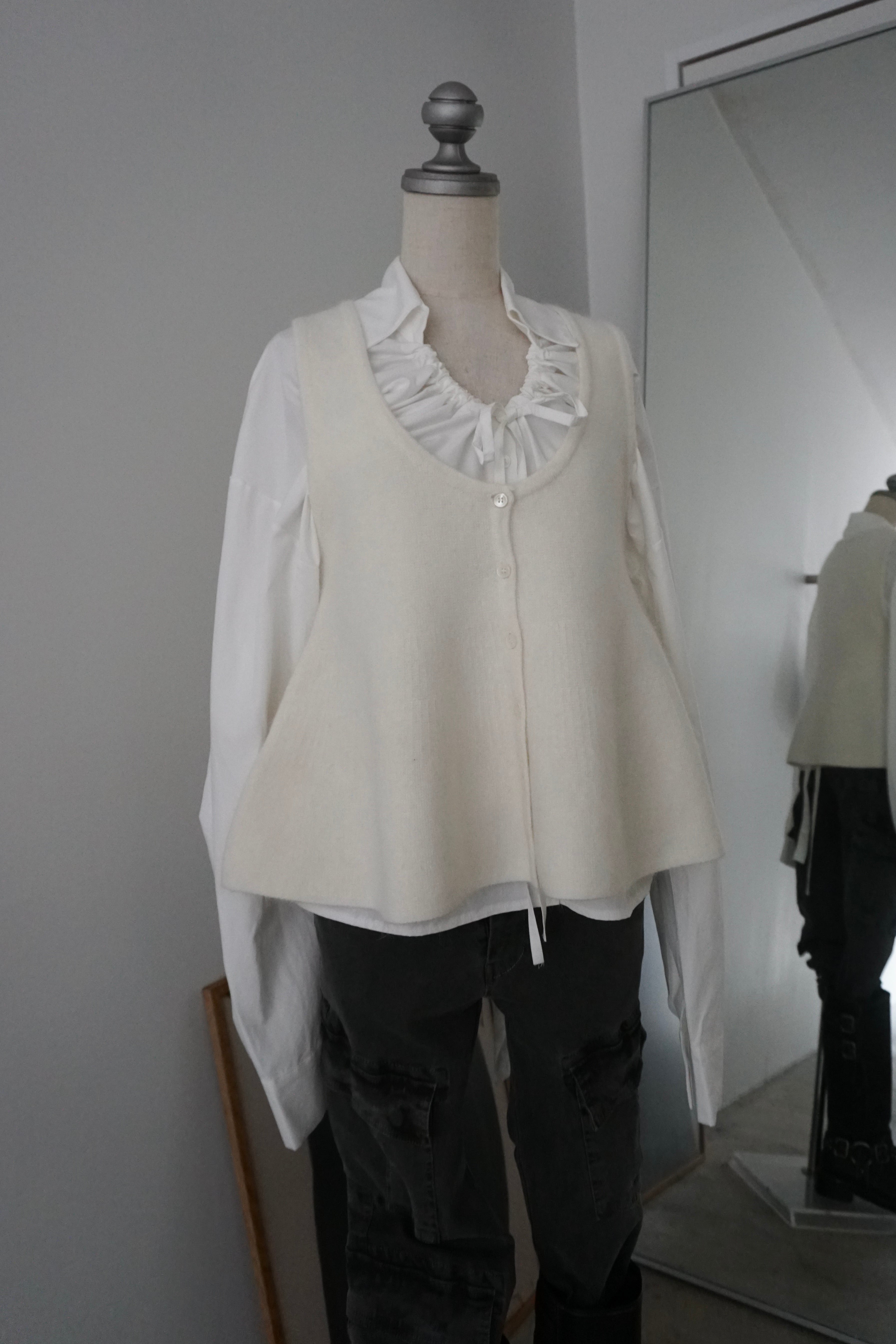 アンゴラ混の柔らかな風合いが魅力のニットベスト。