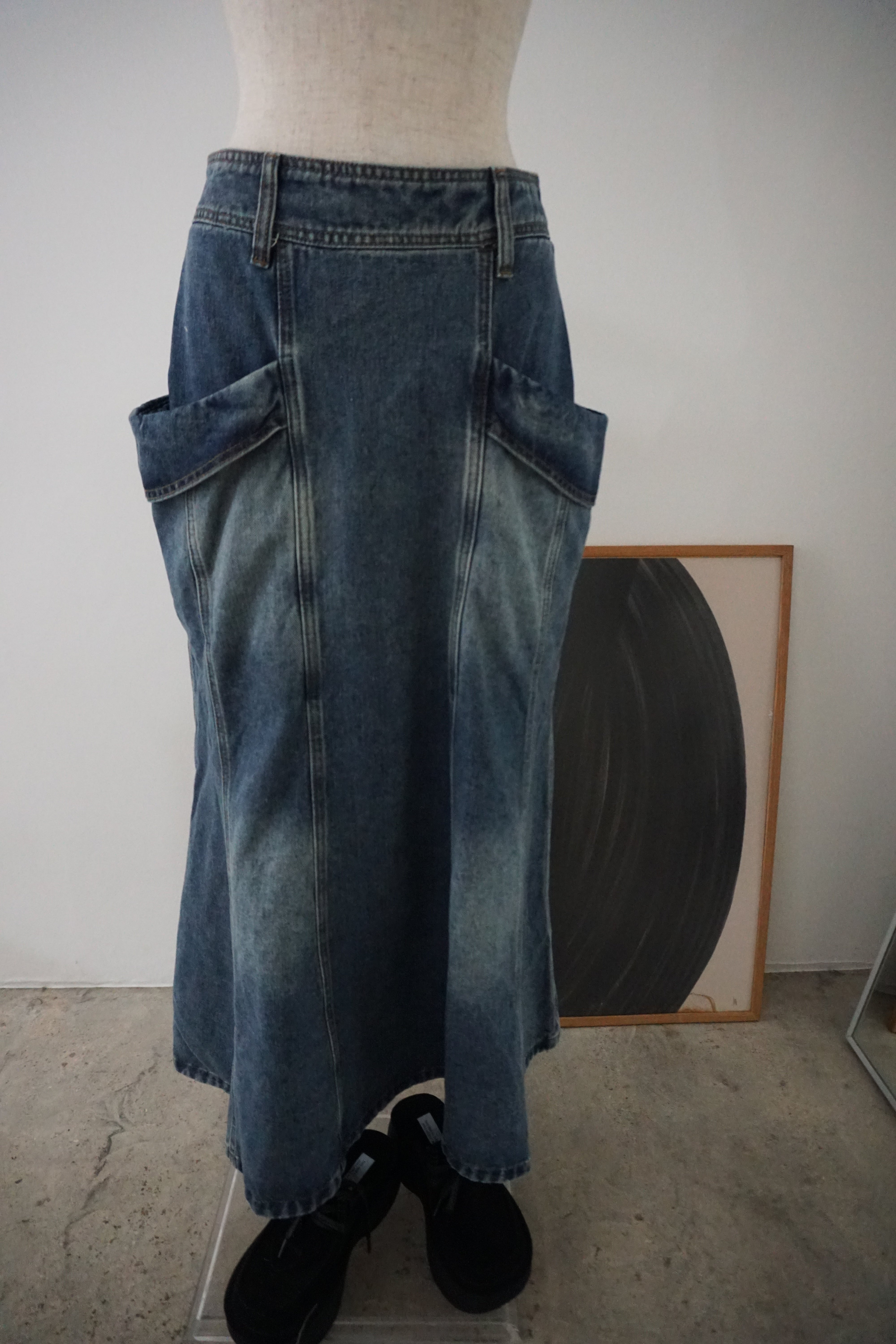 しっかりとしたデニム生地にステッチを効かせ、カジュアルながらもモード感のある佇まいに。