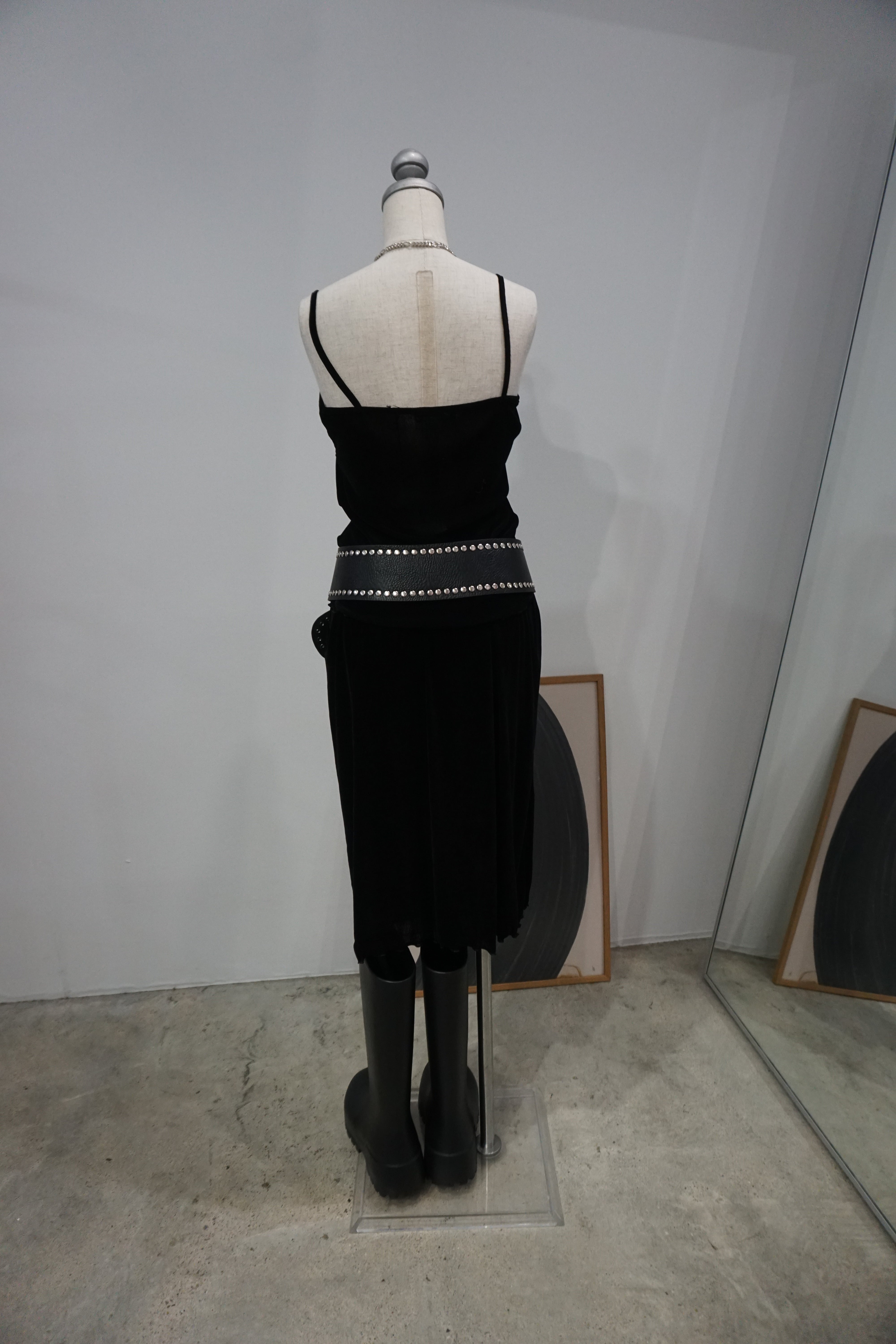 柔らかな光沢が上品なベロア素材を使用したキャミソールとスカートのセットアイテム。