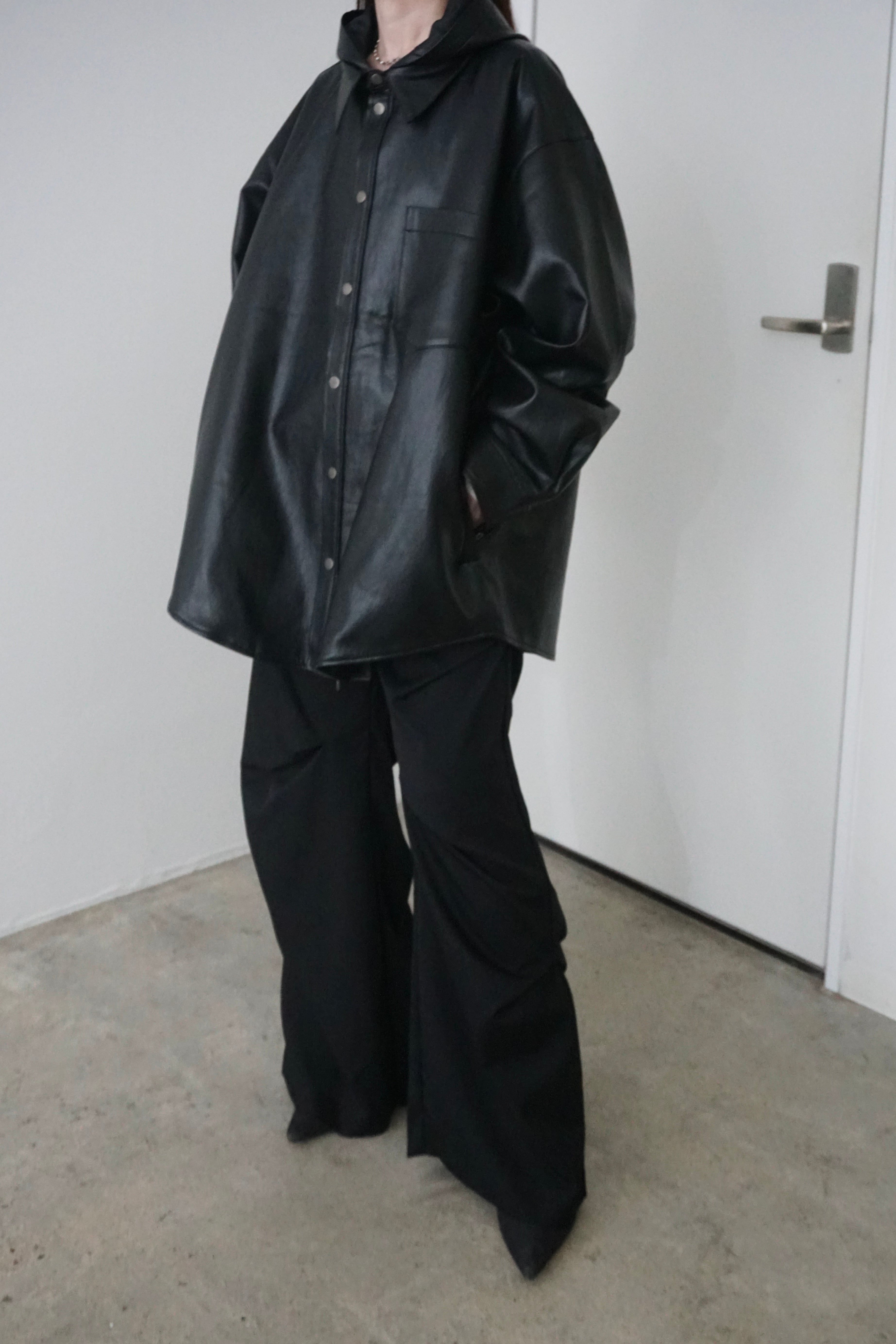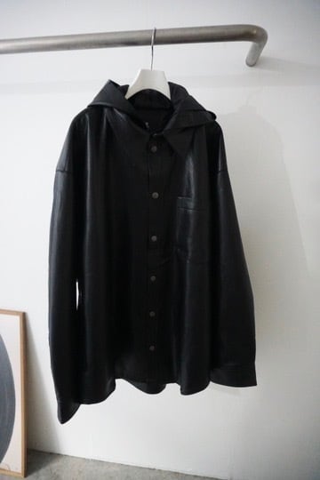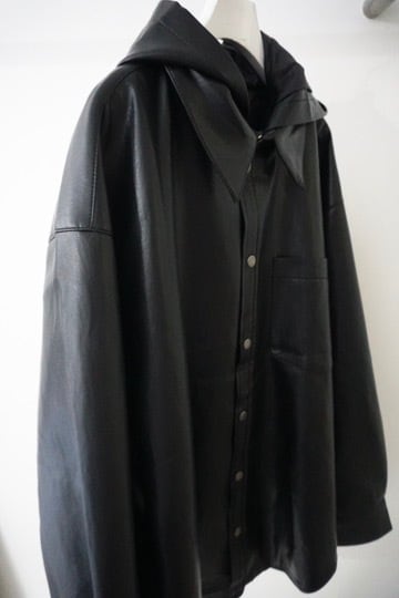 しなやかで上質なフェイクレザーを使用したフード付きシャツジャケット。