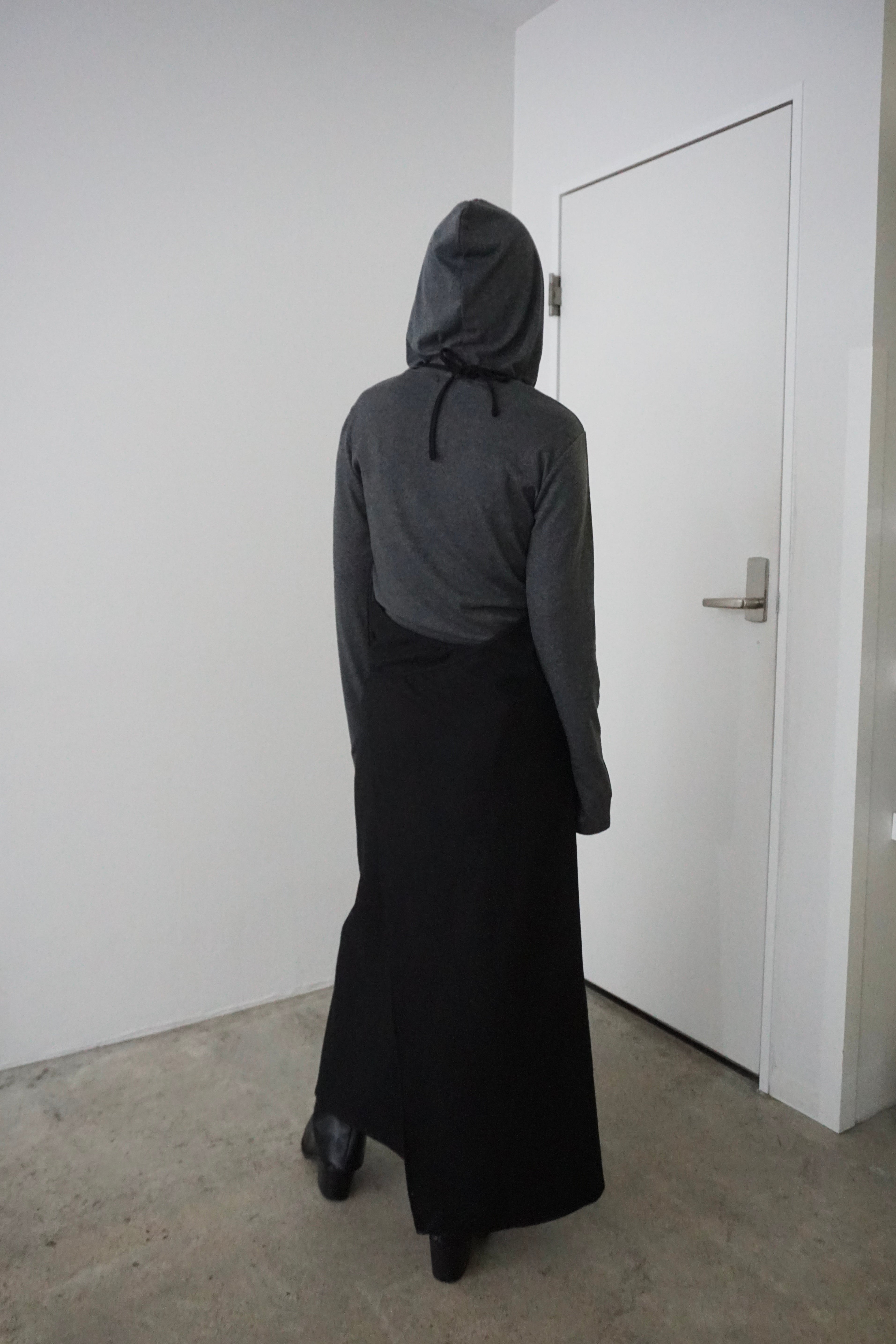 柔らかくフィットする綿ストレッチのカットソー素材を使用したクロップドフーディー