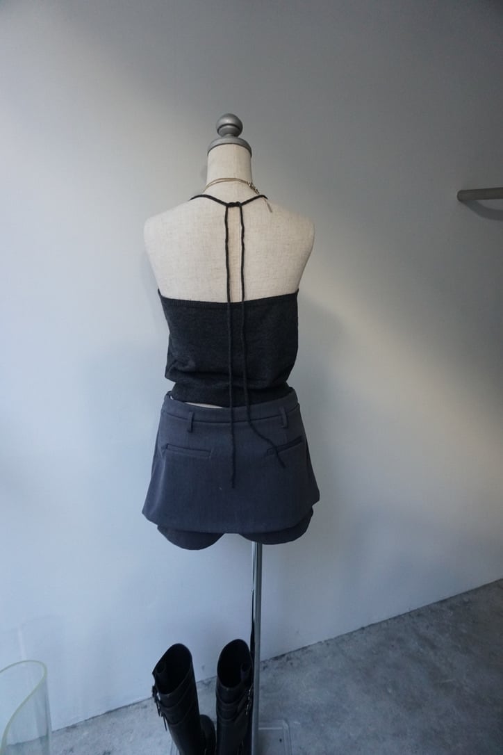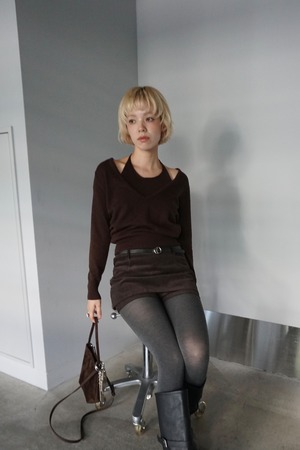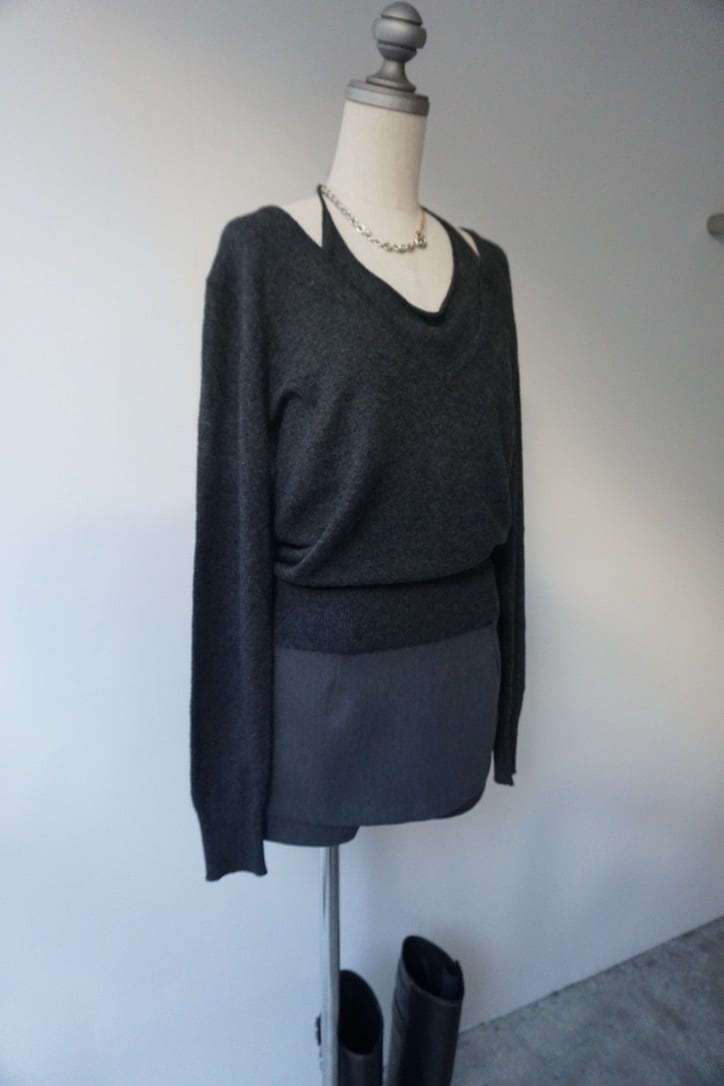 ウールブレンドのハイゲージニットを使用した、Vネックトップスとキャミソールのセット。