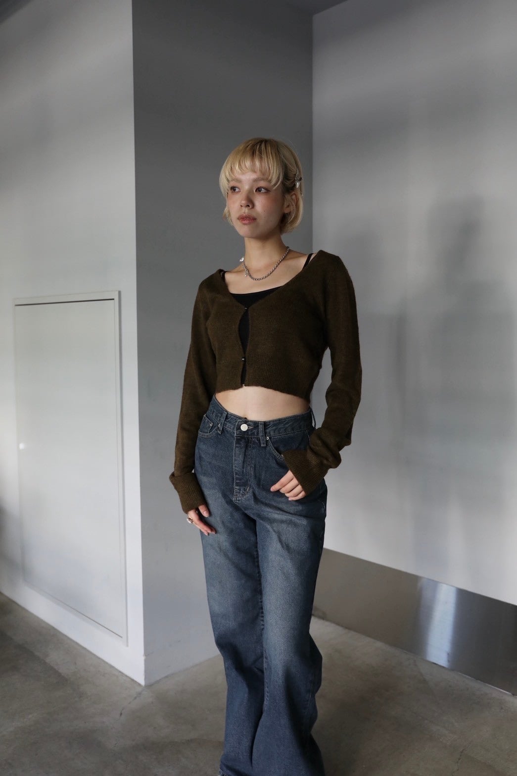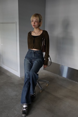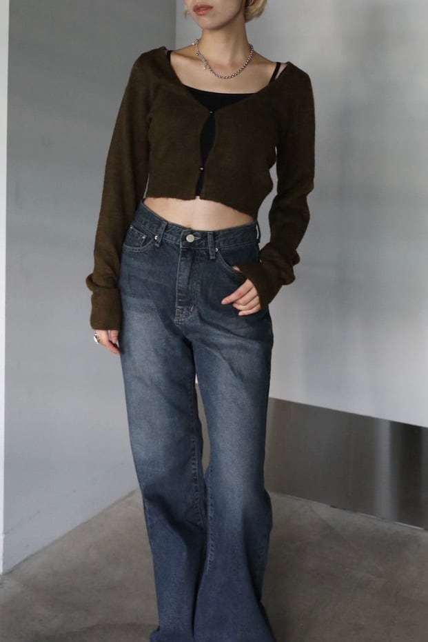 ウール混ニットのクロップドカーディガン