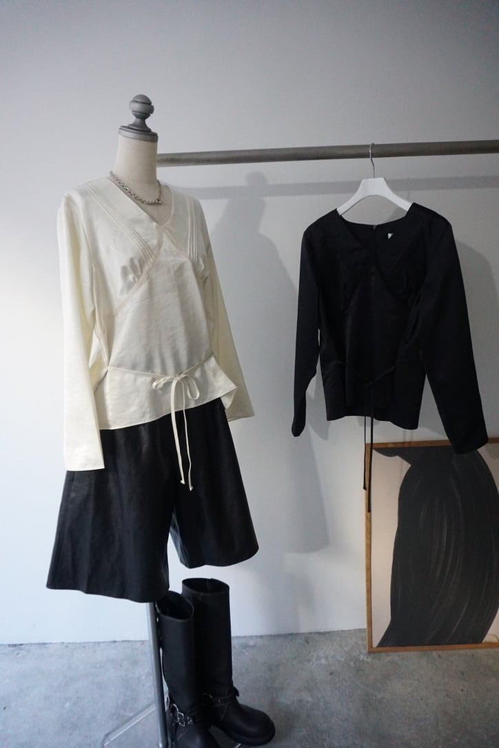 ピンタックとレース装飾を施したサテン素材のプルオーバー
