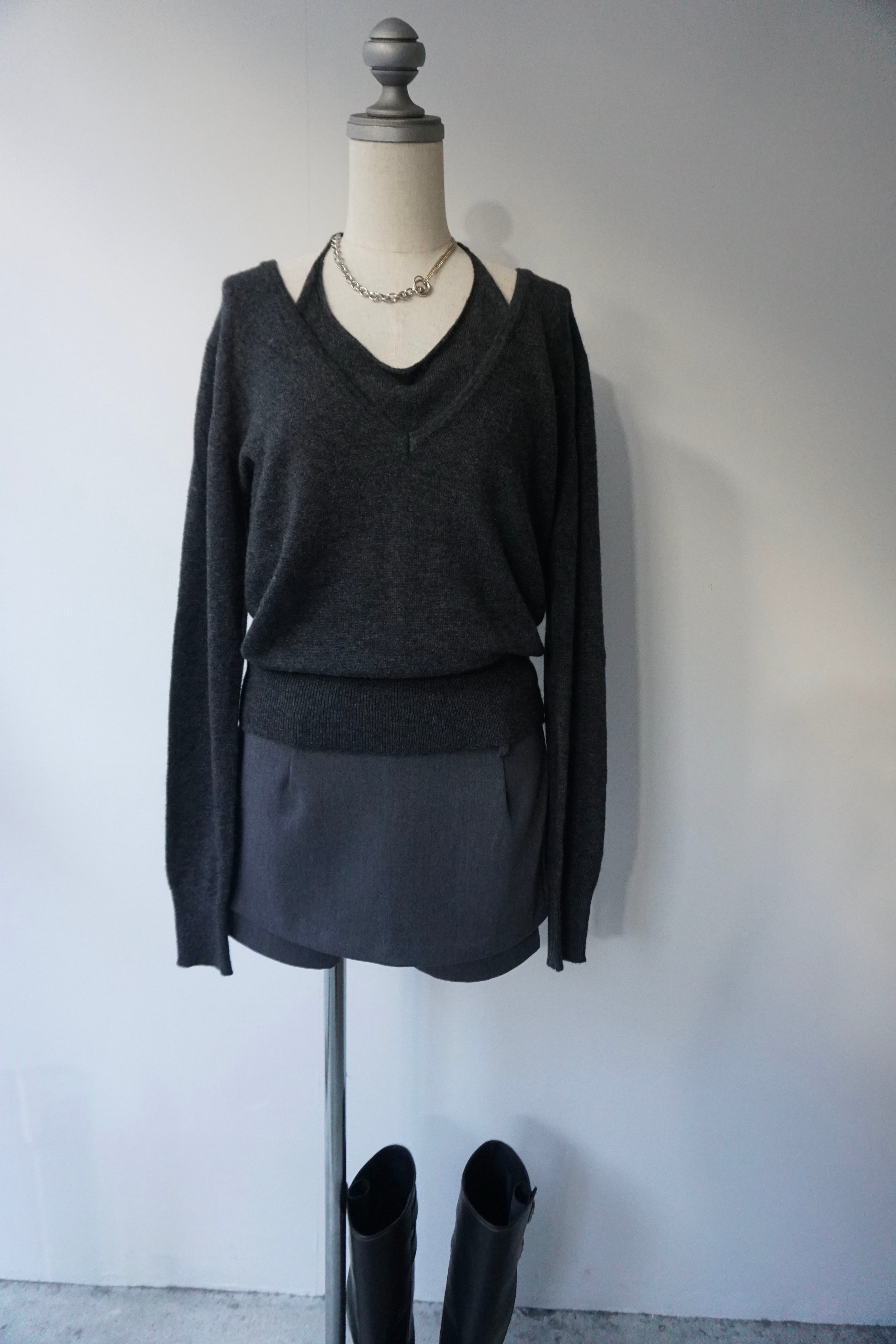 ハリのあるサージ素材を使用したレイヤードショートパンツ