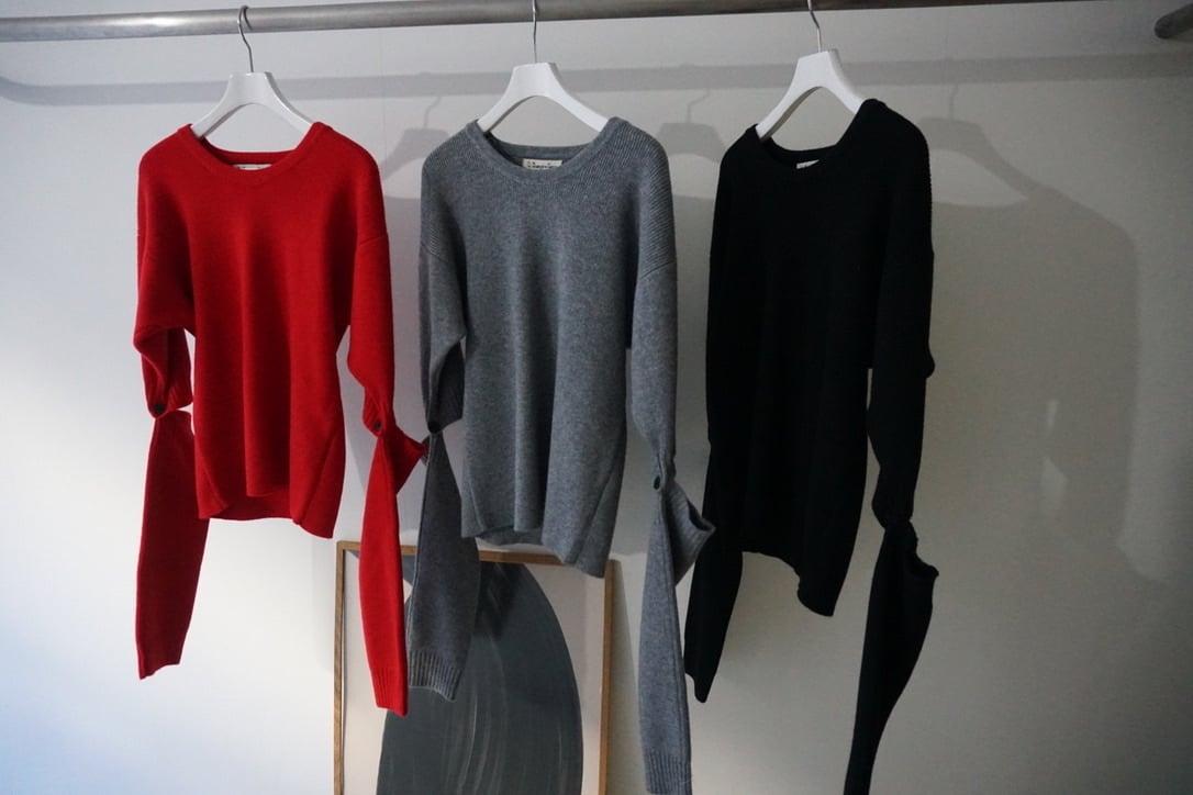 袖部分がボタンで取り外し可能な、デザイン性の高いニットトップス。