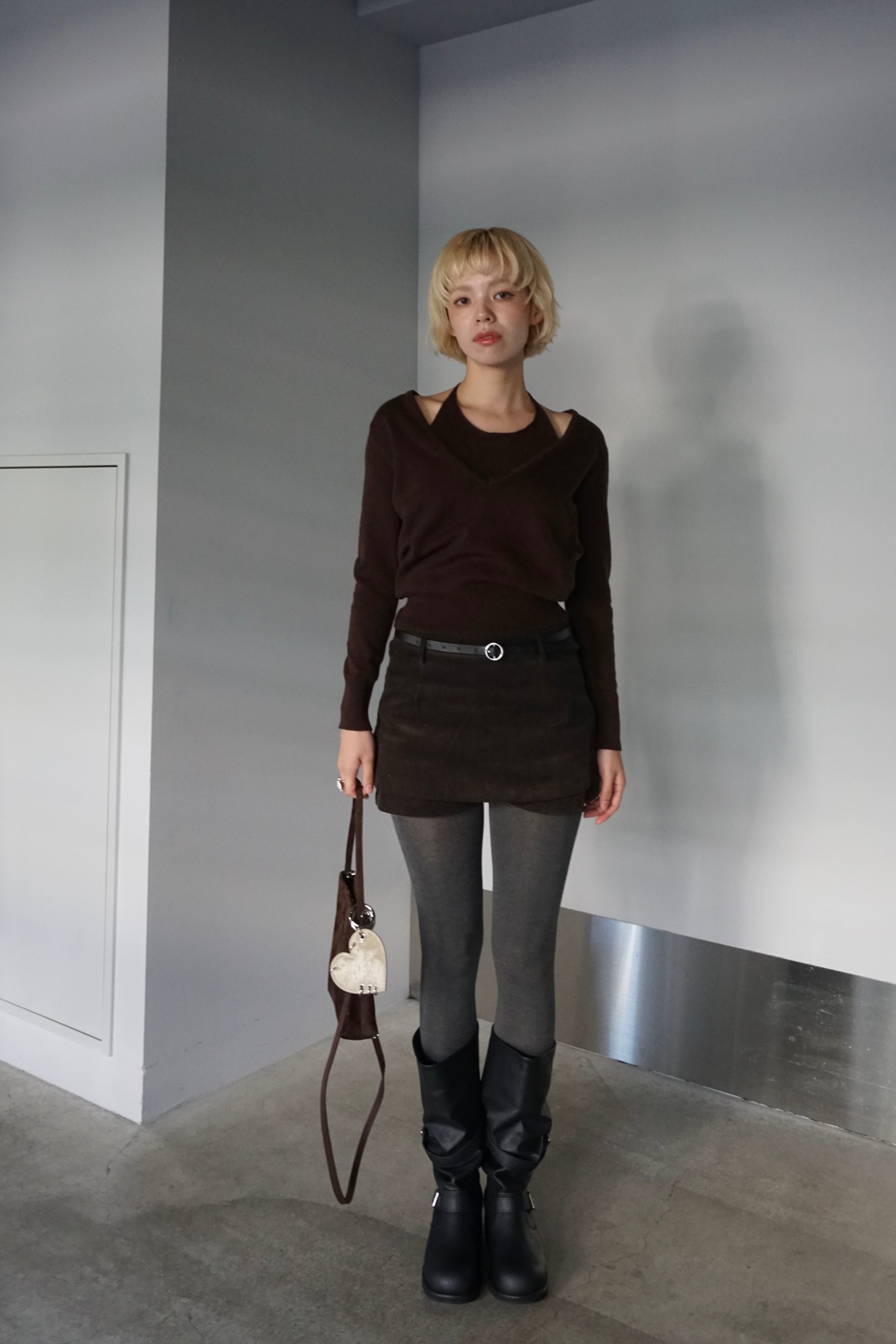 ミニスカートをレイヤードしたようなデザインが特徴のコーデュロイショートパンツ。