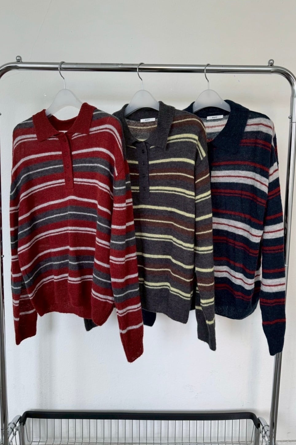 起毛感のある柔らかな素材で仕上げたボーダーポロニット。