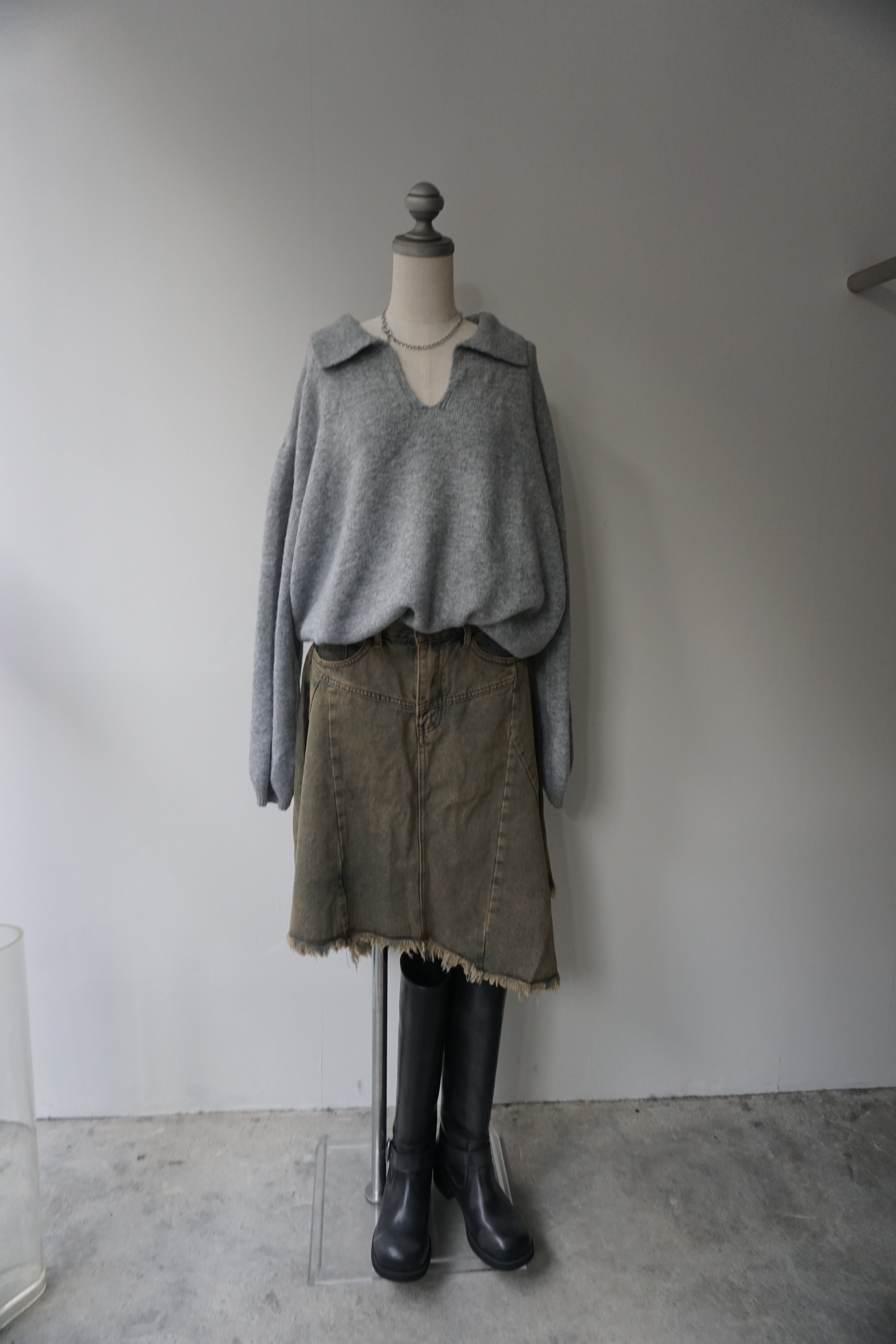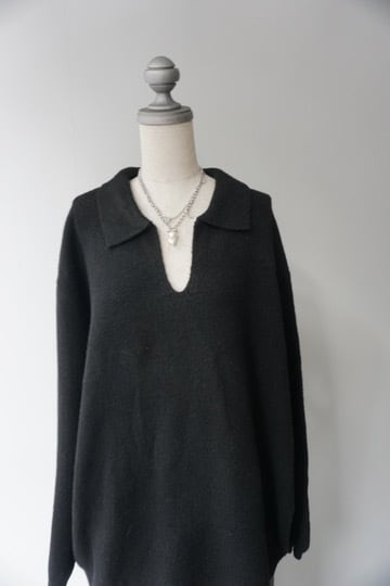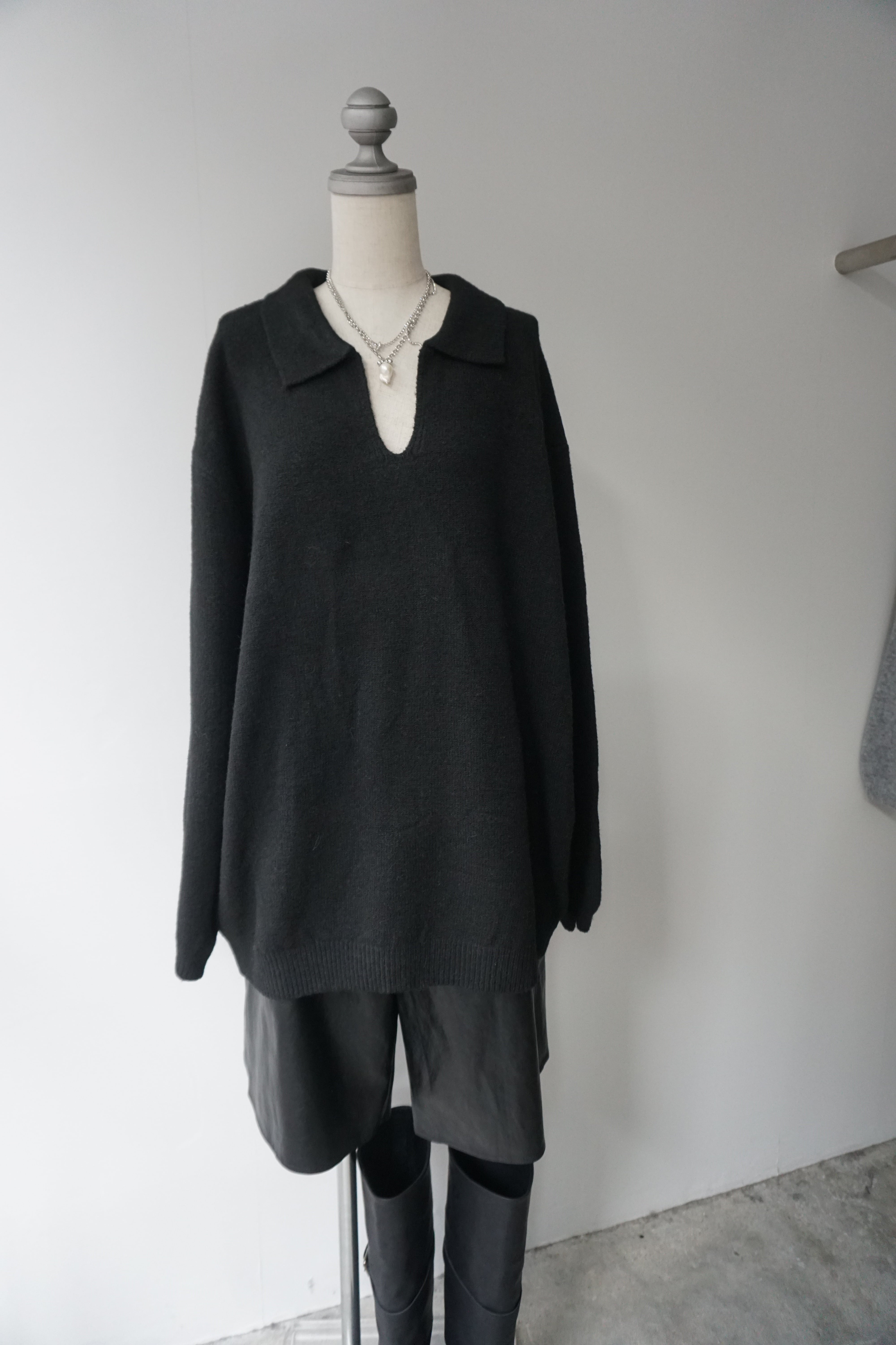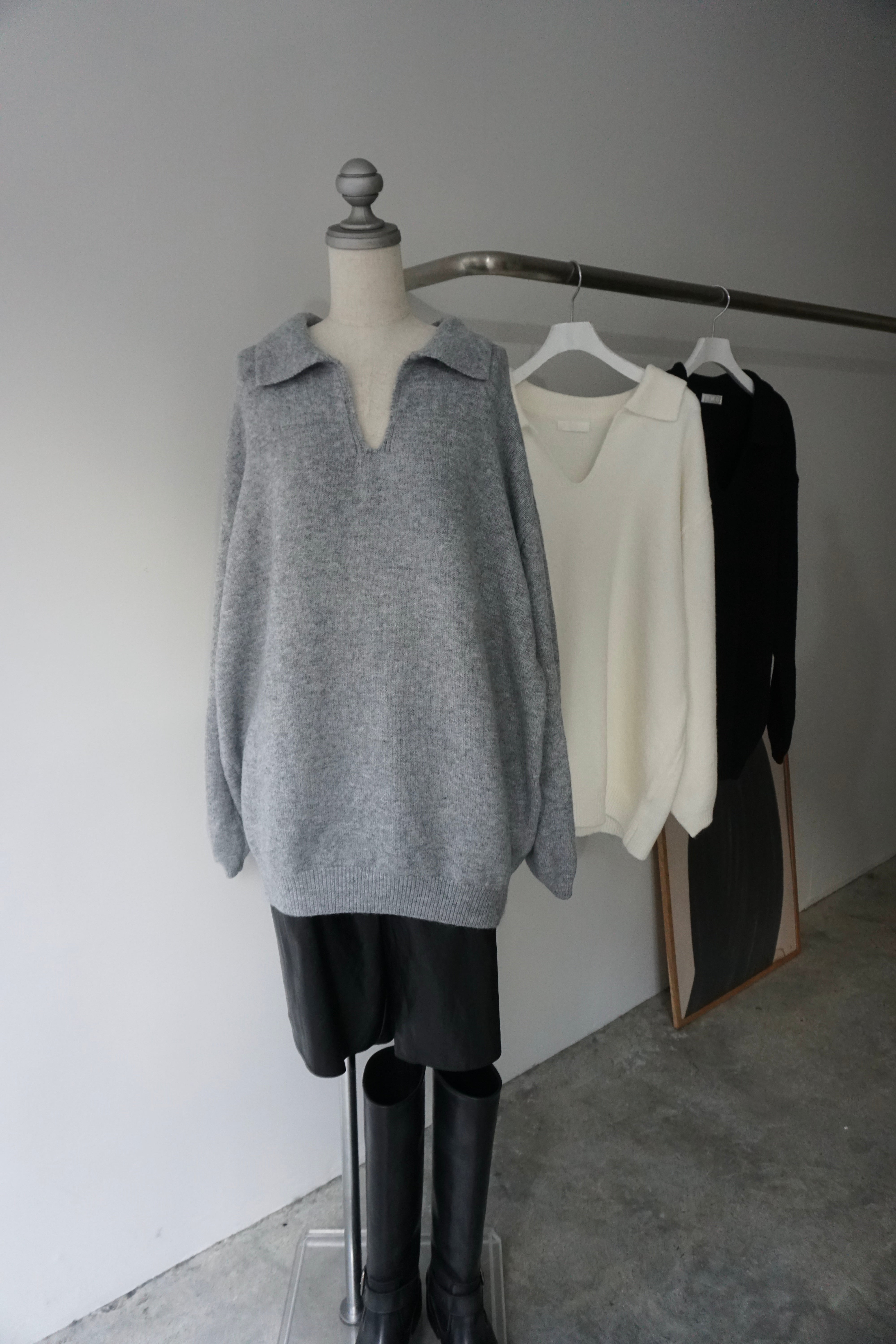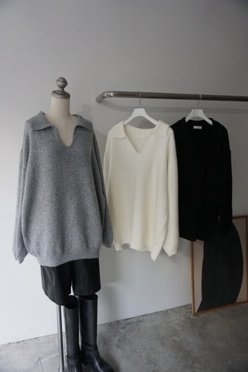 程よく肉感のあるニット素材を使用した、スキッパーカラーデザインのニットトップス。