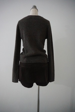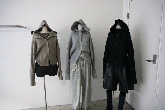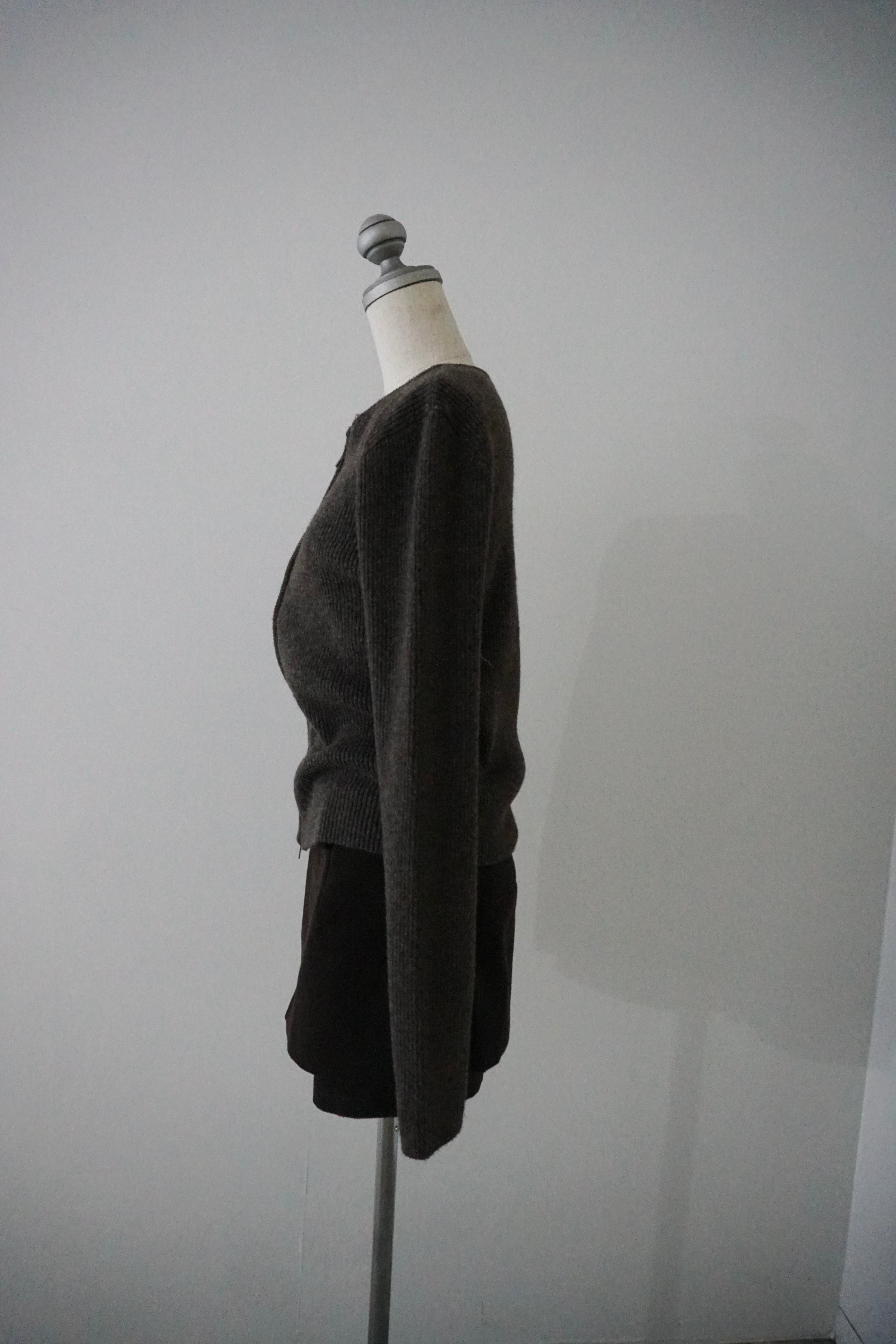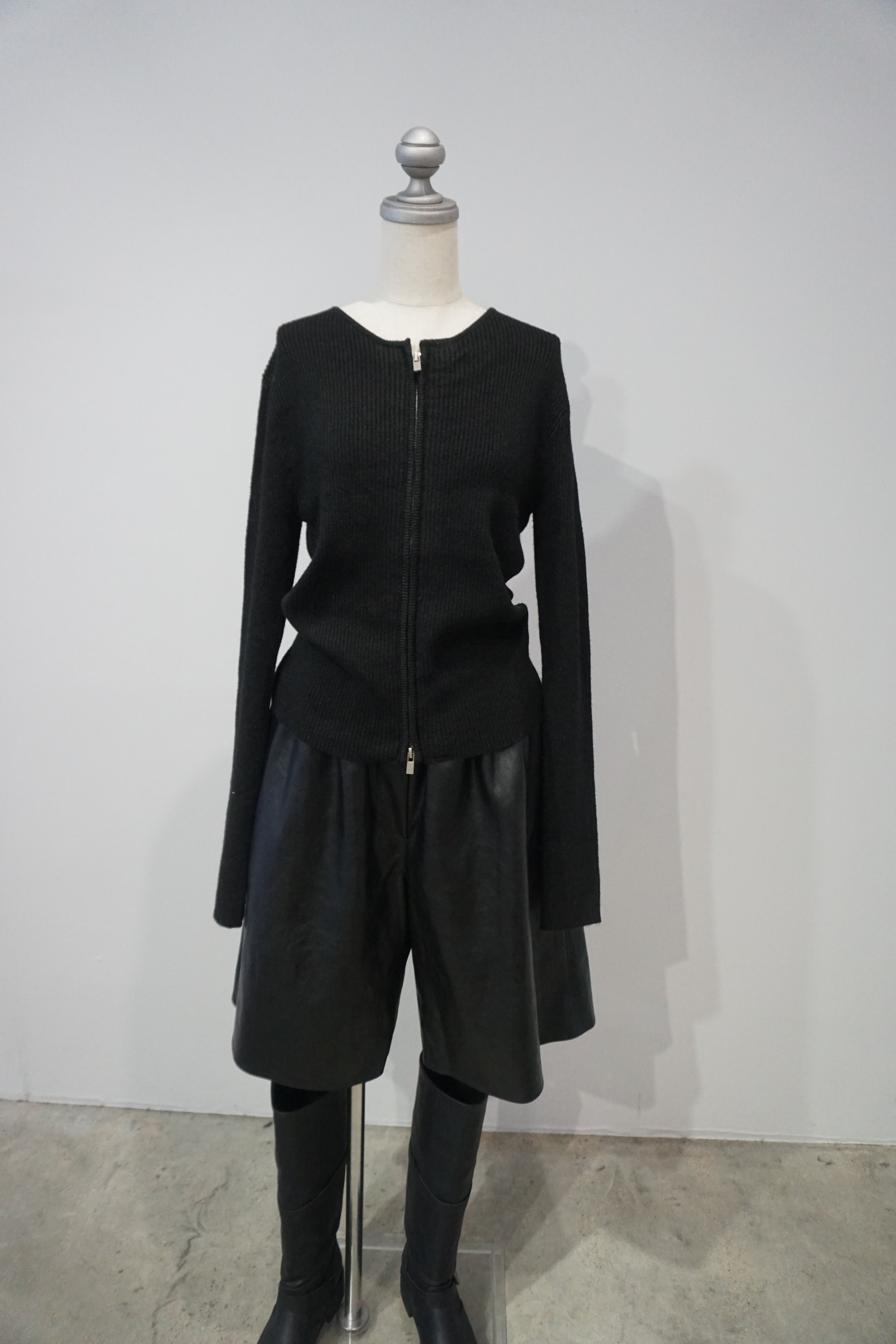 リブニット素材を使用した、ミニマルな印象のダブルジップニットカーディガン。