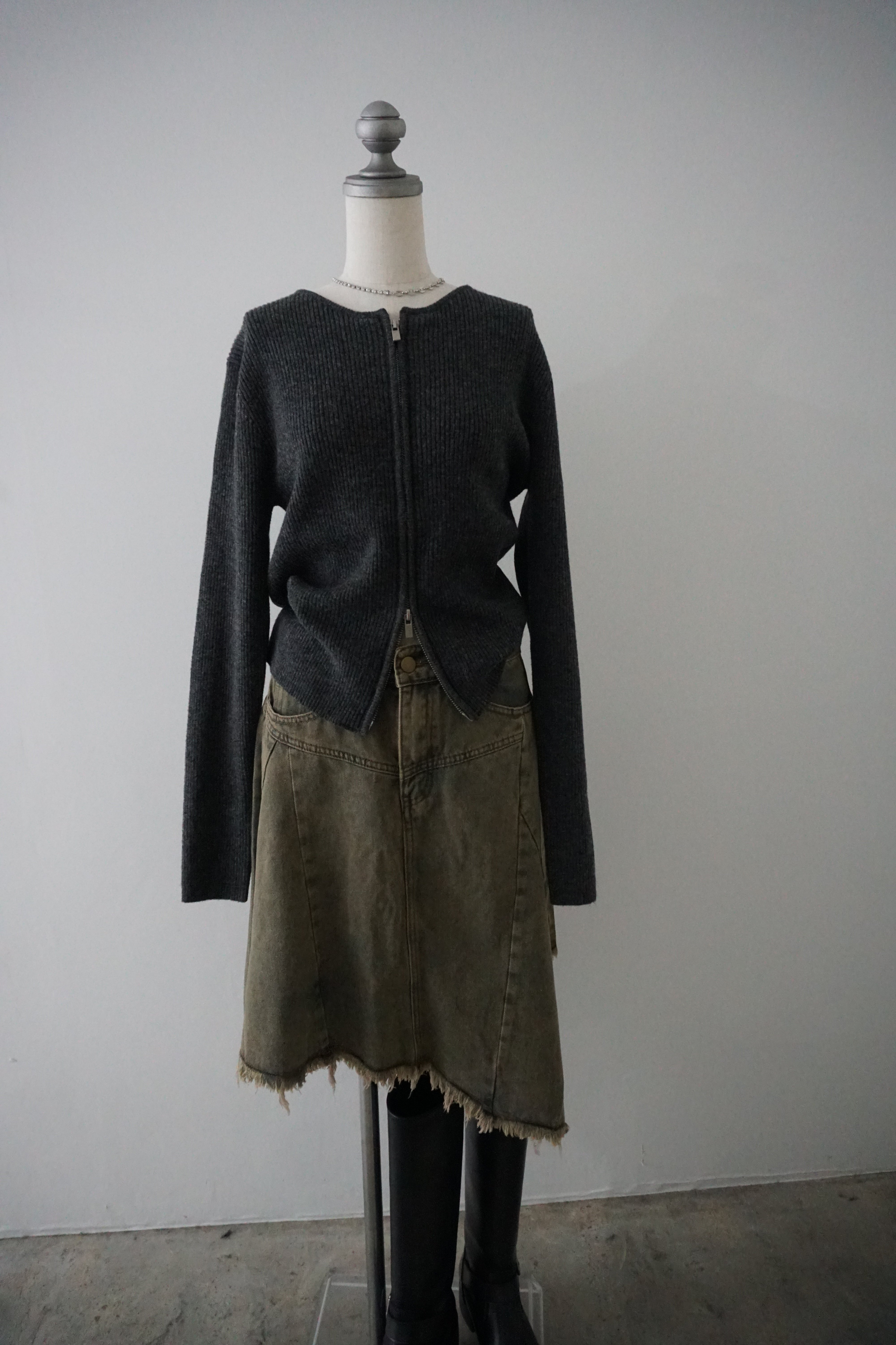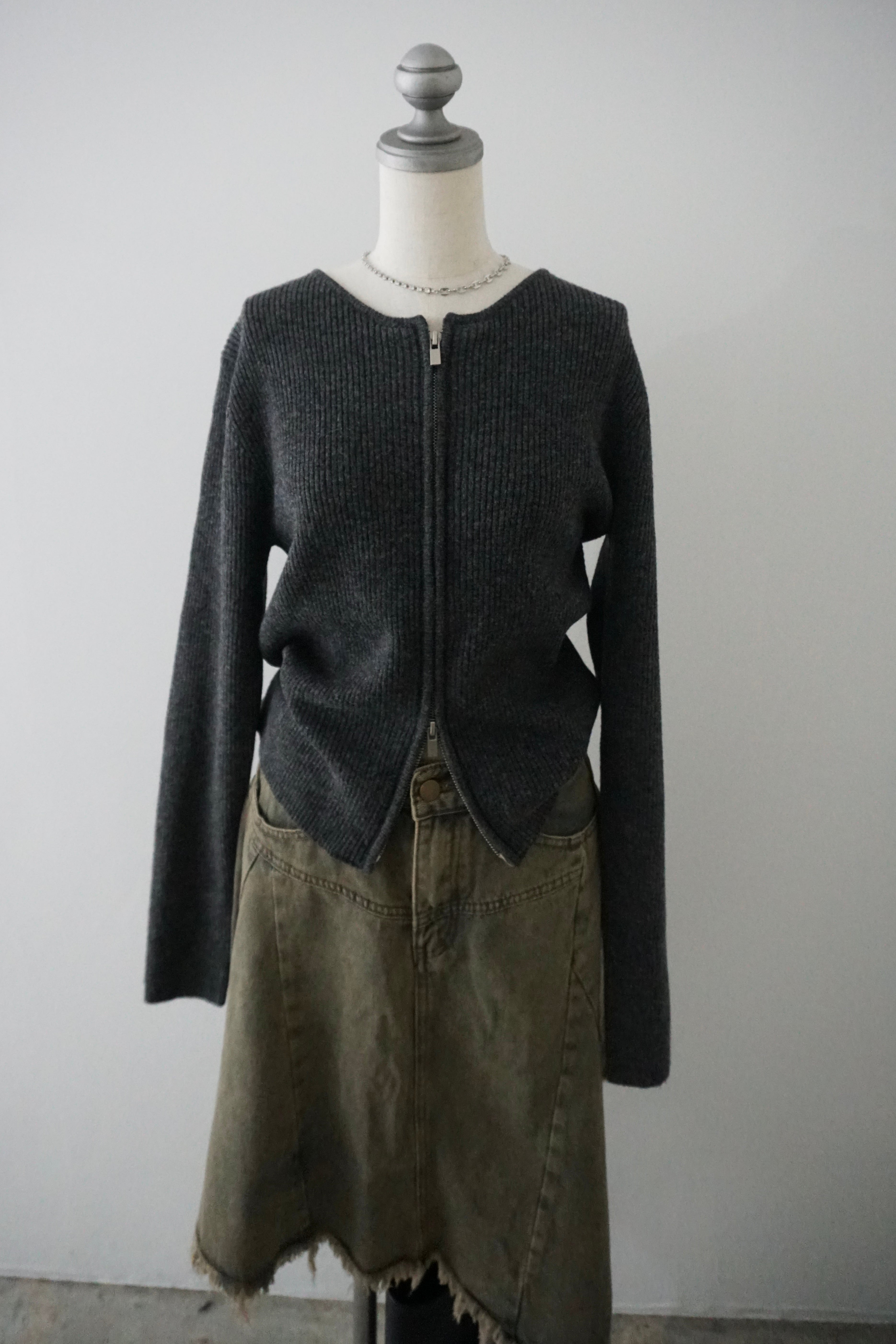 RIB DOUBLE ZIP KNIT CARDIGAN (GRAY) 2511-52-510