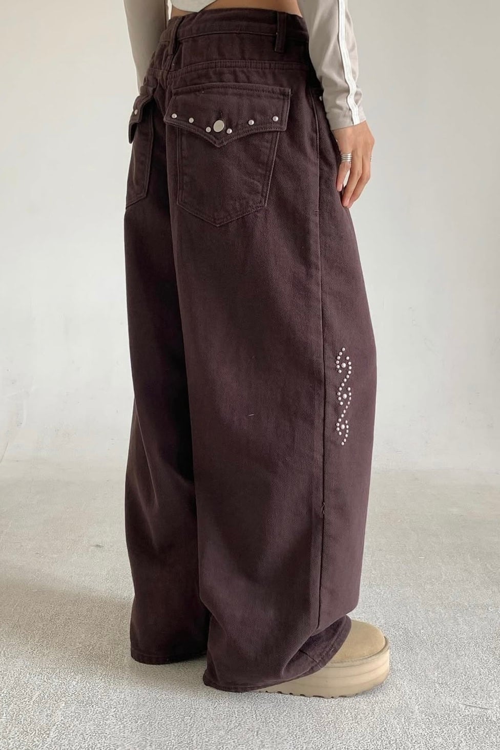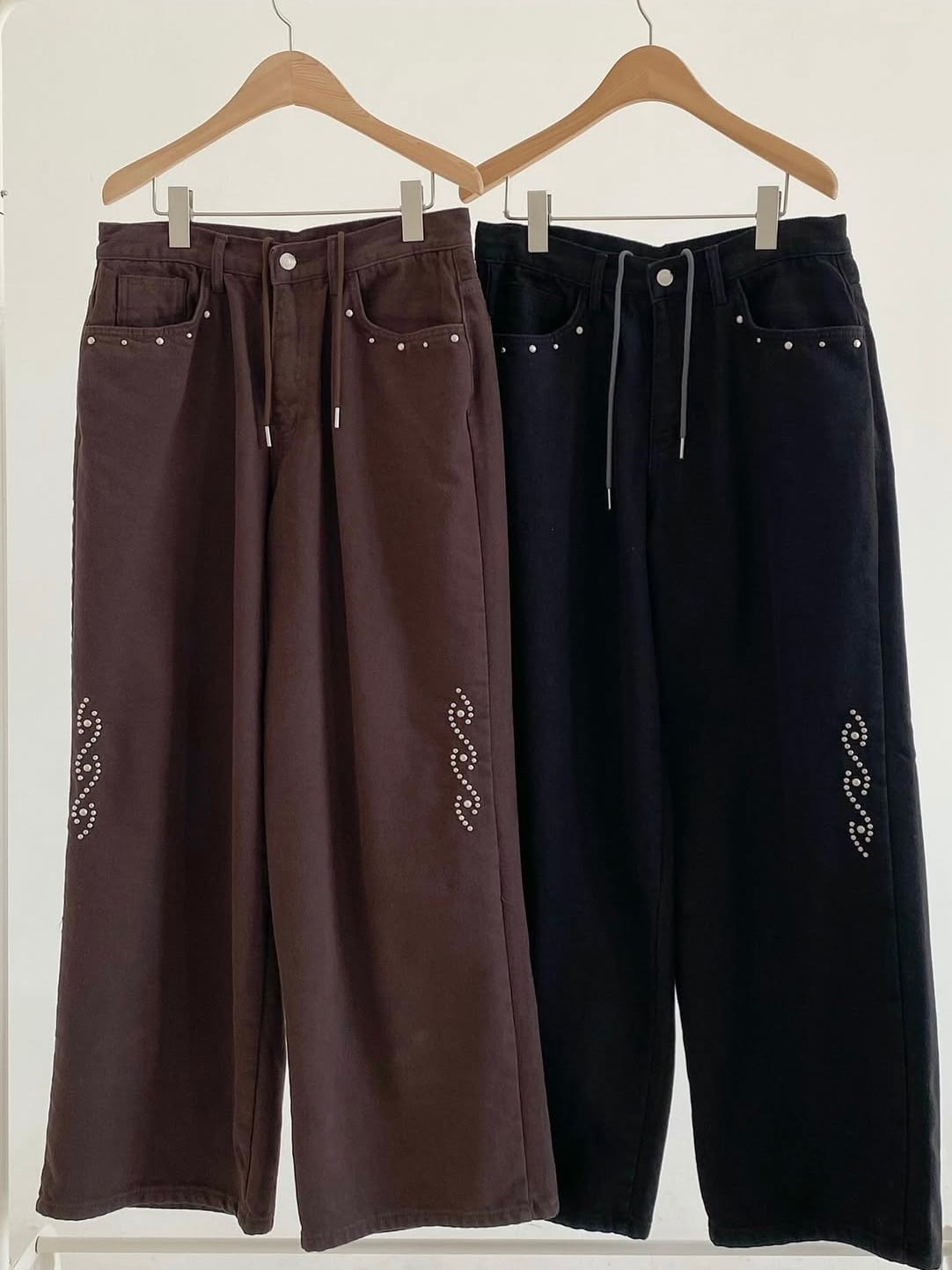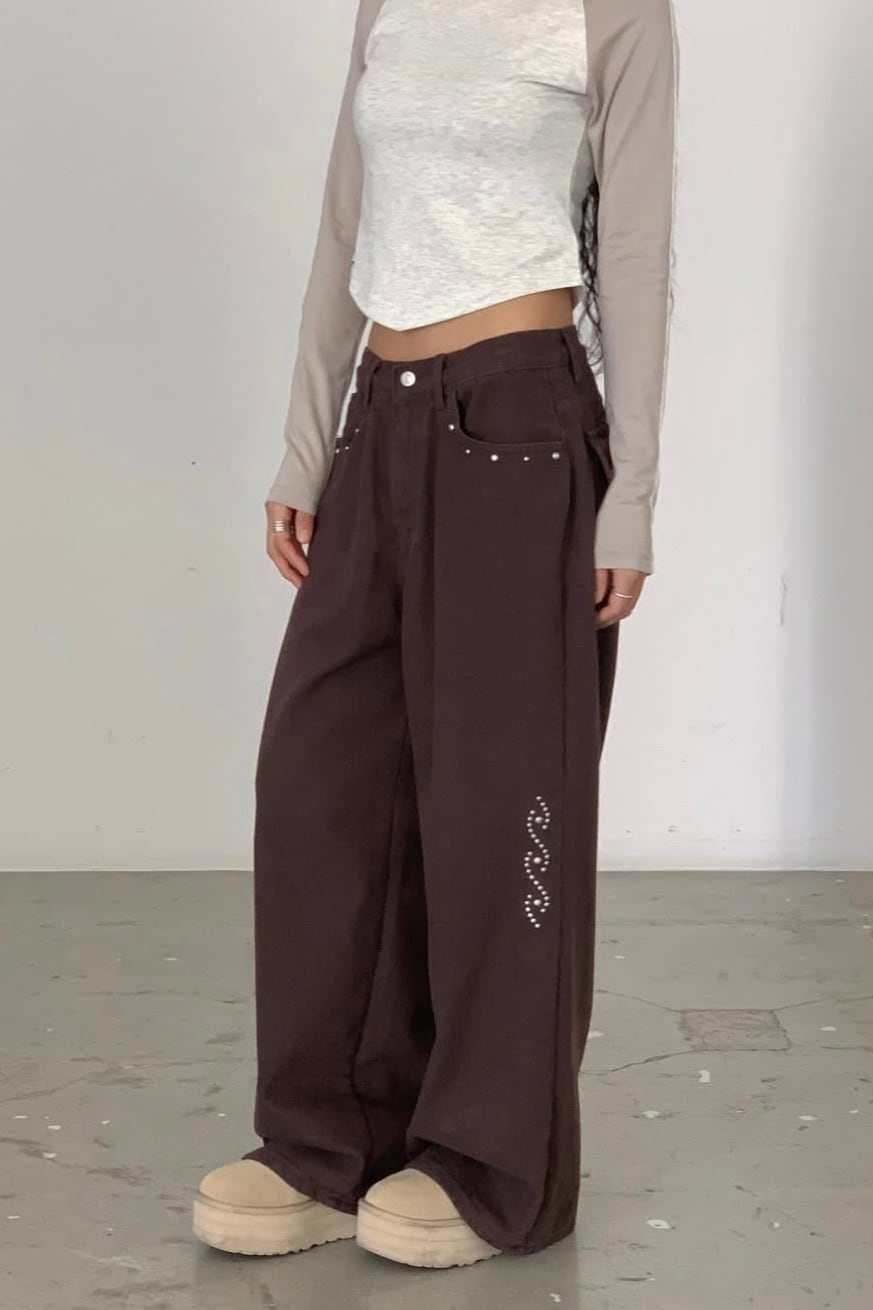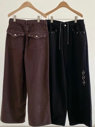 裏起毛のコットツイル素材を使用したスタッズパンツ