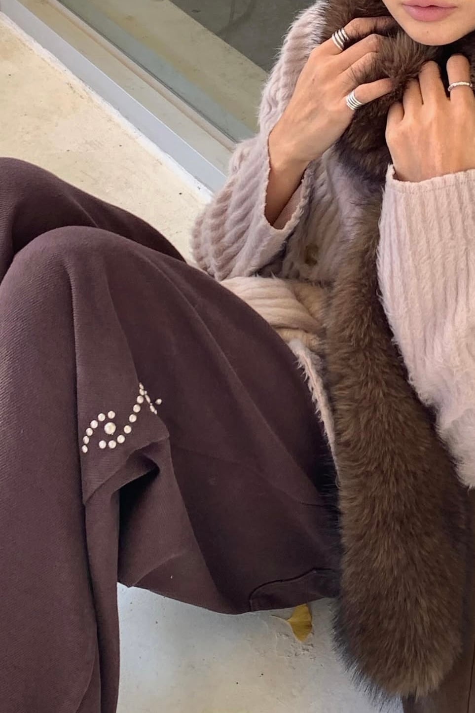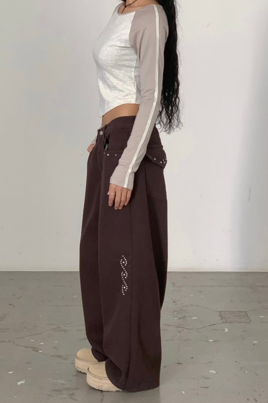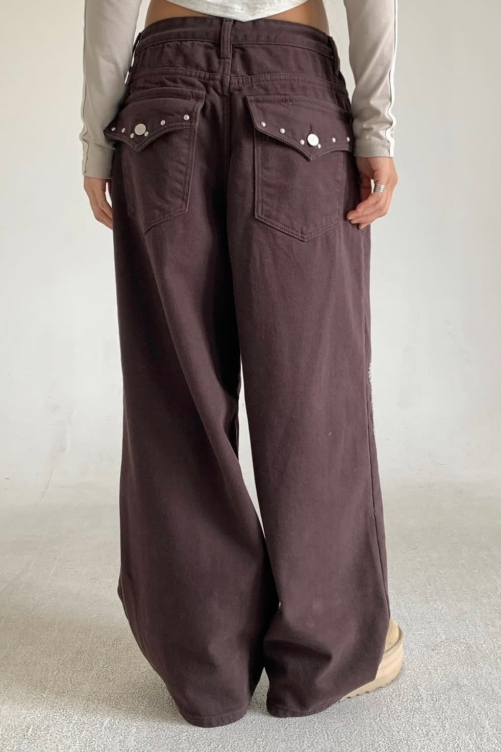 裏起毛のコットツイル素材を使用したスタッズパンツ