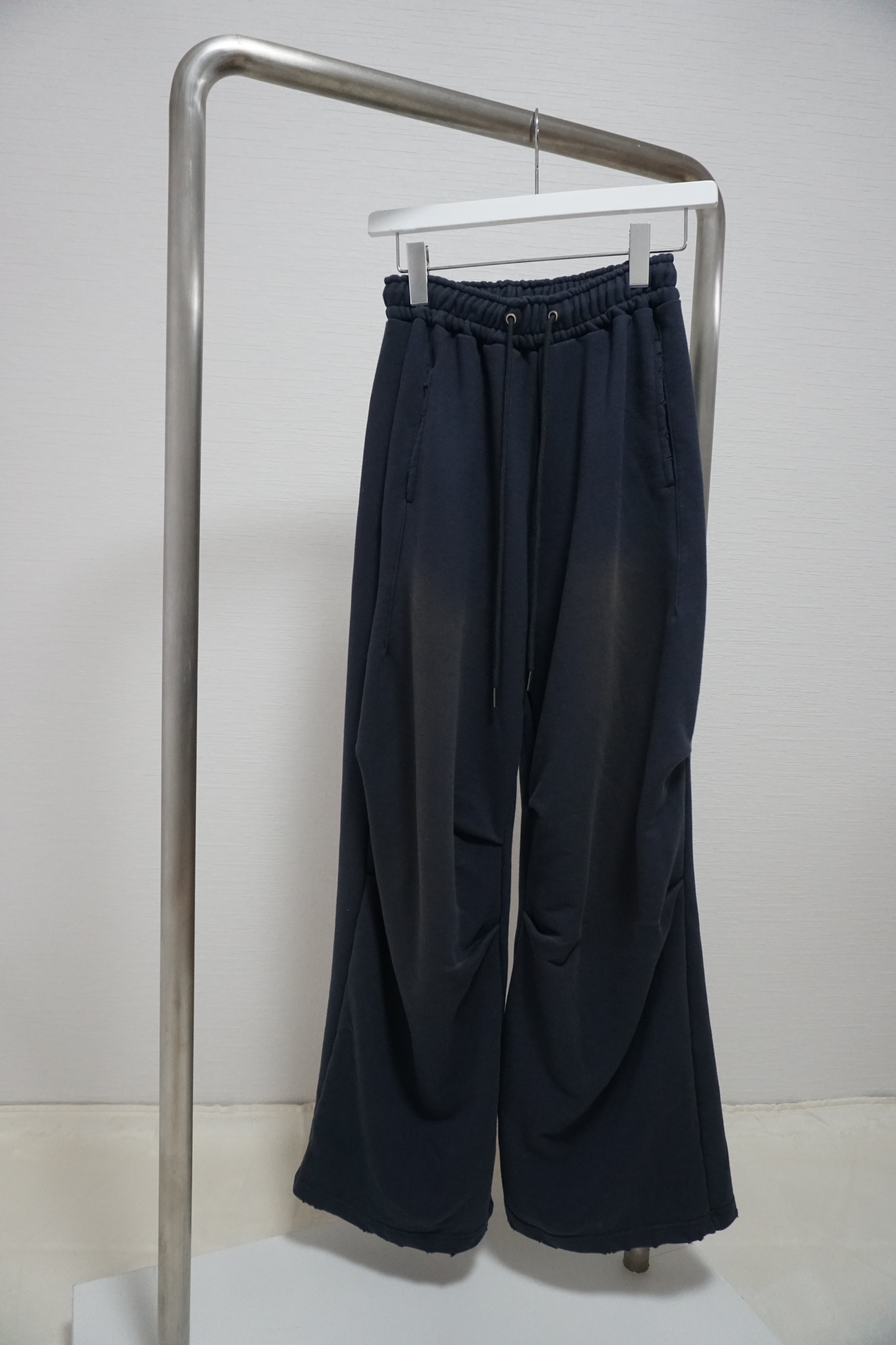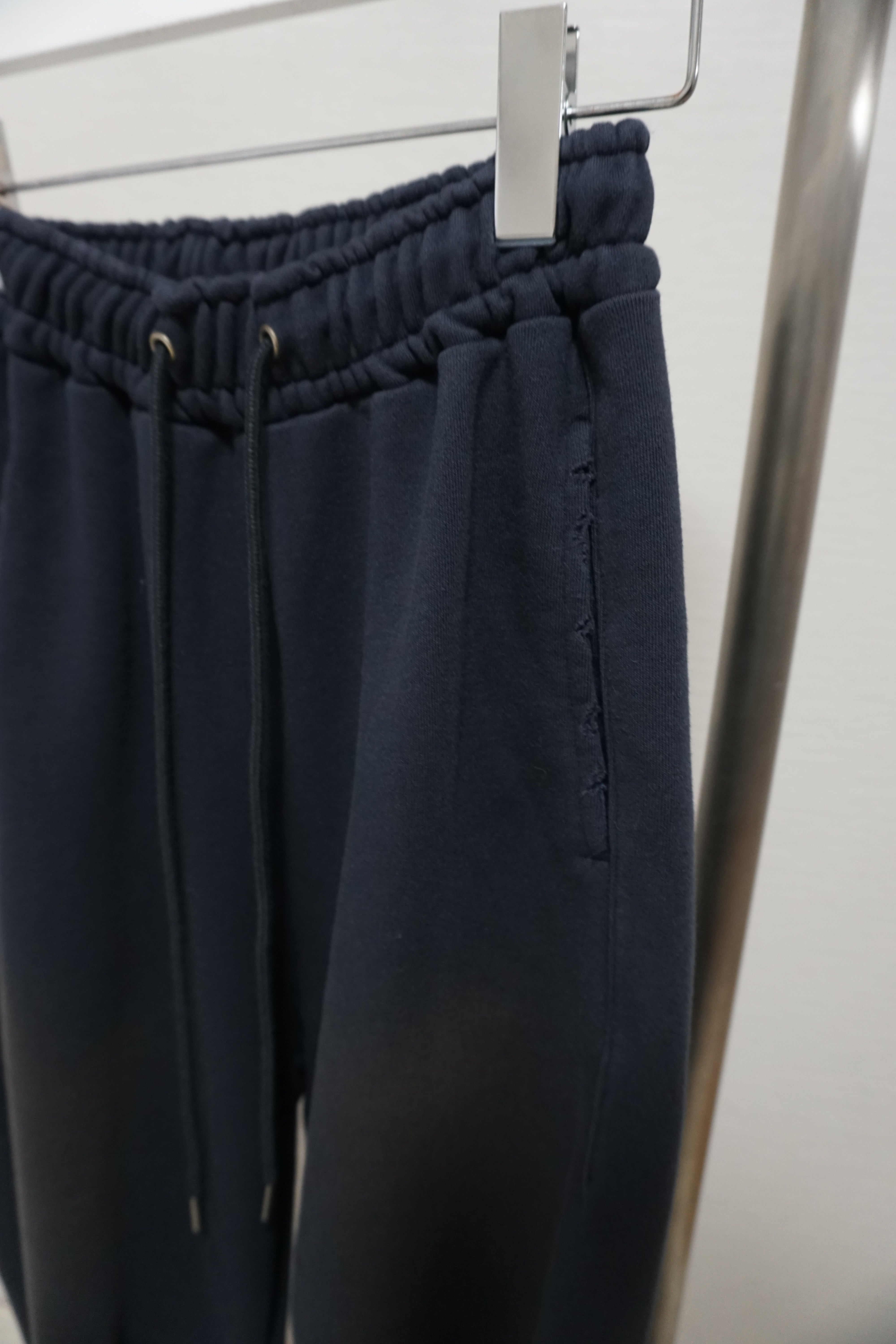 ソフトダメージウォッシュ加工を施したスウェットパンツ。