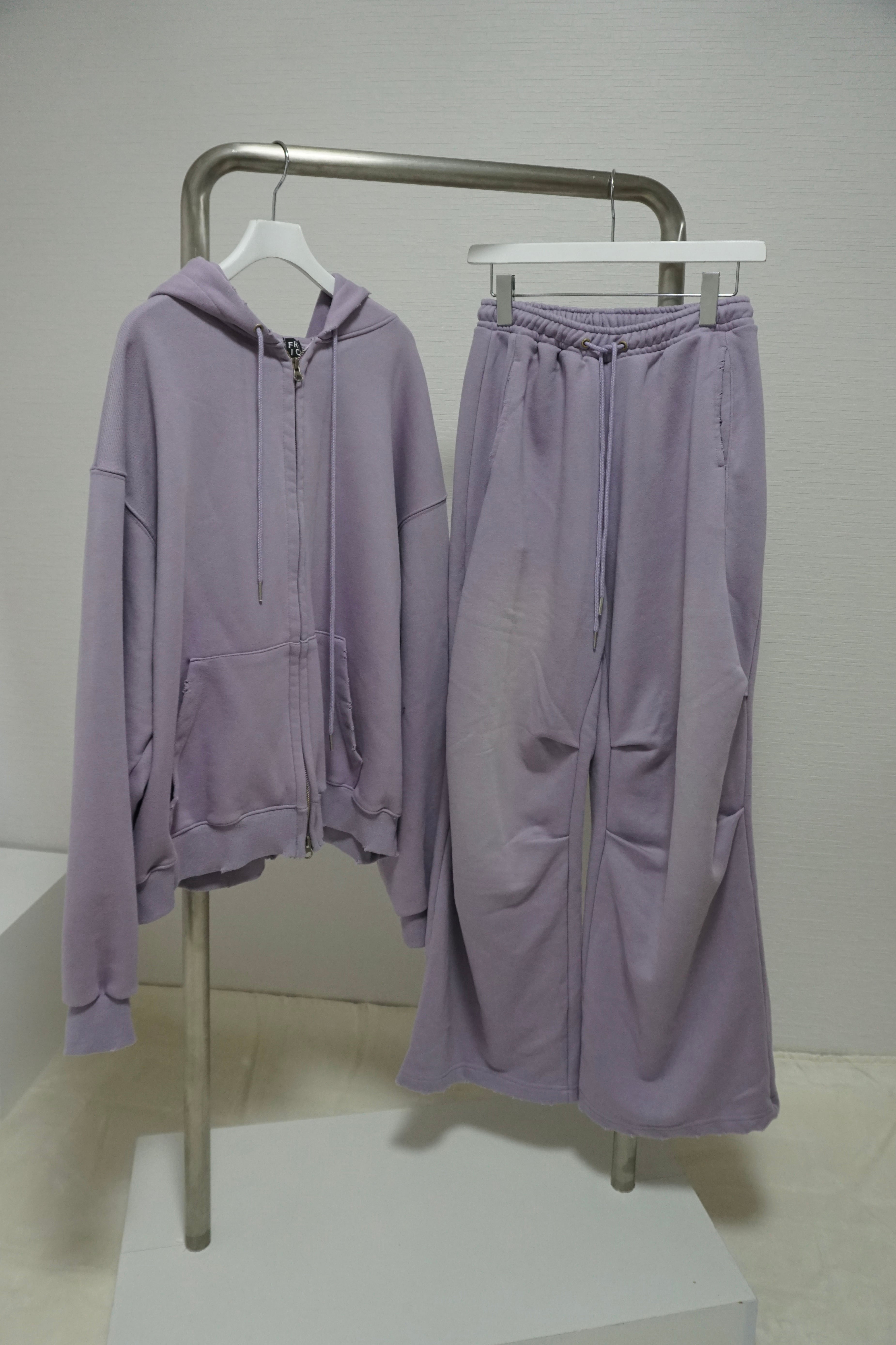 全体にソフトダメージウォッシュ加工を施したジップフーディー。