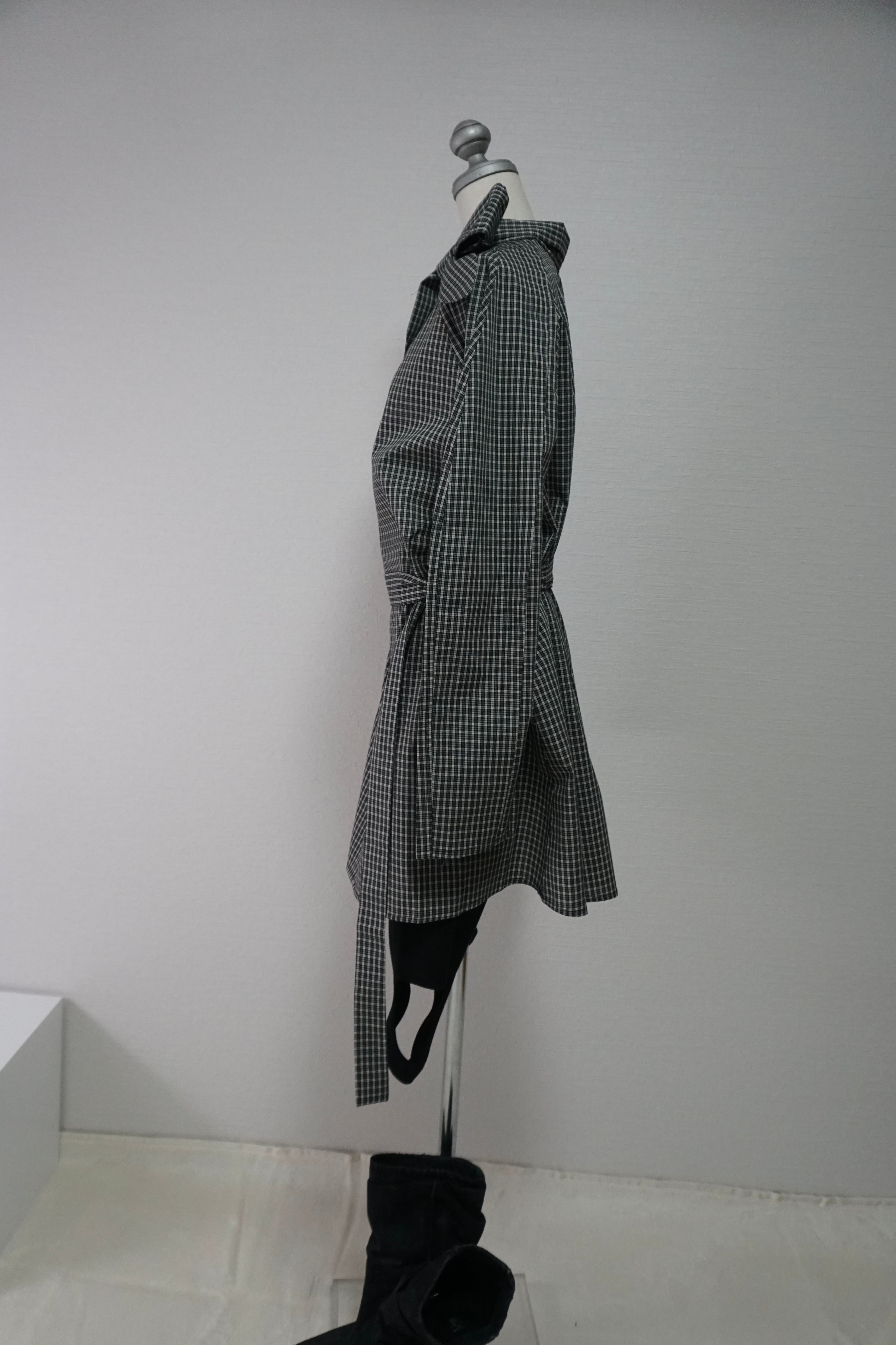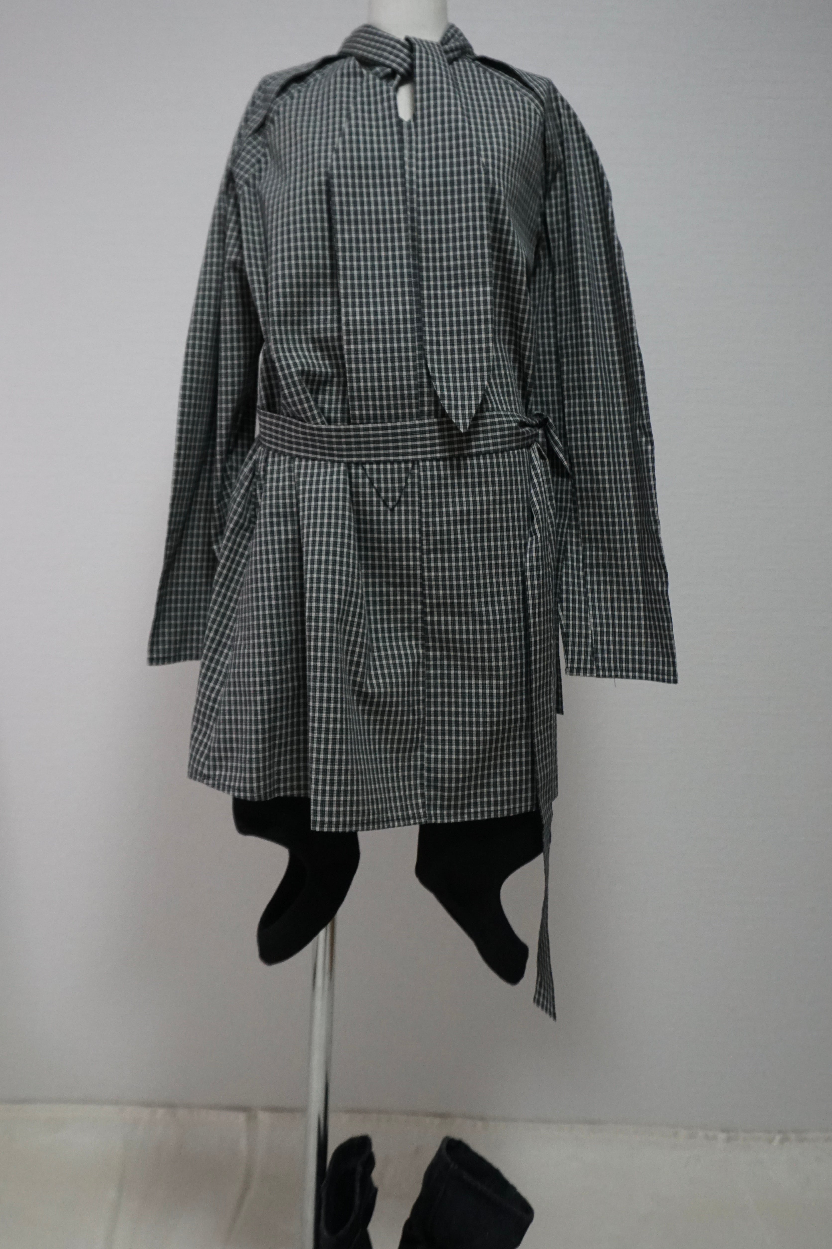ウエストは共布ベルト付きで、シルエット調整が可能です。
