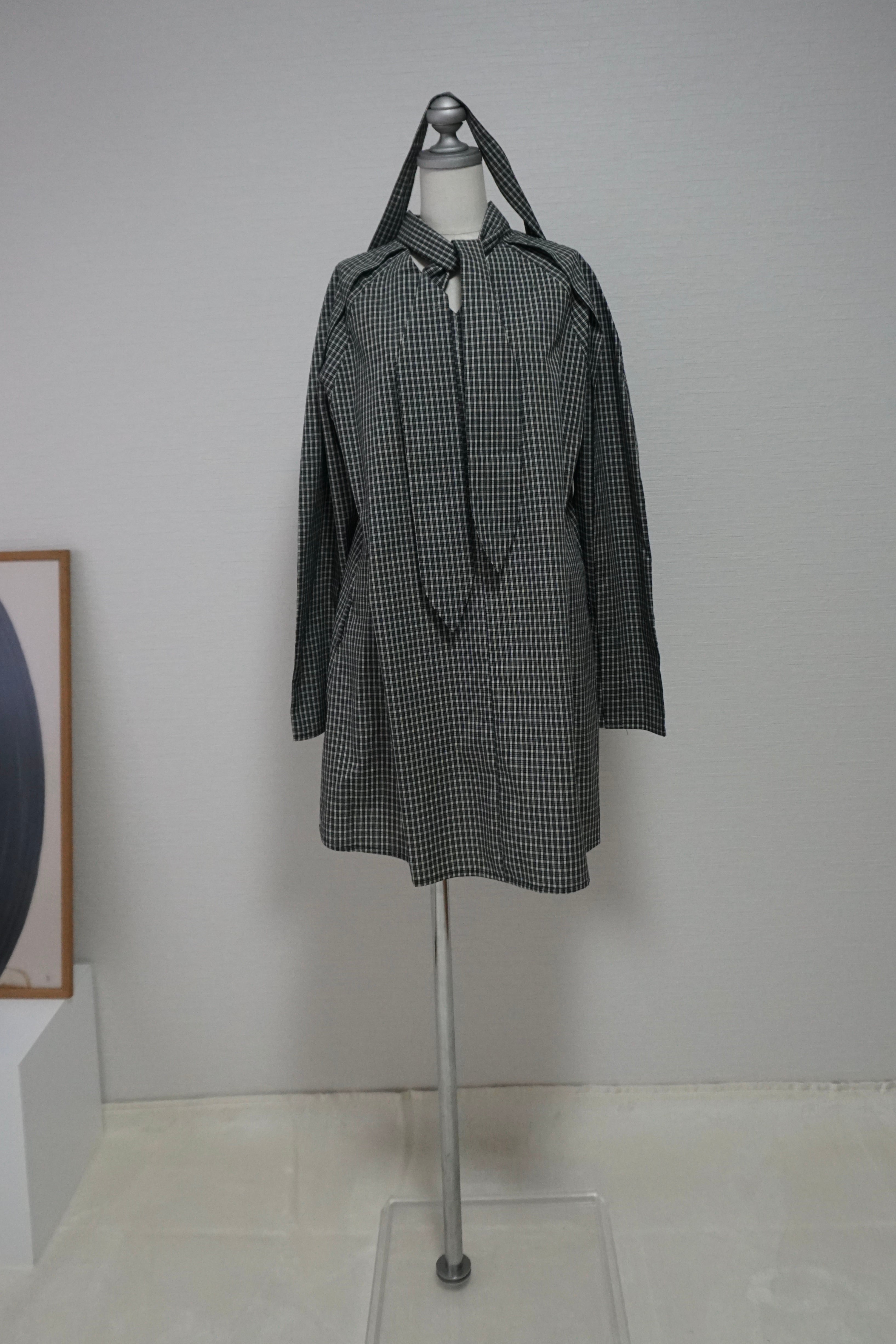 繊細なチェック柄に、長めのリボンディテールが印象的なミニドレス。