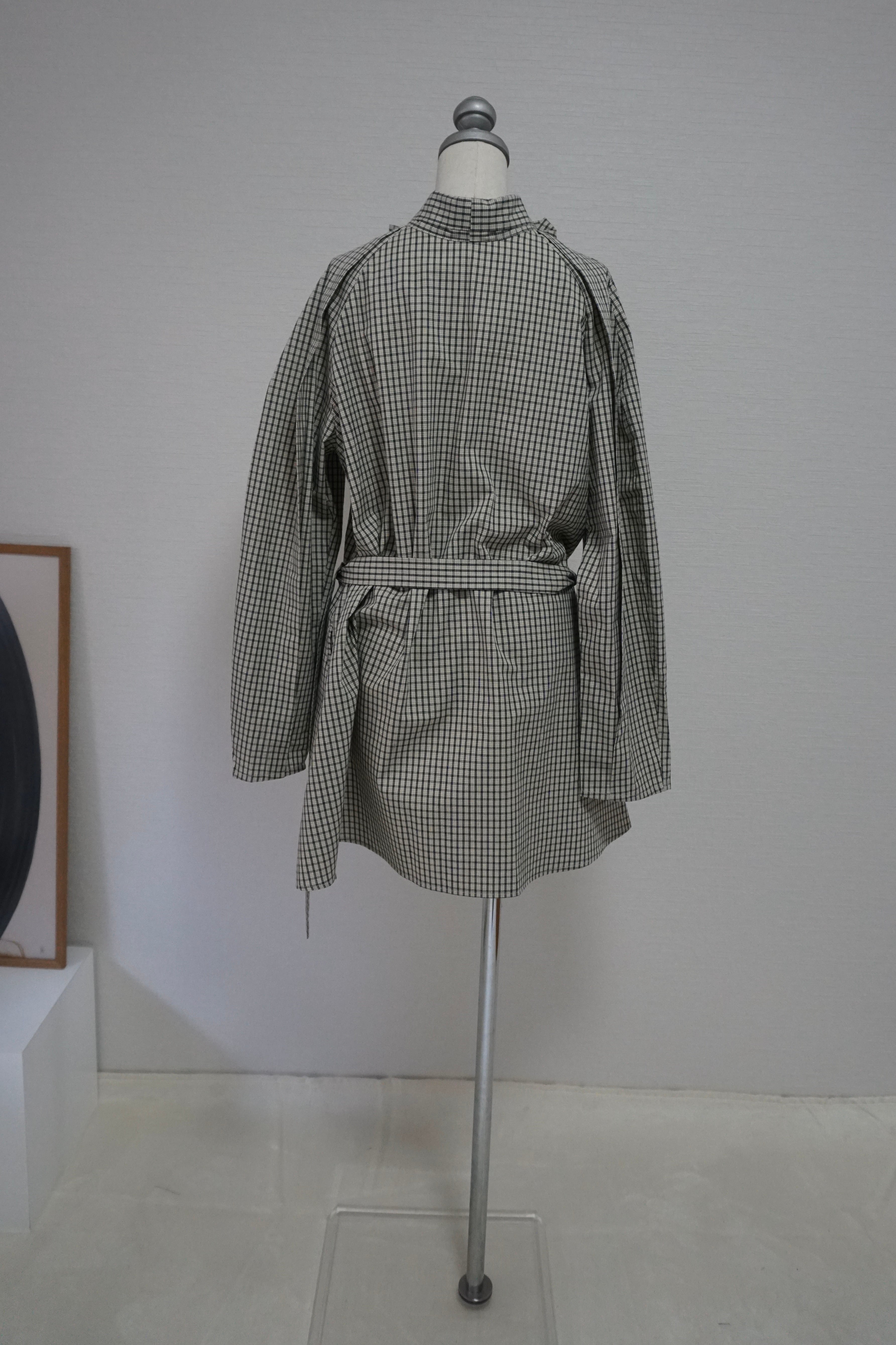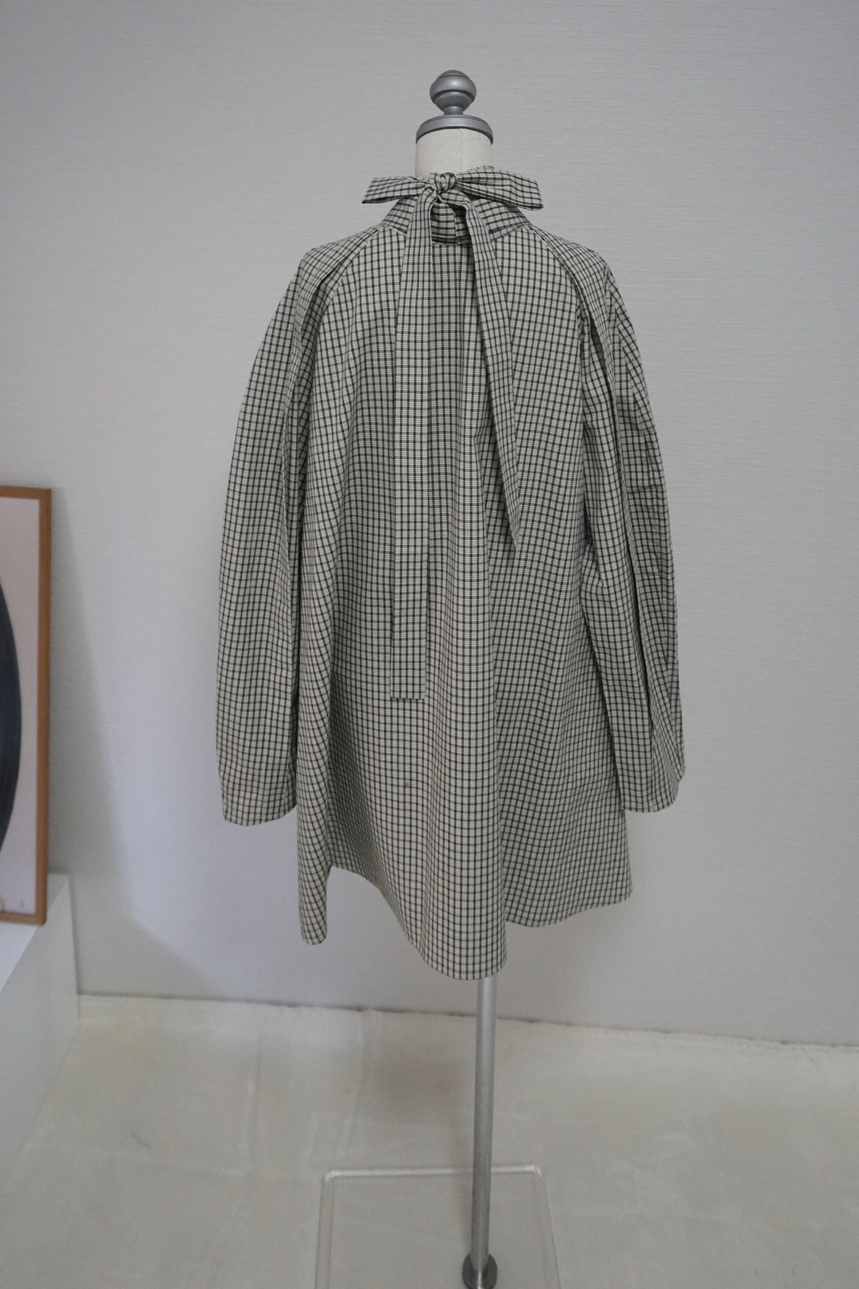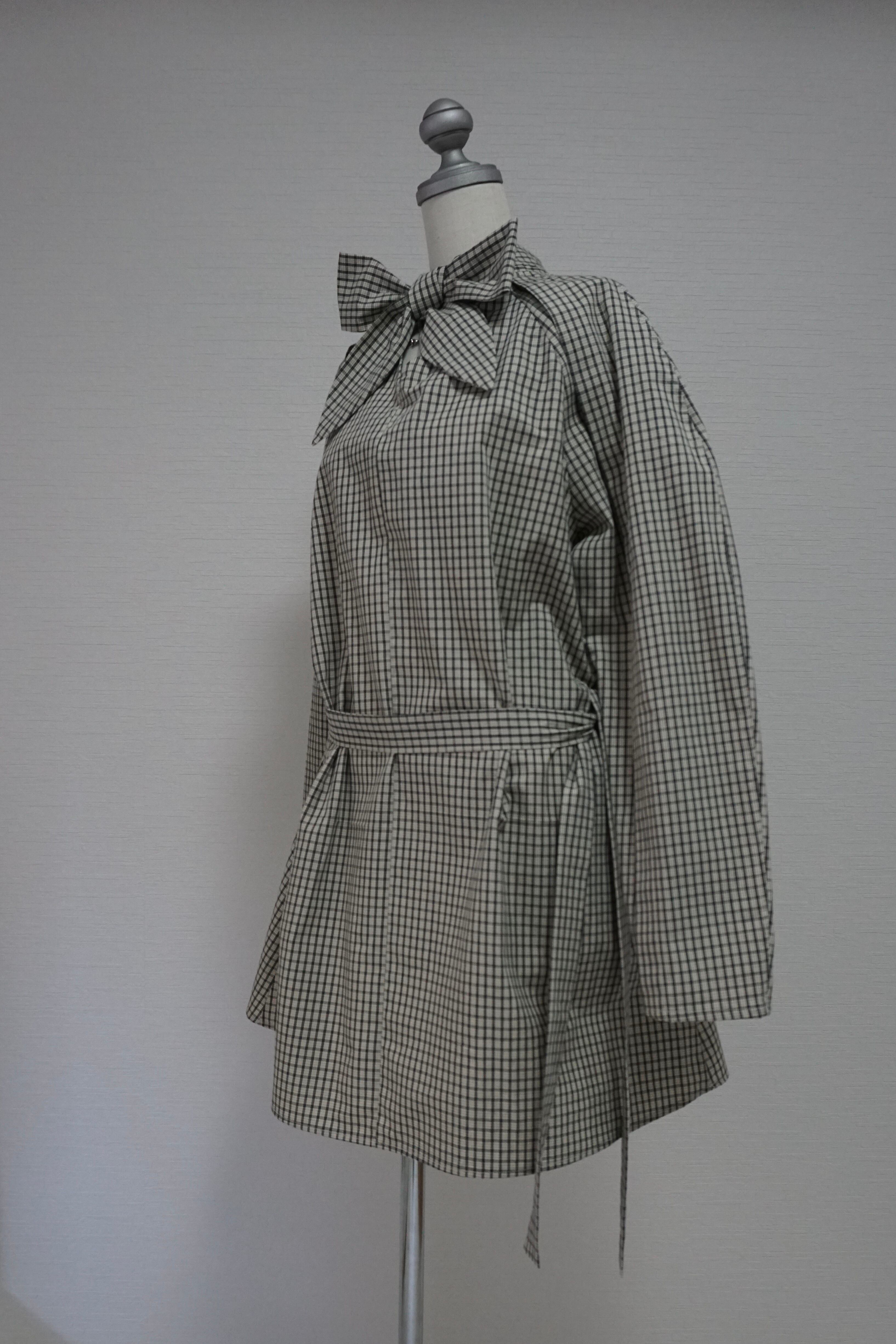 首元はボウタイデザインで、前で結んでも、後ろで結んでも着用可能。