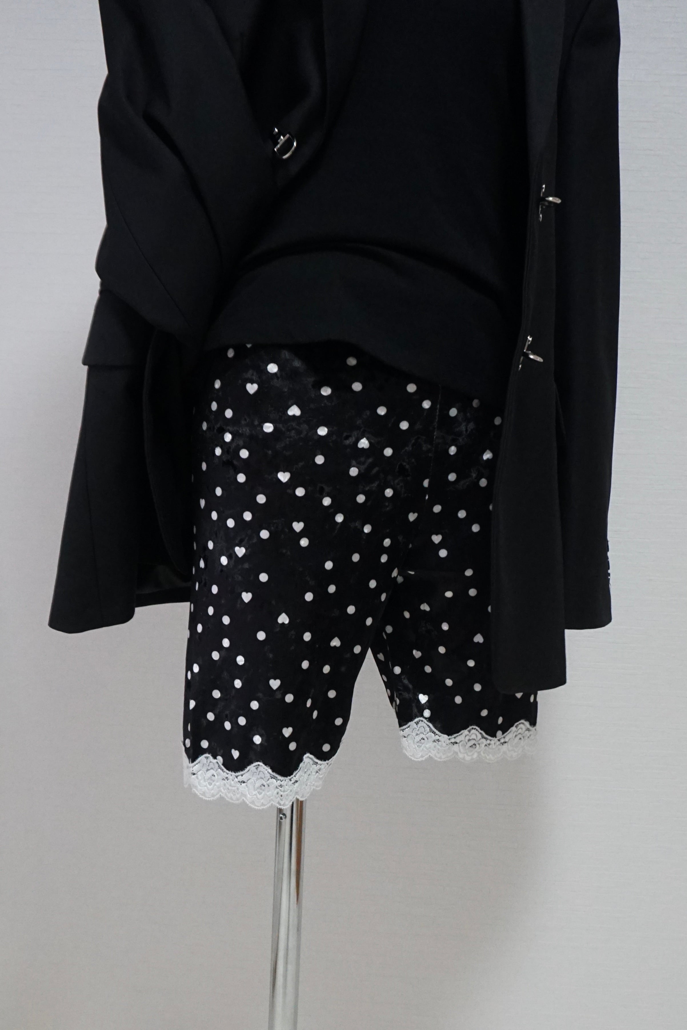 ベロア素材にハート×ドット柄を散りばめたレギンス。