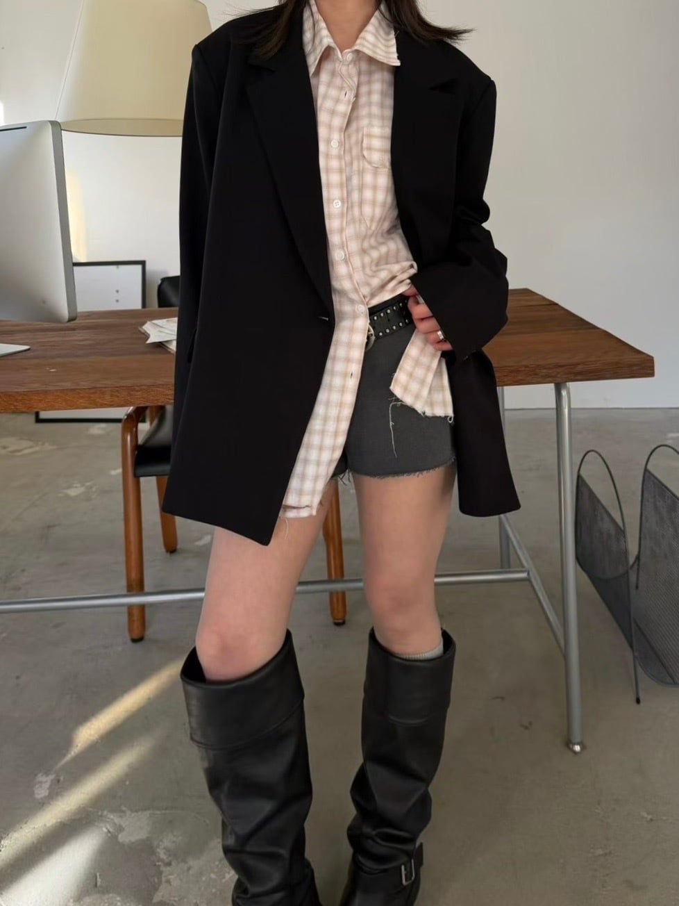 裾や全体にさりげないソフトダメージ加工を施し、ラフすぎない抜け感のある表情に仕上げました。