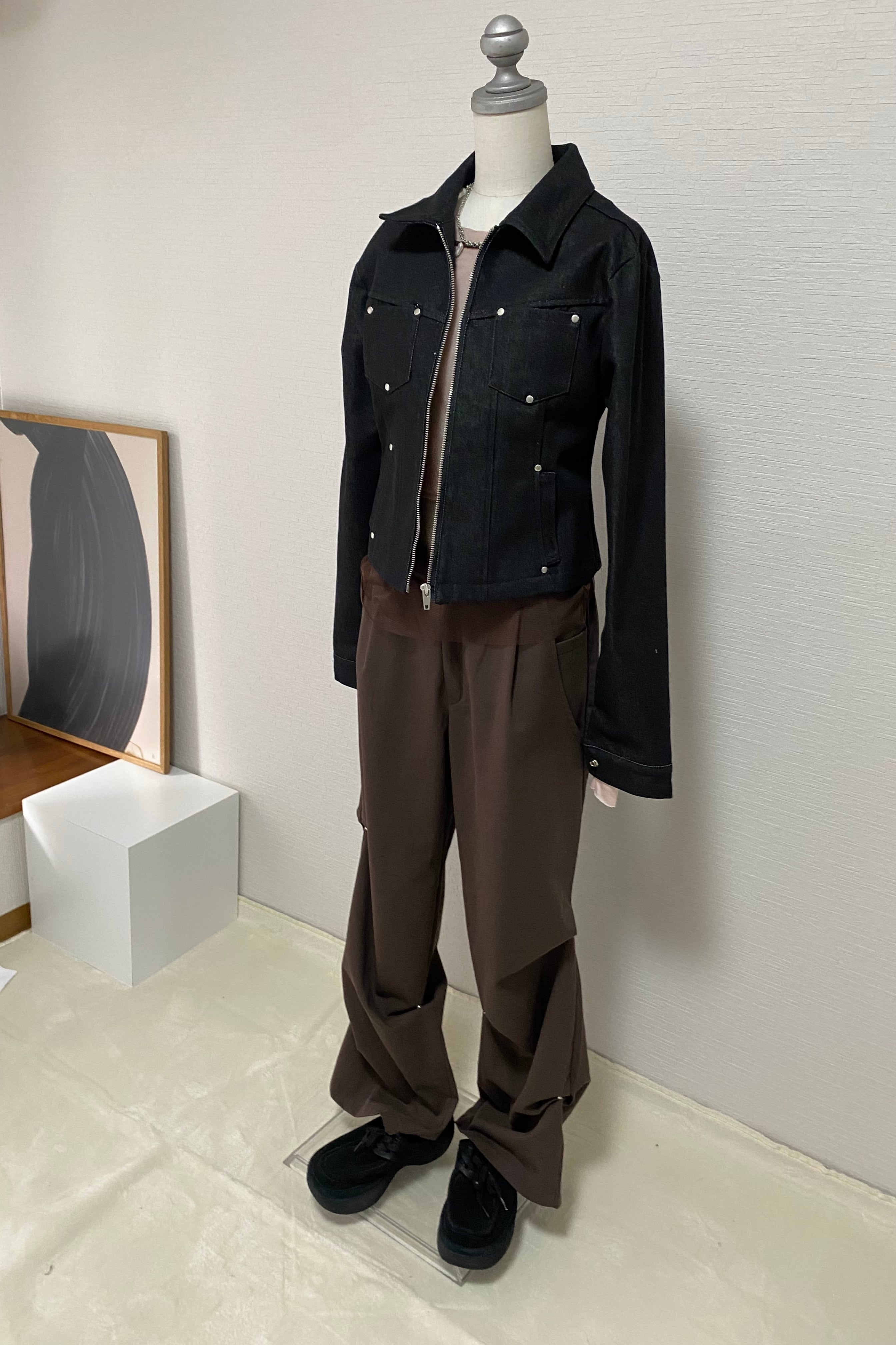 ショート丈のバランスで、ワイドパンツやロングスカートとも相性の良いデザイン。