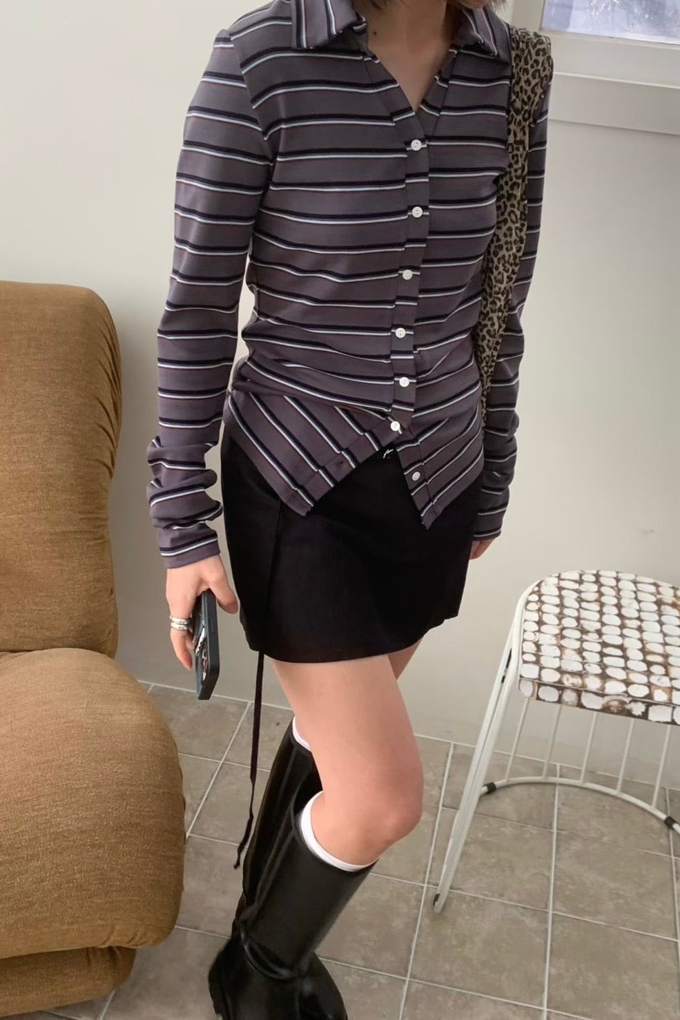 フロントはボタン仕様で、トップスとして一枚で着るのはもちろん、軽い羽織としても着用できます。