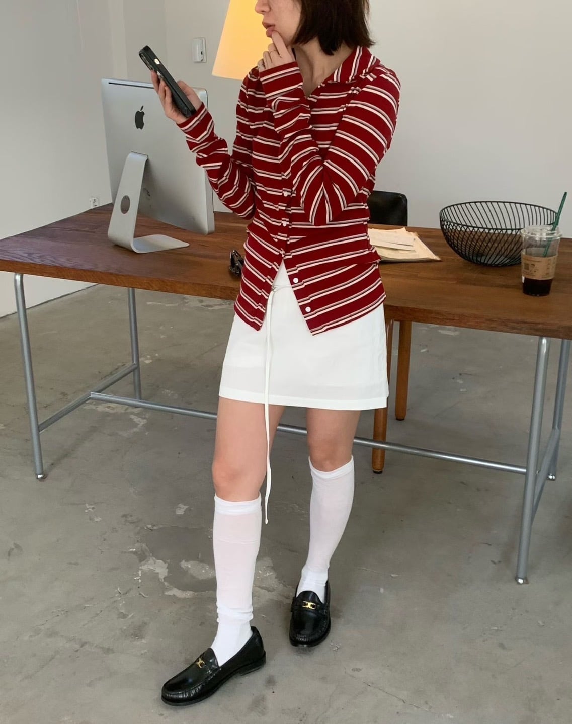 程よくフィットするシルエットで、ミニスカートやデニムなど様々なボトムとバランスよく合わせられるアイテム。
