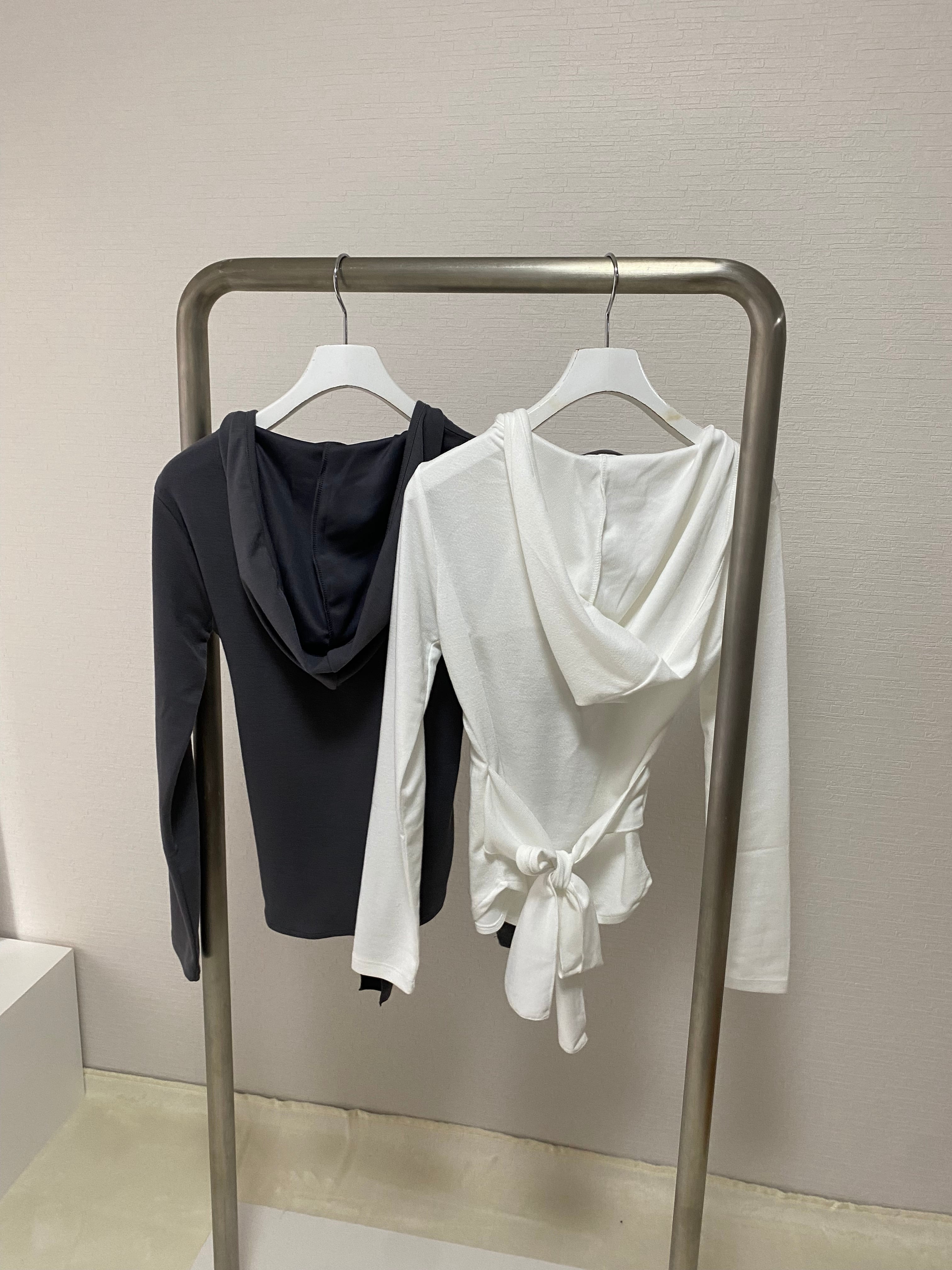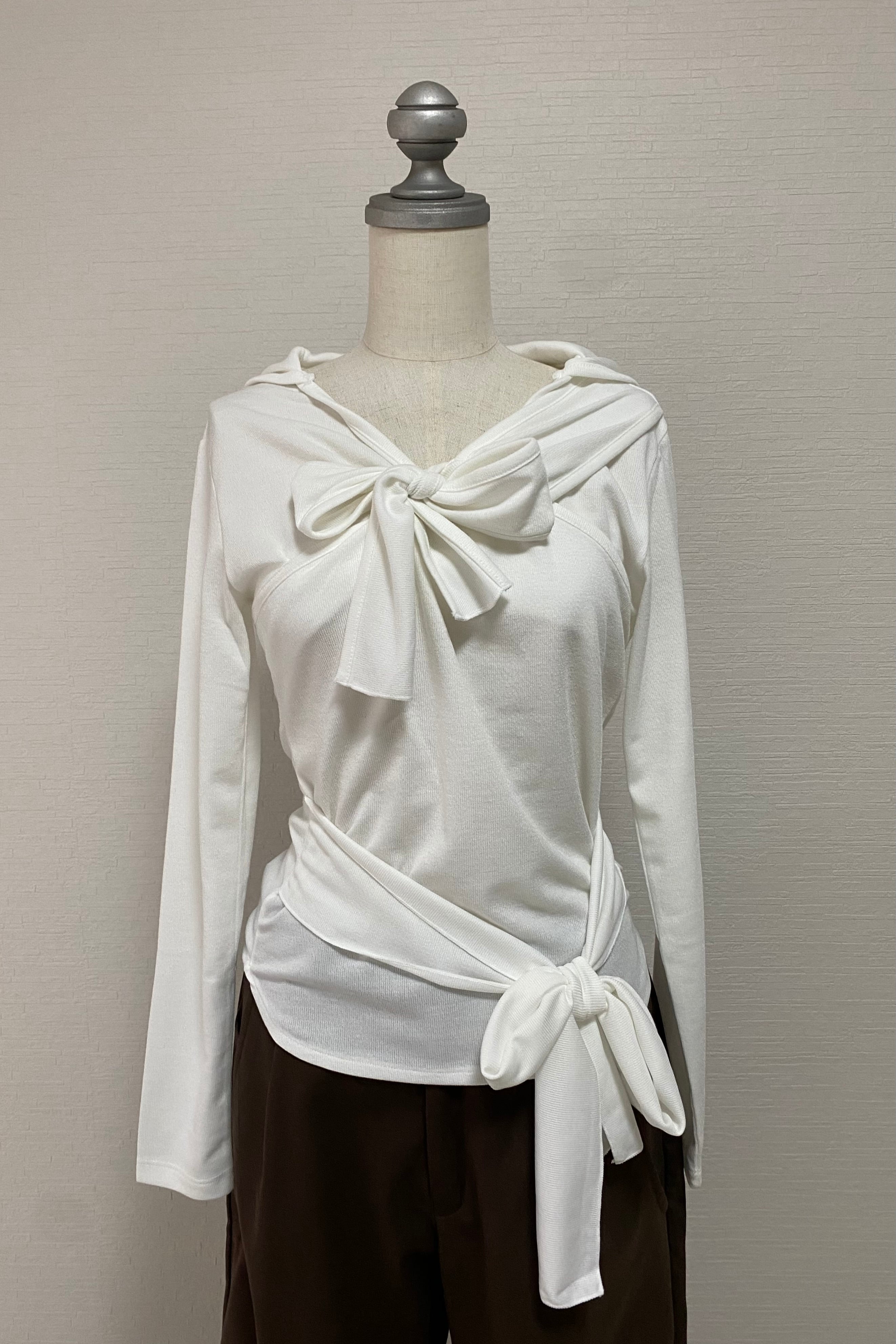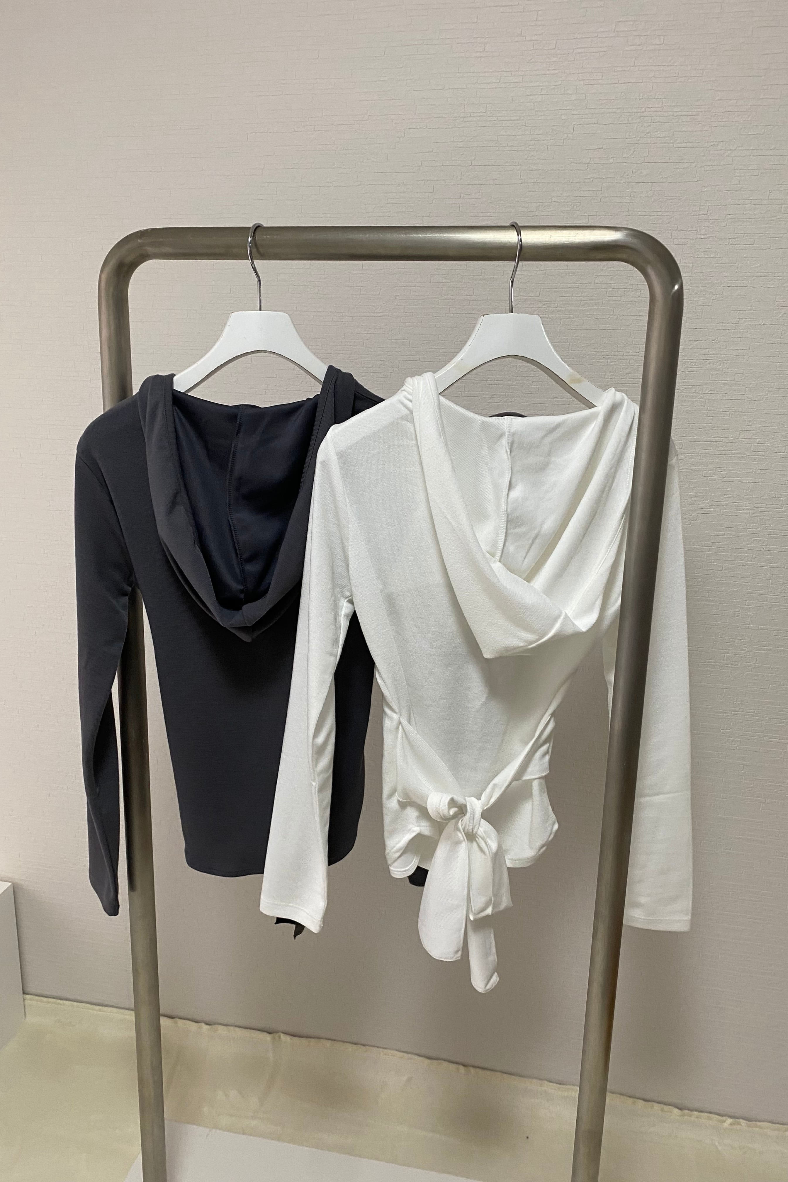 Hooded Ribbon Wrap Tops (White) 2603-41-007