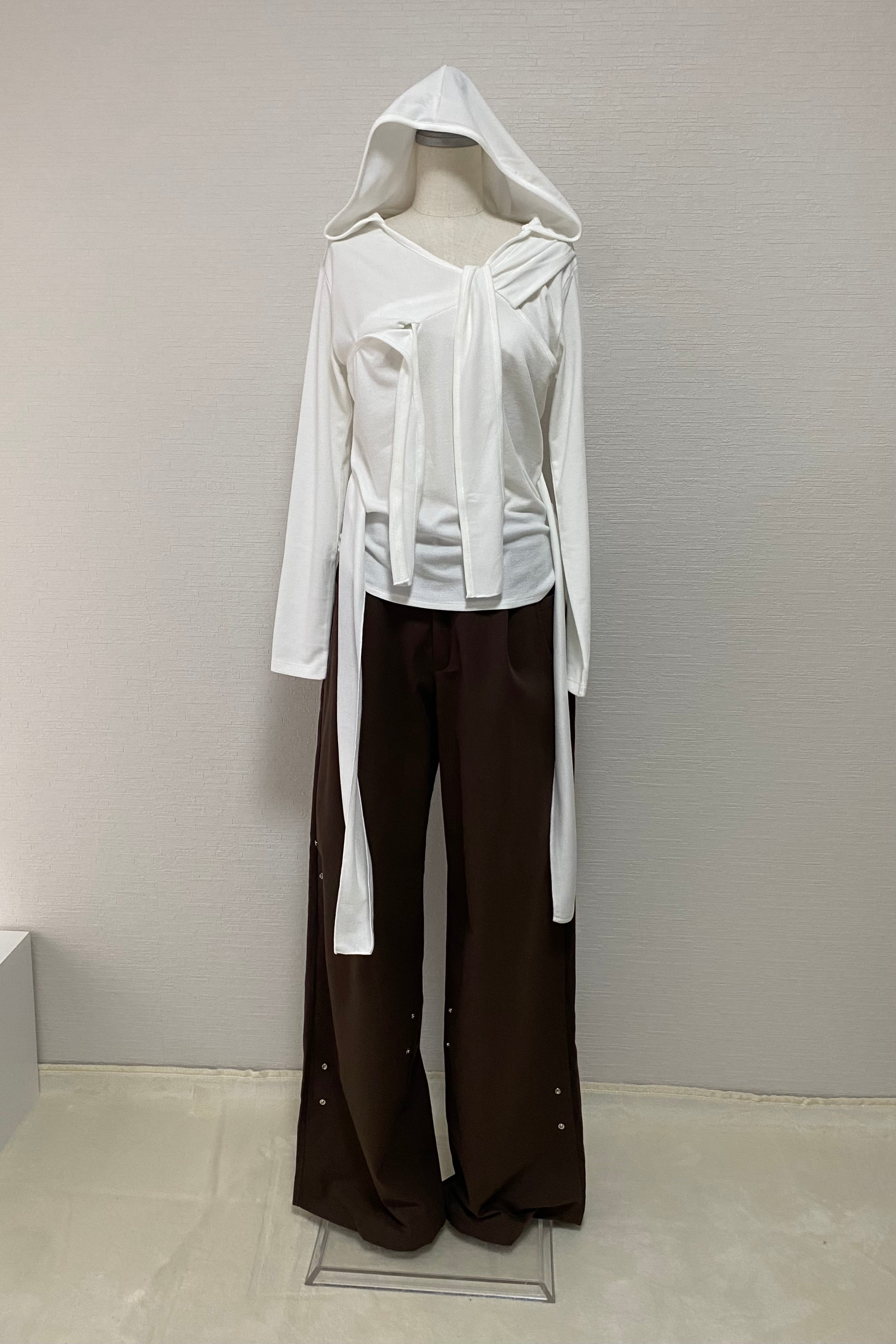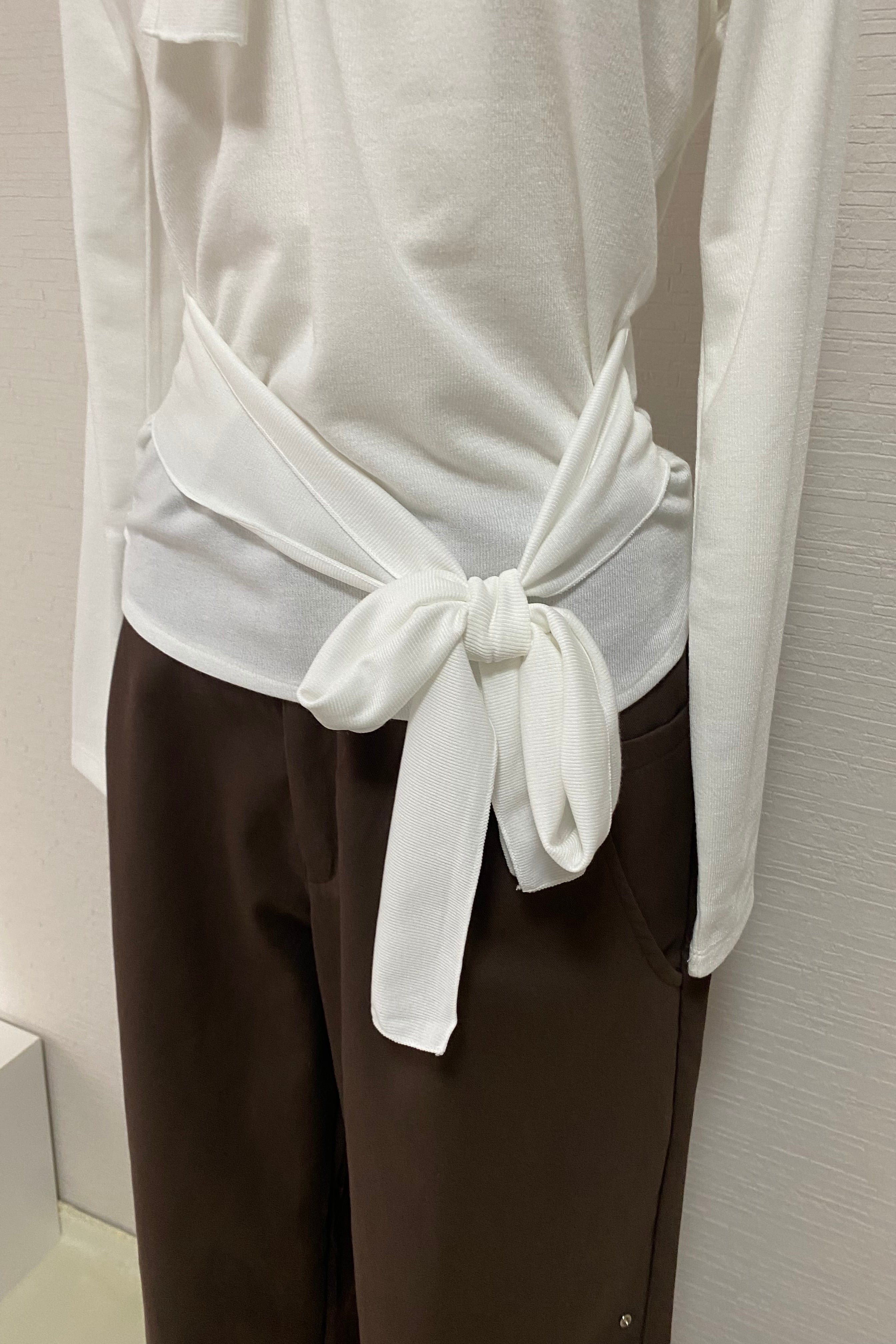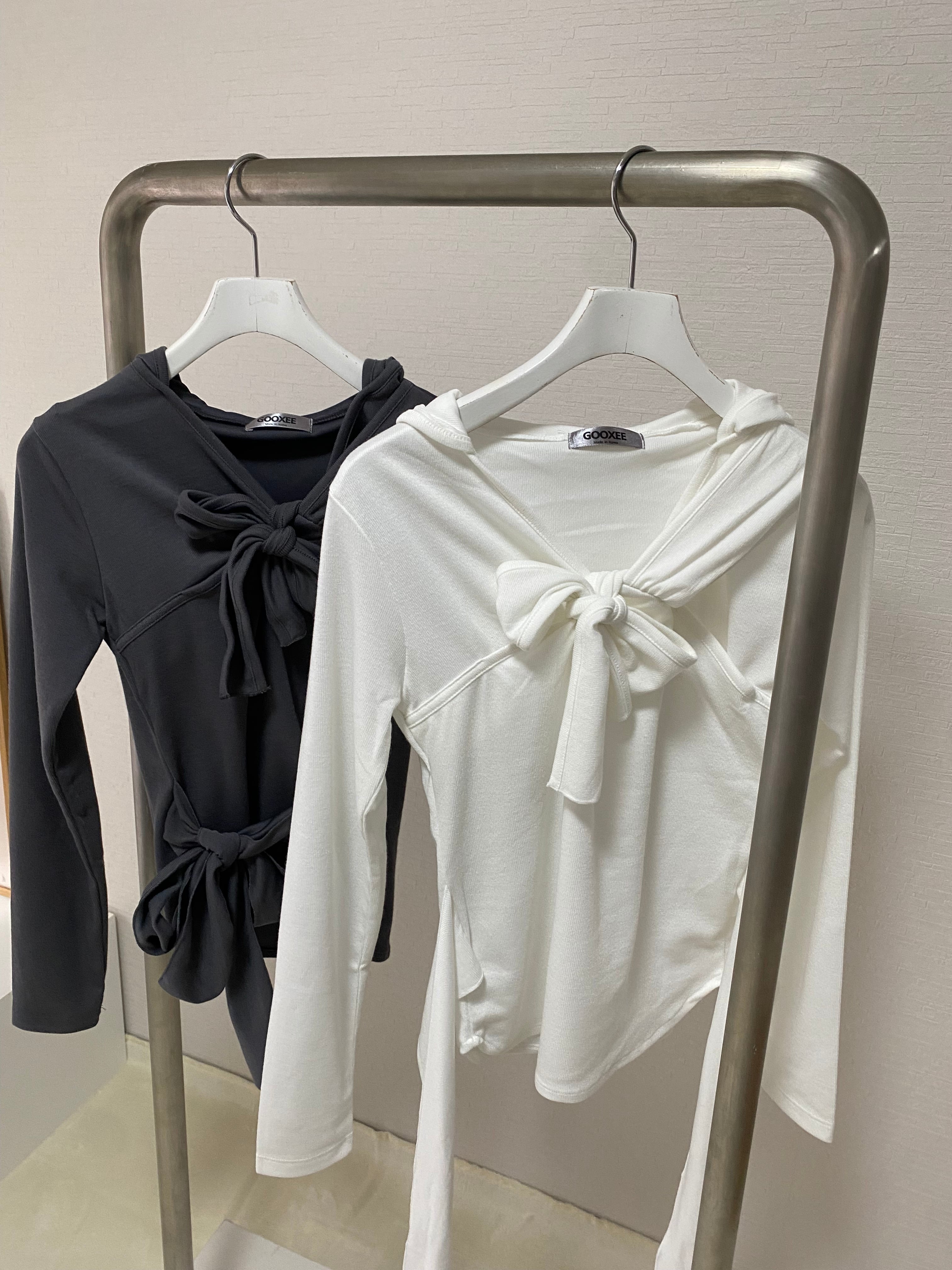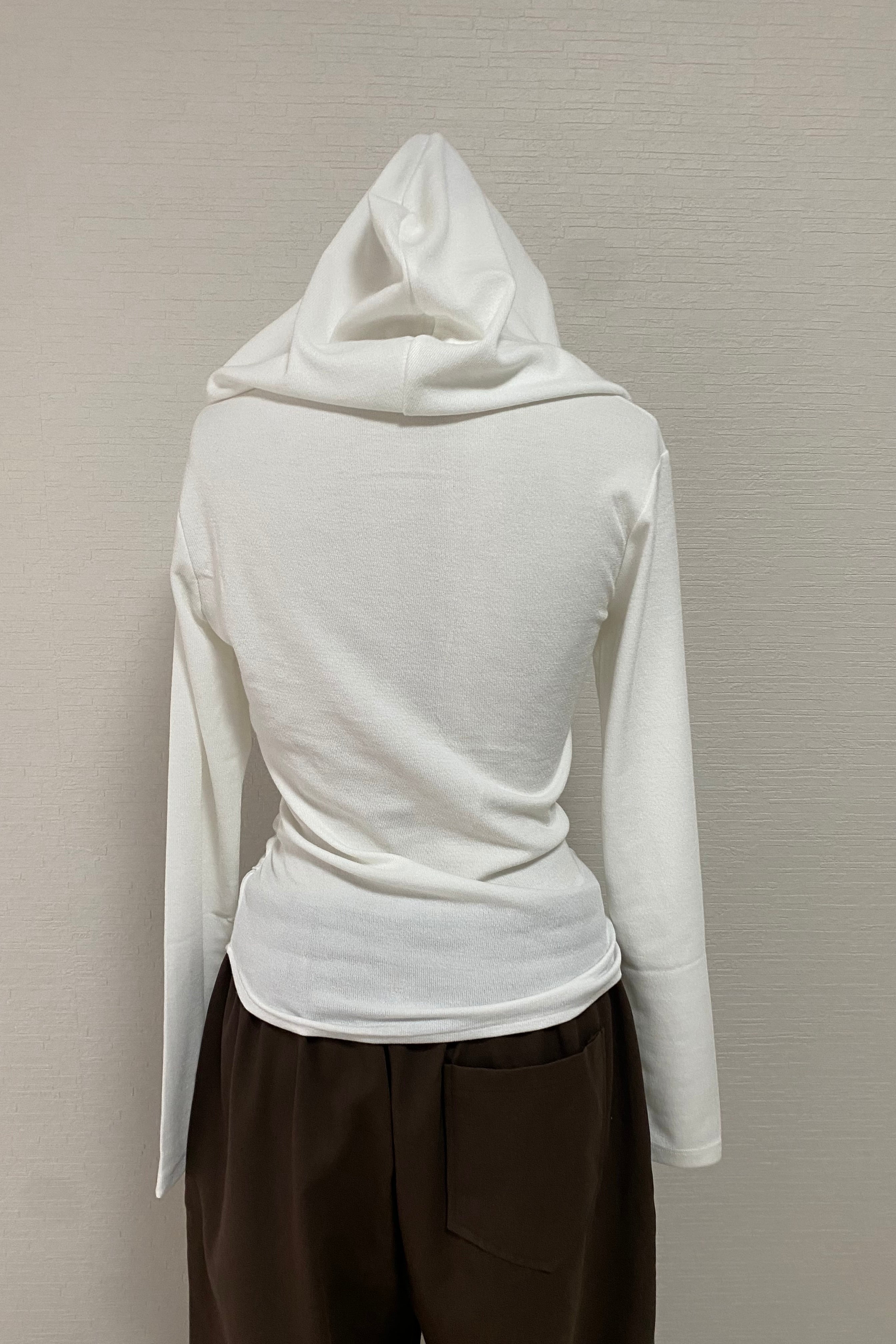 Hooded Ribbon Wrap Tops (White) 2603-41-007
