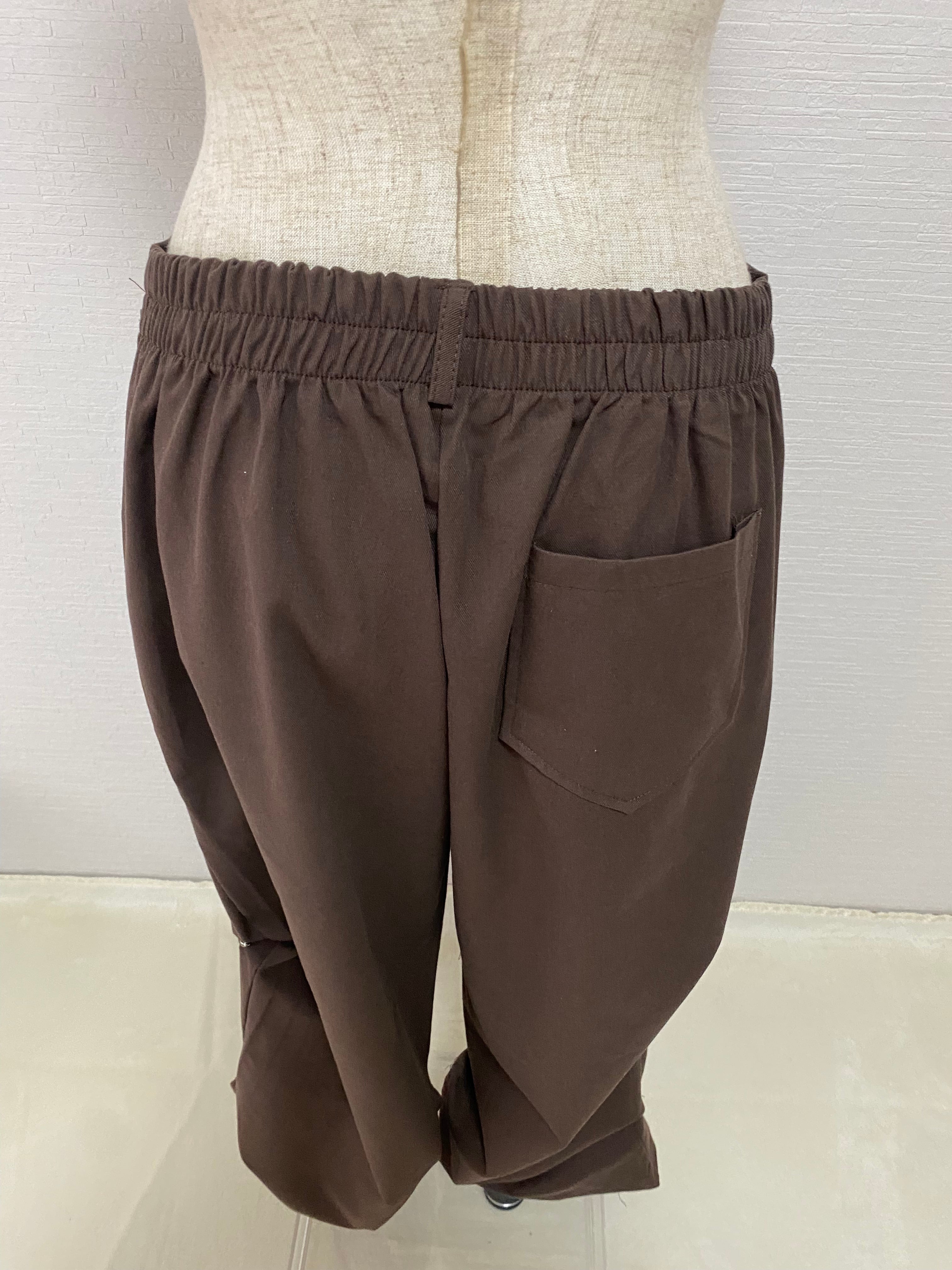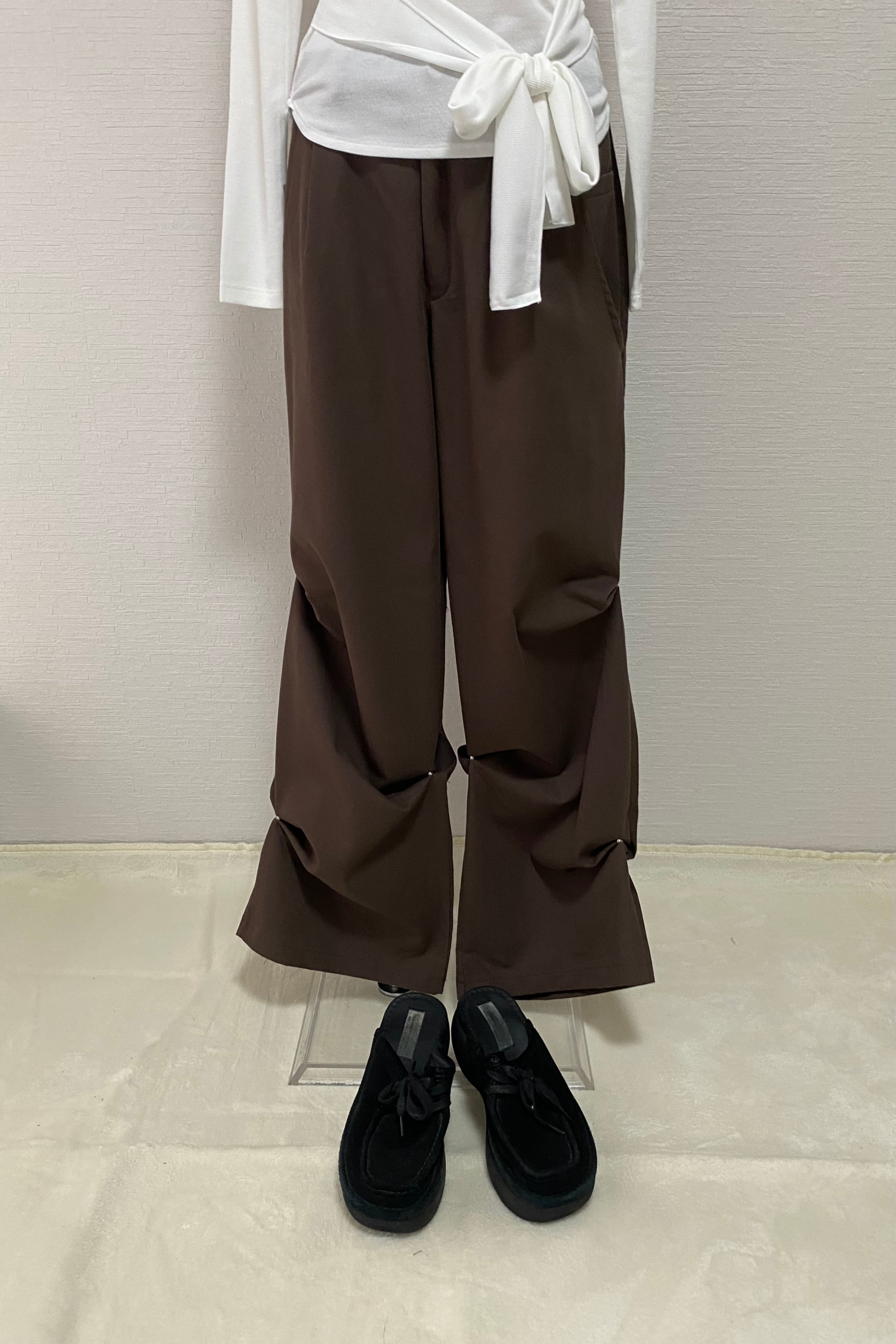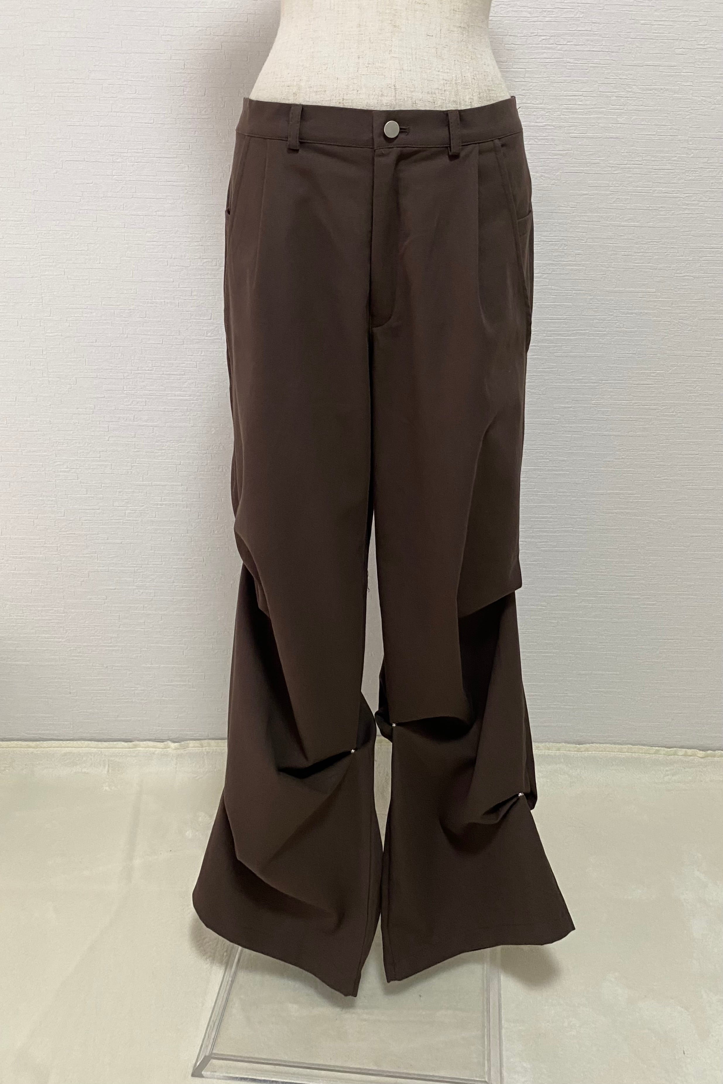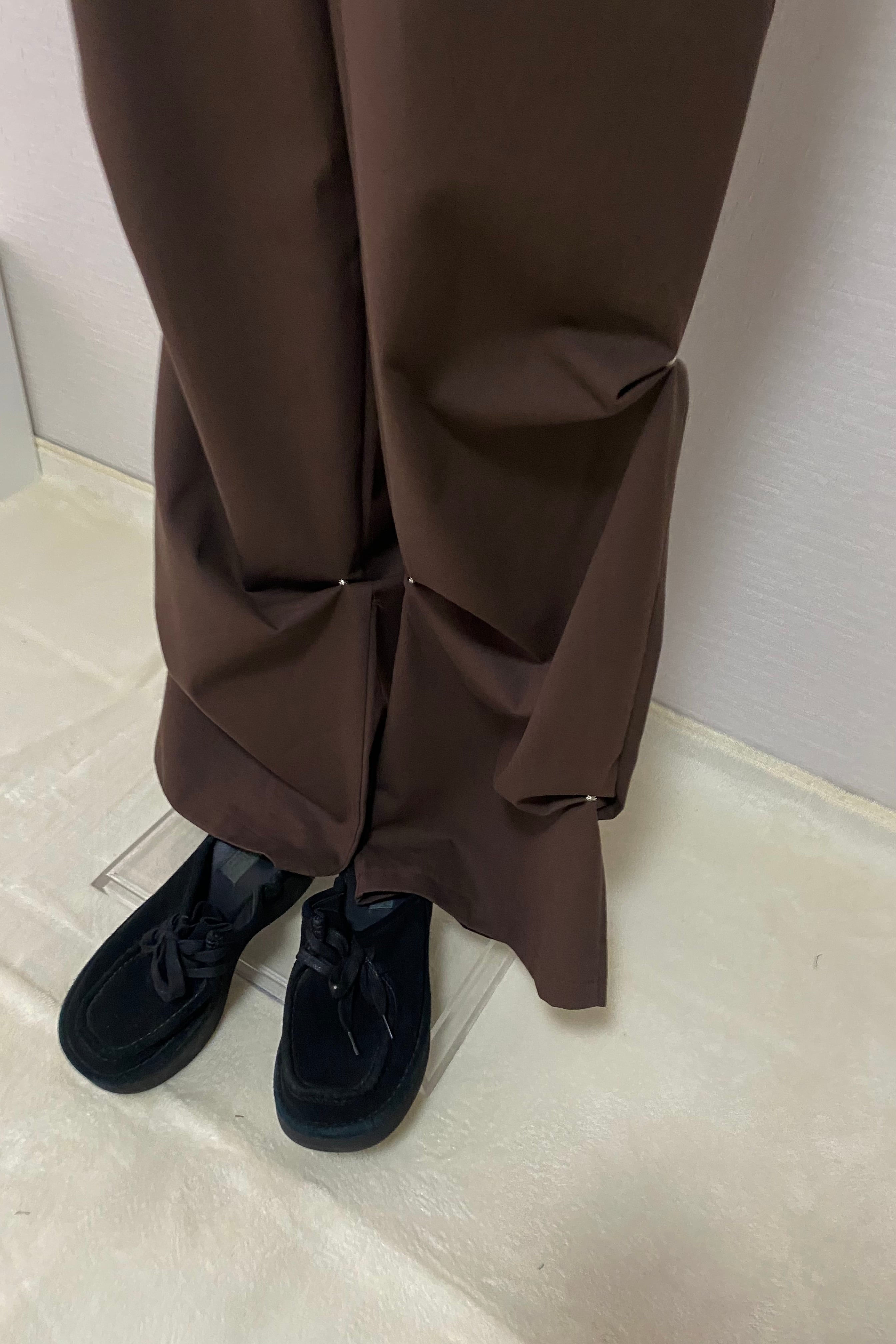 膝下部分にタックを入れ、スナップボタンで留めることで生まれるドレープが特徴。