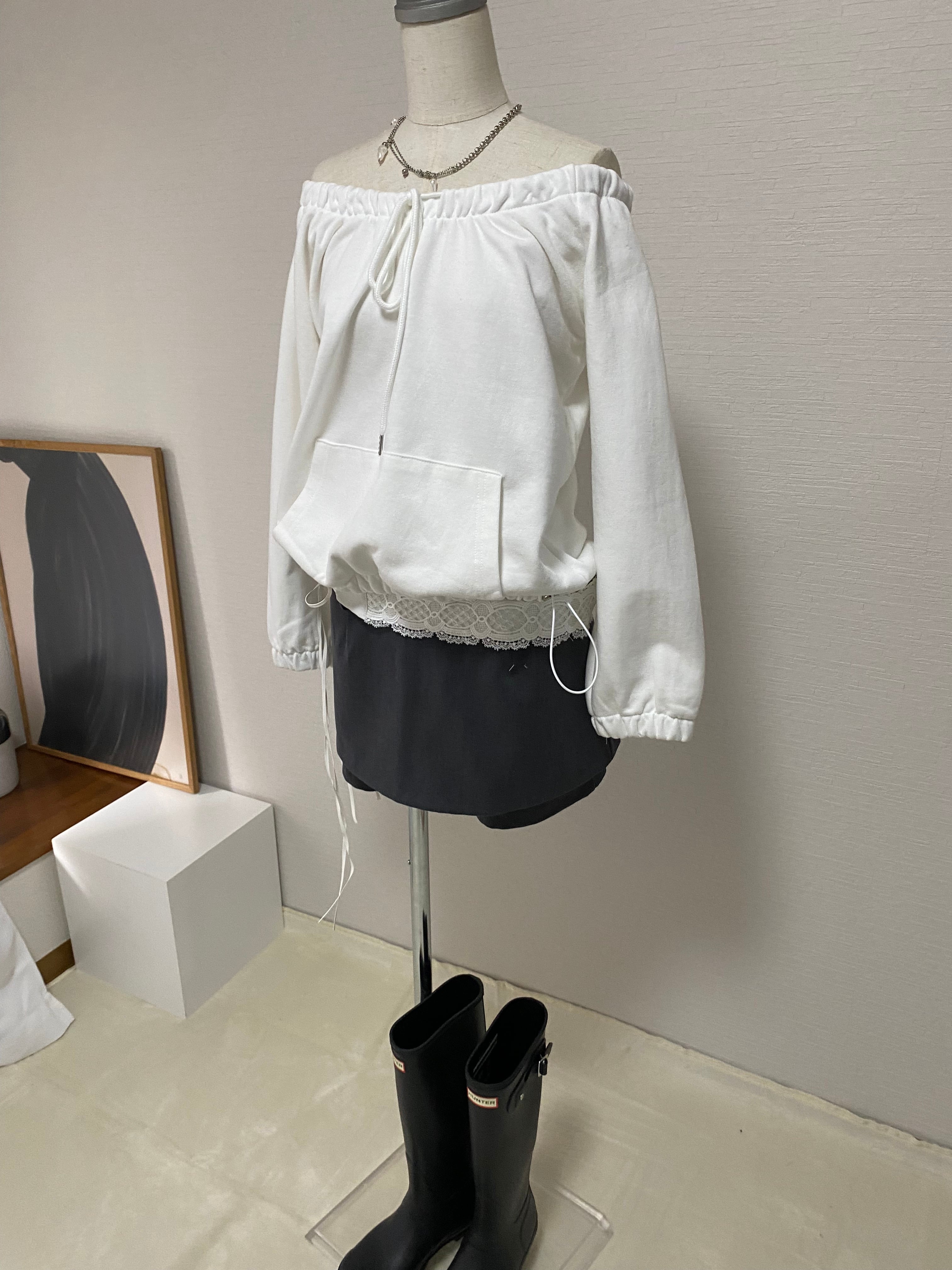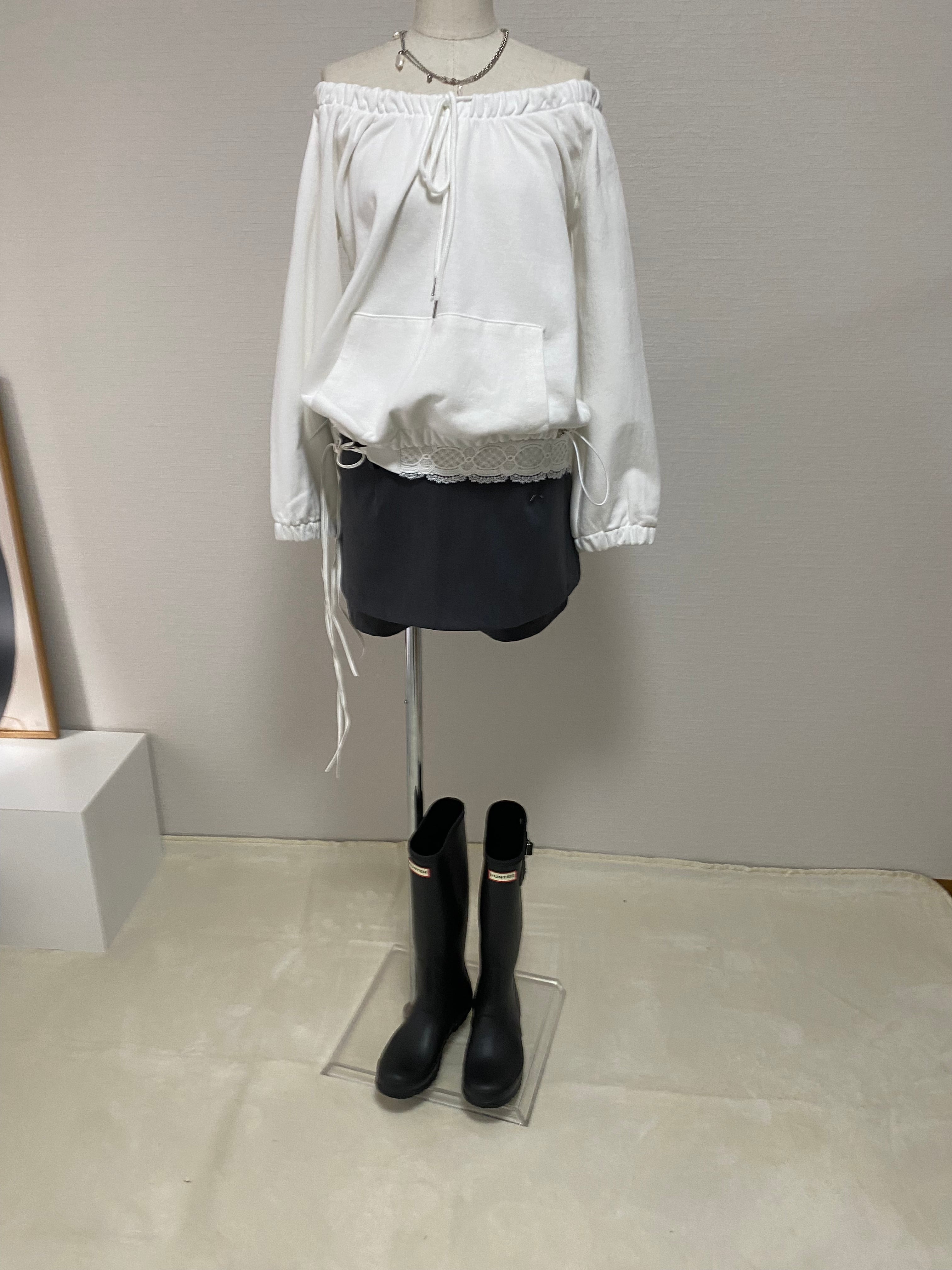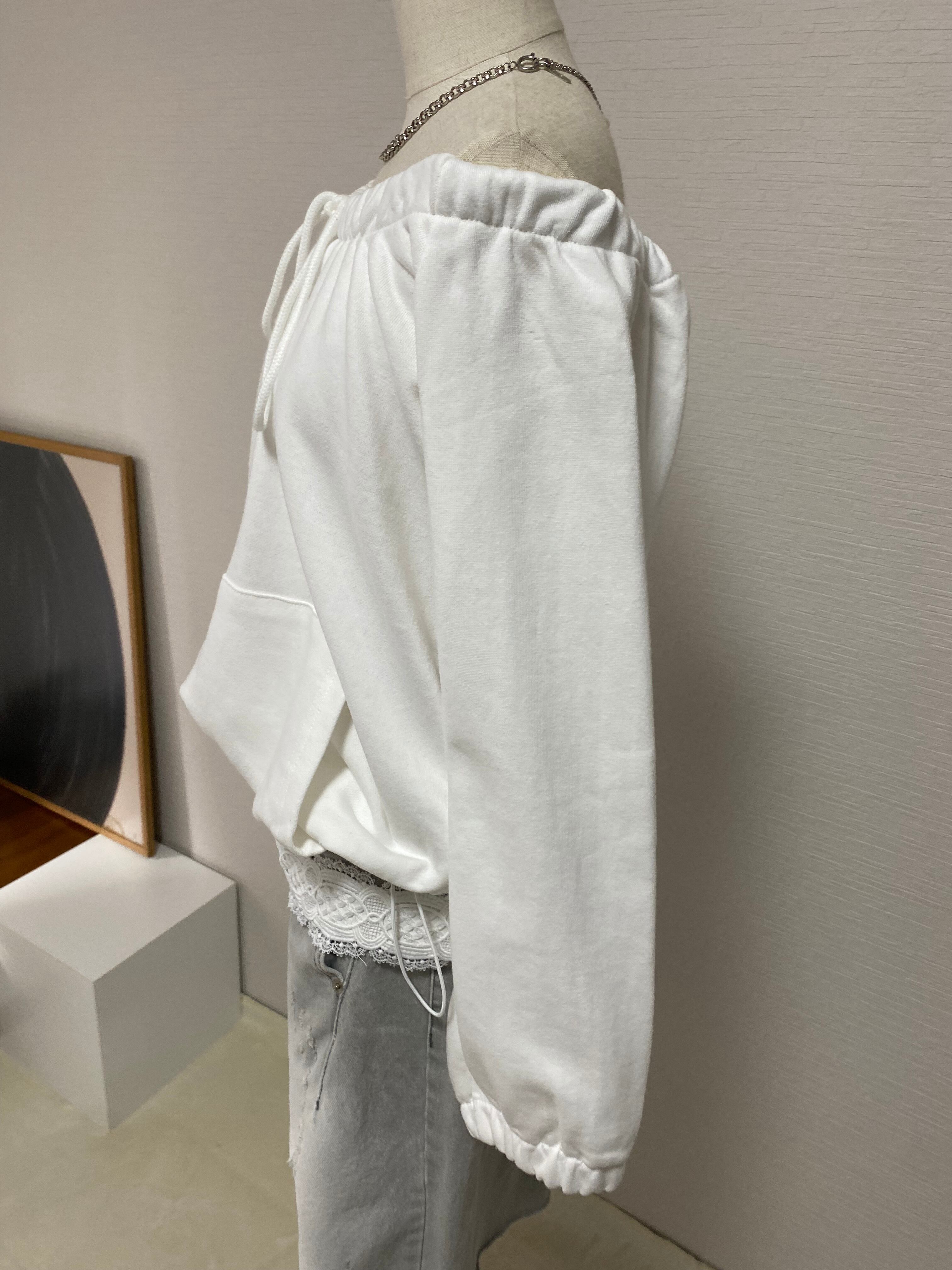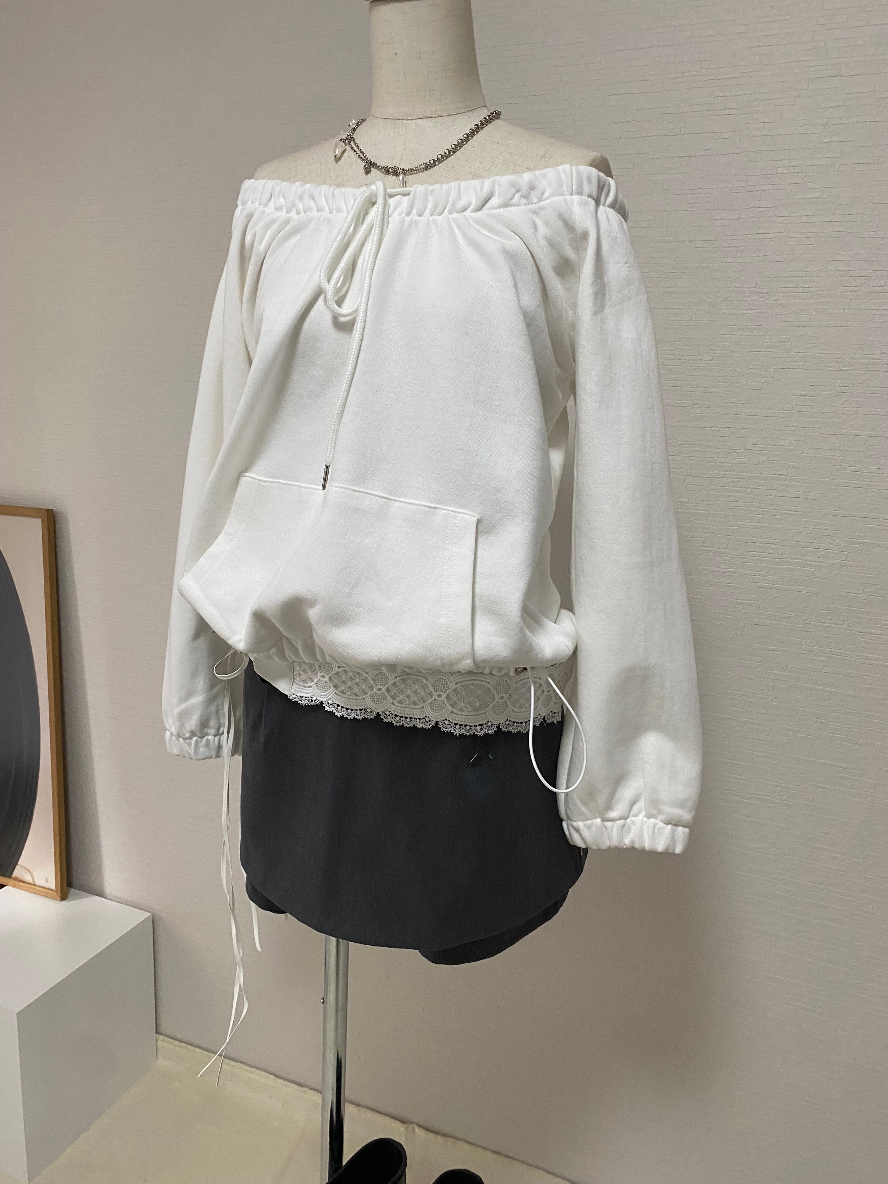 ライトスウェット素材を使用したオフショルダートップス。