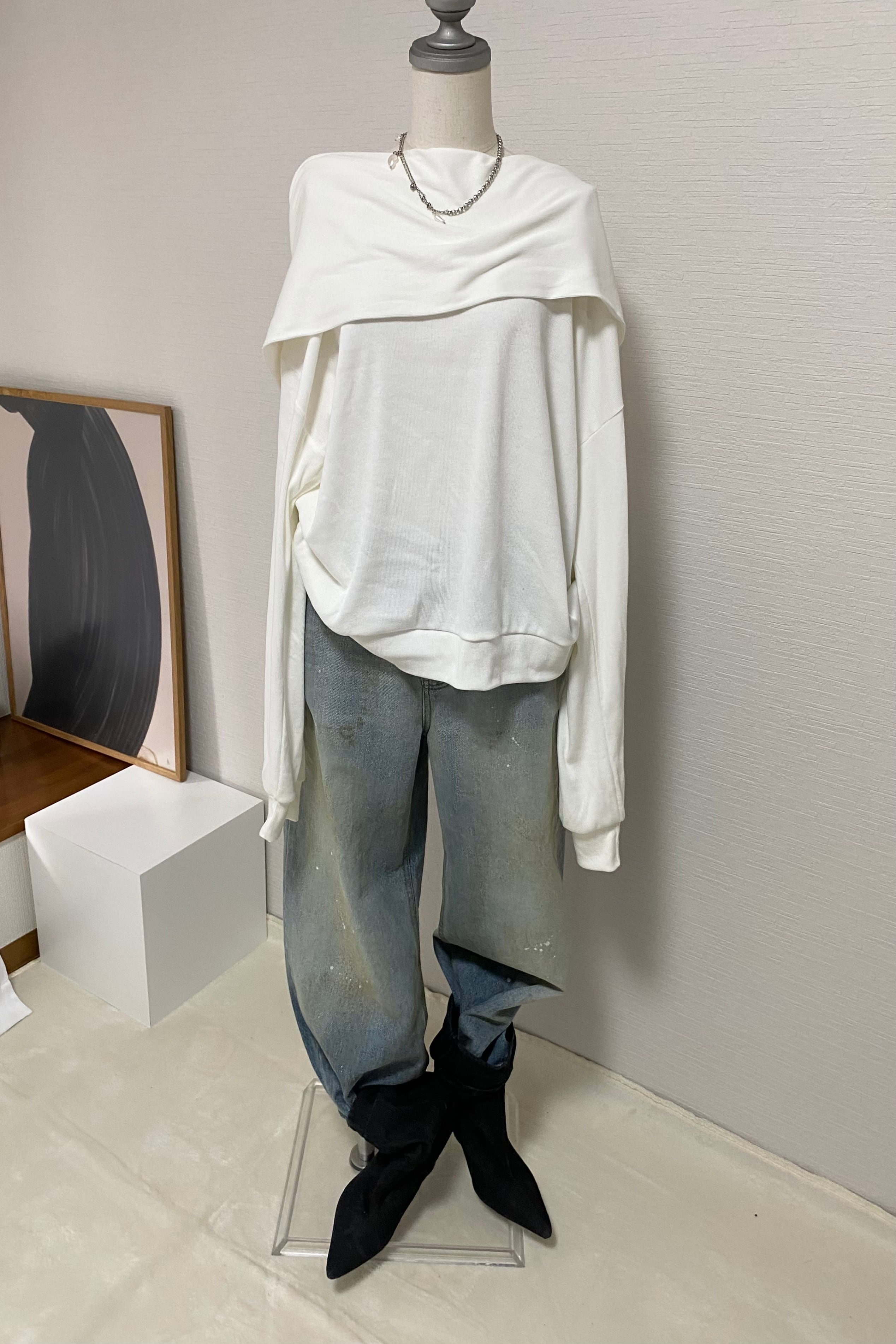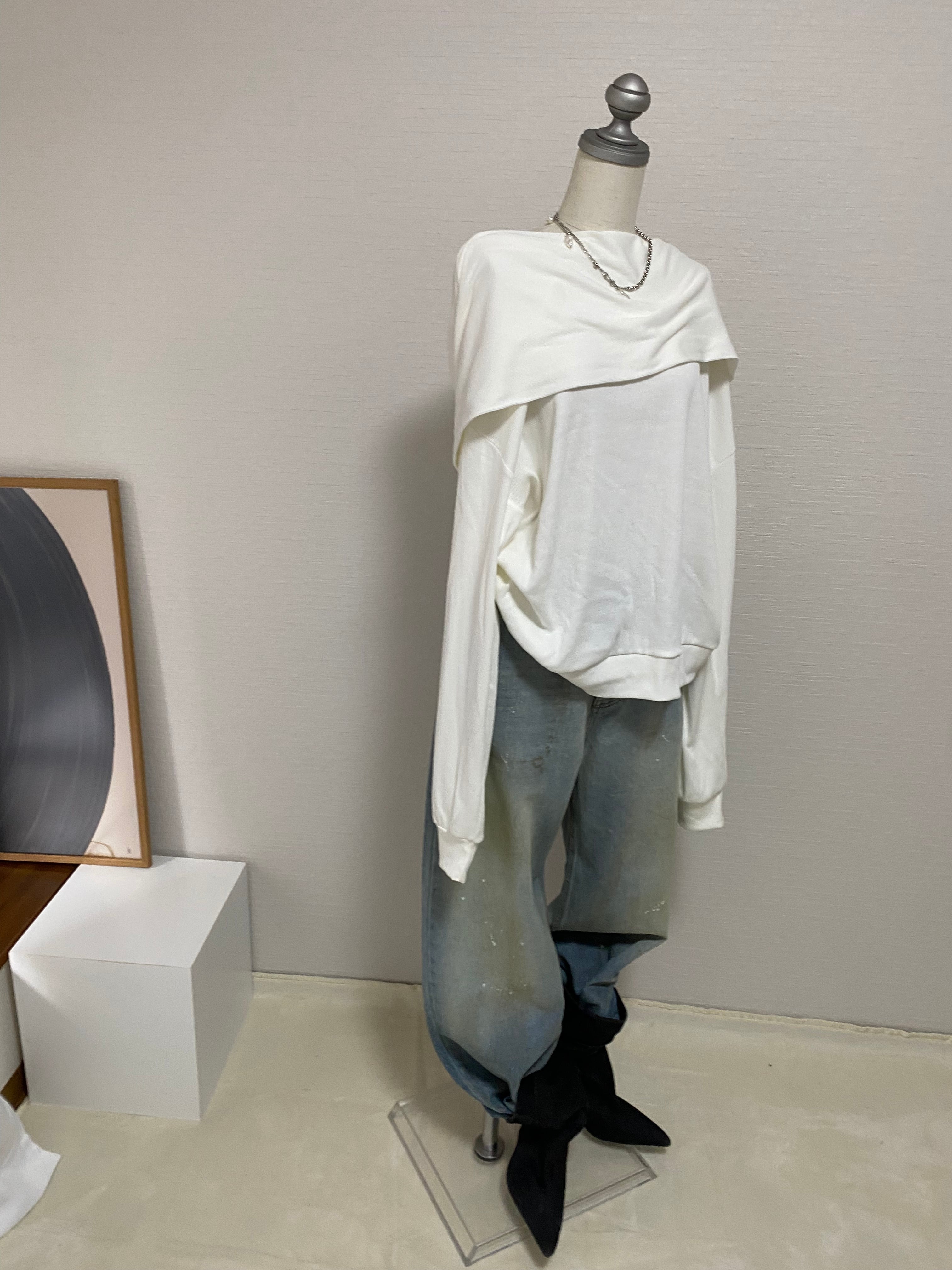 大きめのネックデザインで オフショルダーとしても着用できるデザインになっており、ラフな抜け感のあるスタイリングを楽しめます。