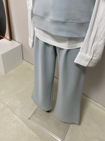 パンツはリラックス感のあるシルエットで、ウエストゴム仕様の快適な履き心地。