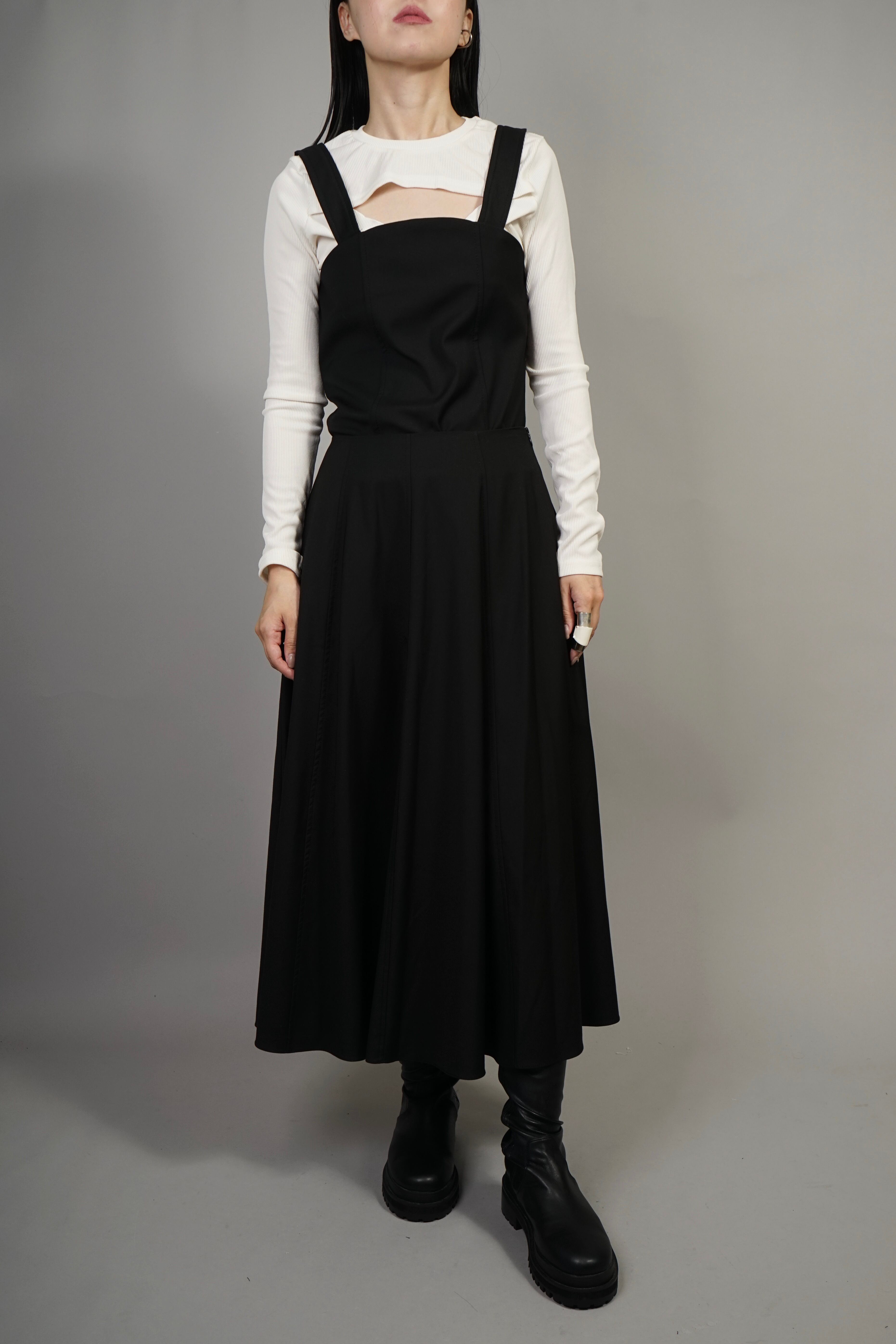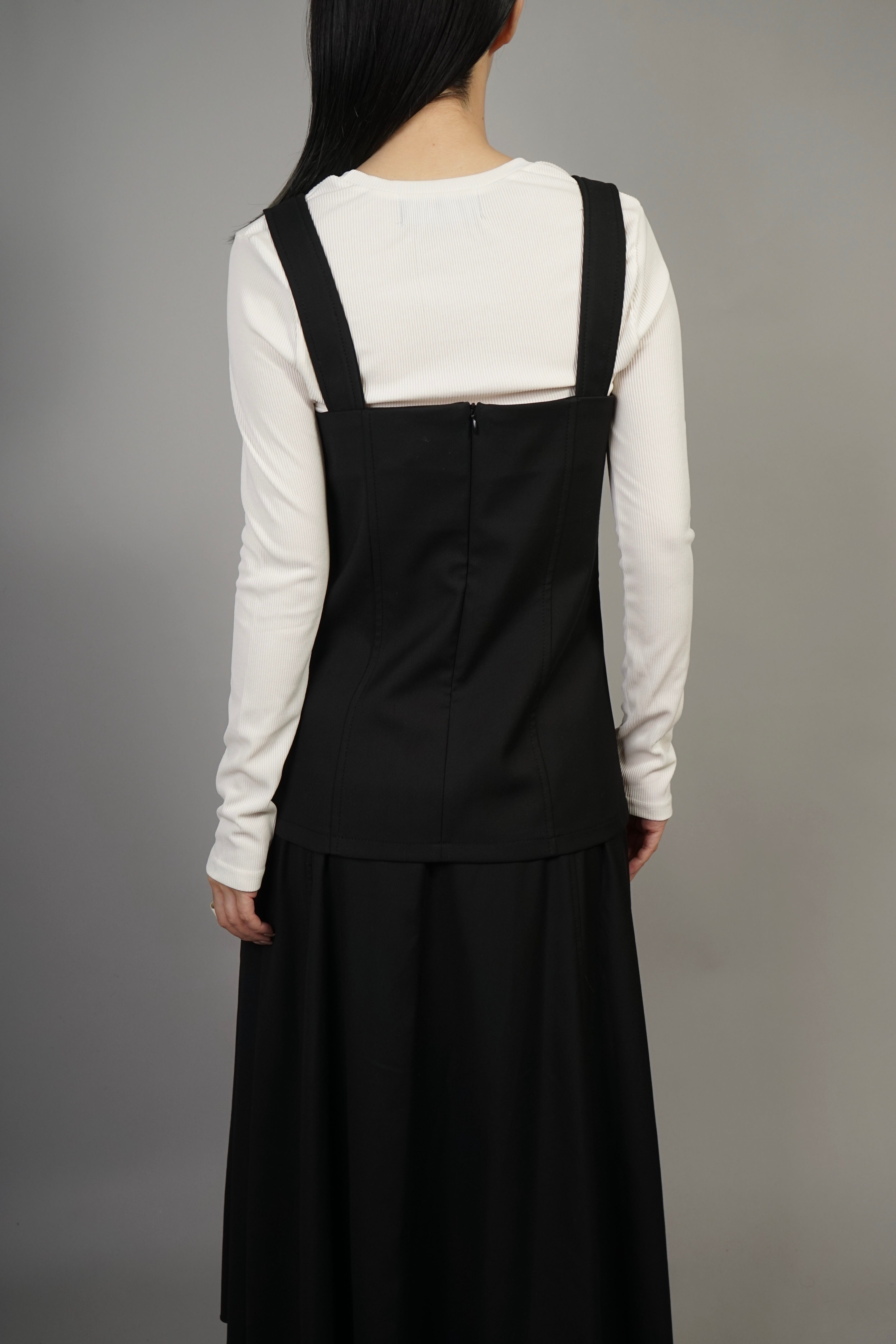 ダブルフェイスで張り感のあるサージ素材を使用した、パネル切り替えのミドルビスチェ。