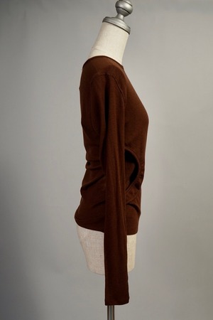 レーヨン配合率が高く滑らかな肌触りに、ストレッチが効いてしなやかにフィットするウールブレンドリブ素材を使用。
