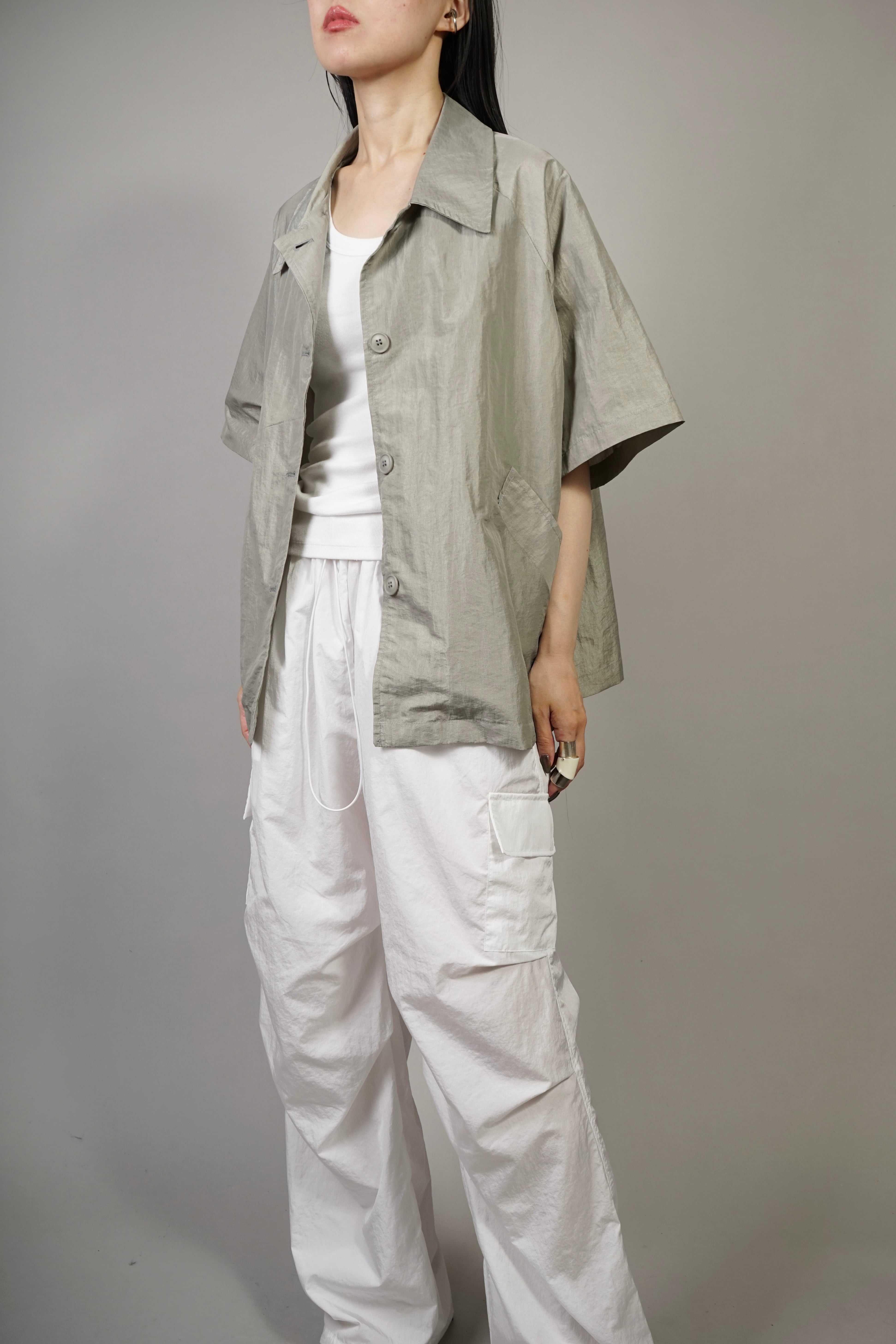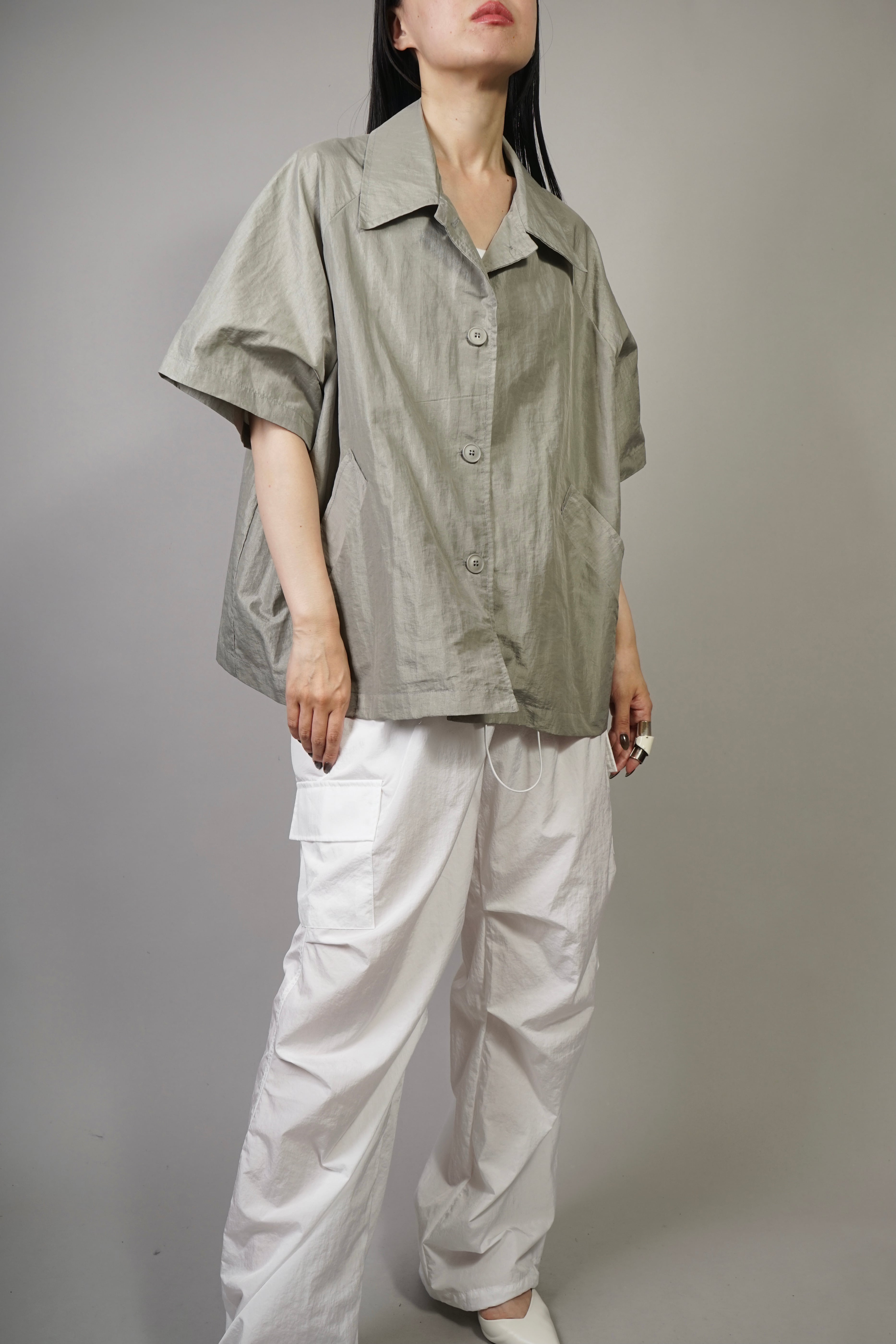 程よい光沢感のあるナイロンミックス素材を使用した、セパレートフーディーシャツ。