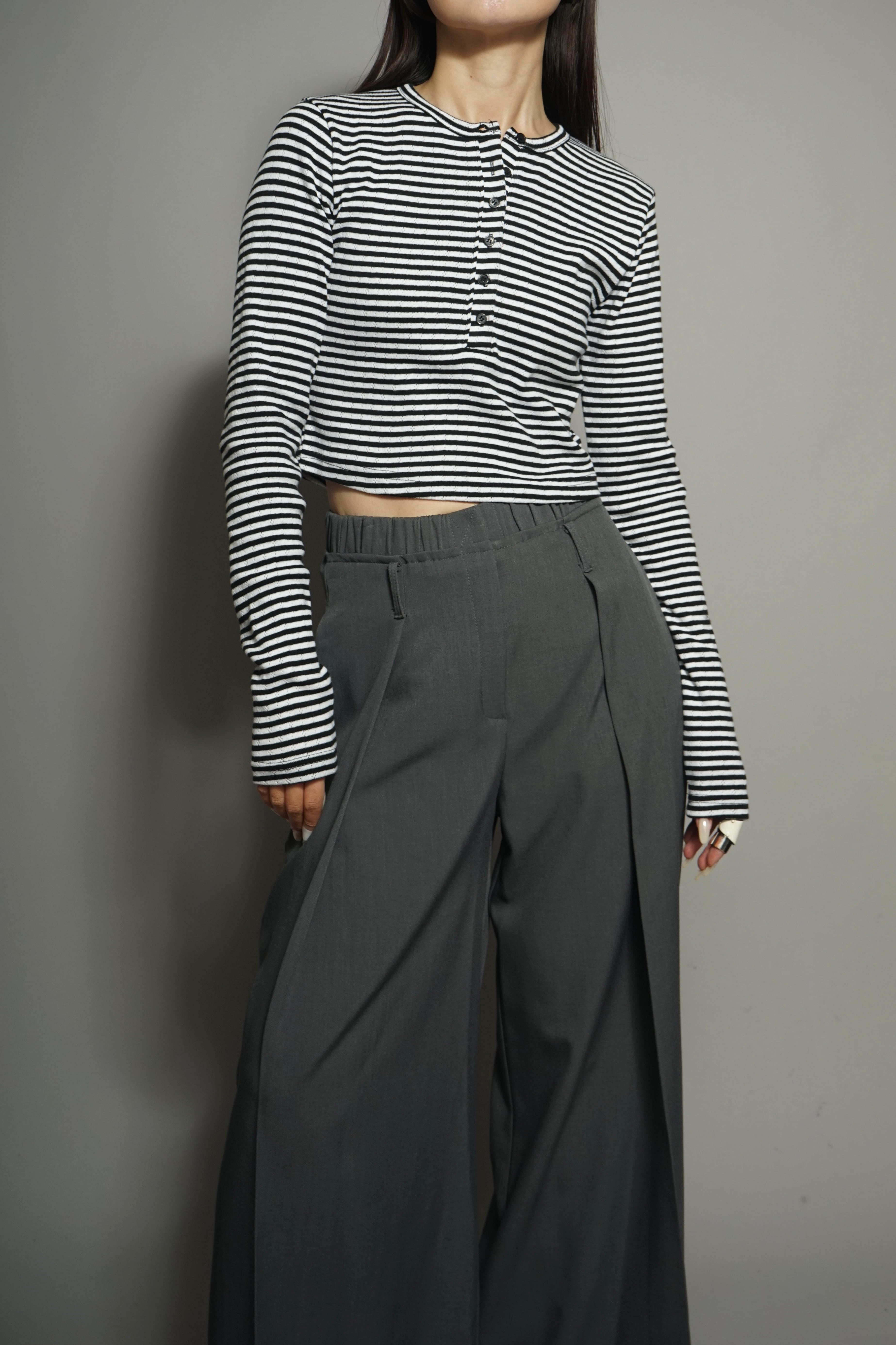 クロップドストライプトップス。