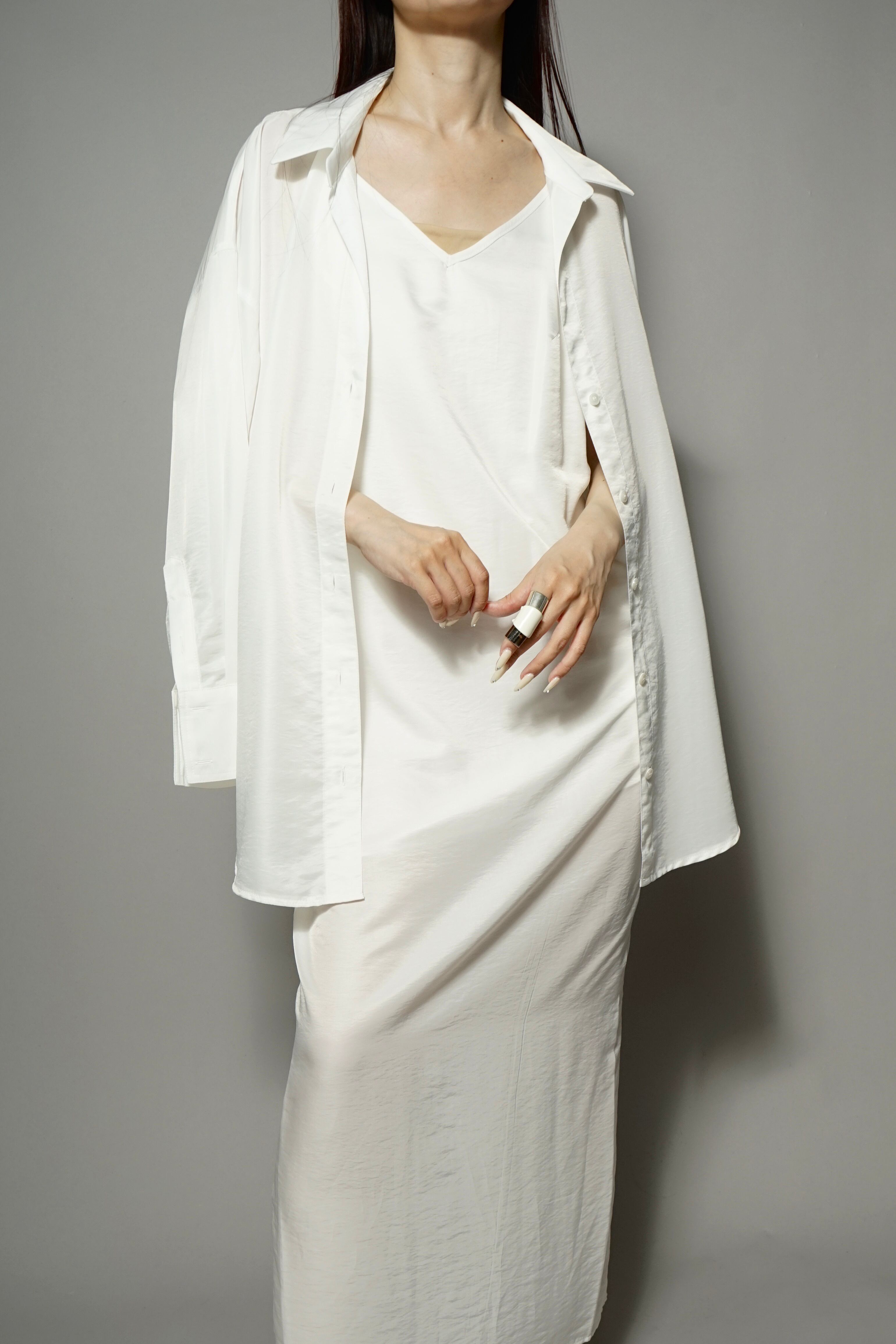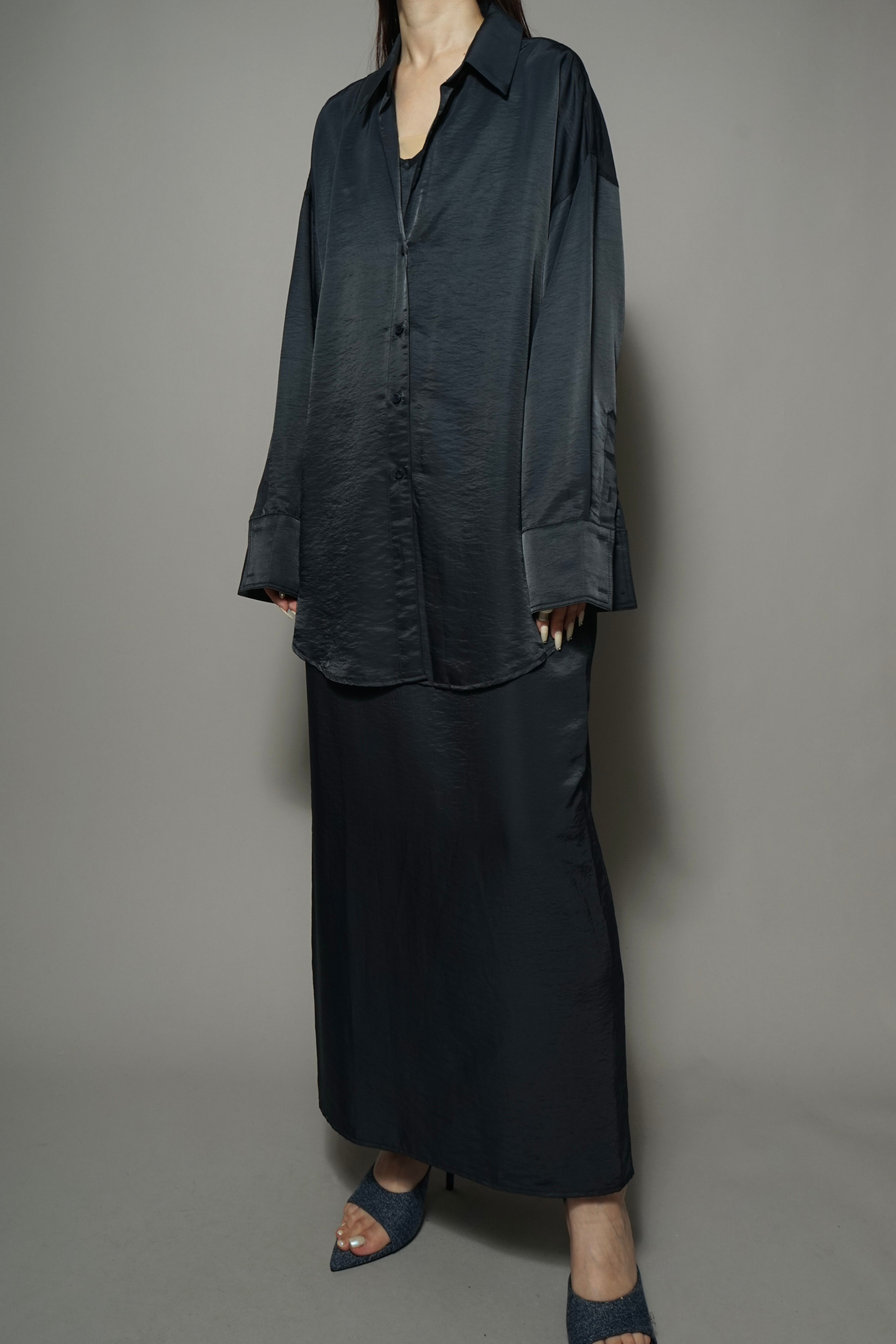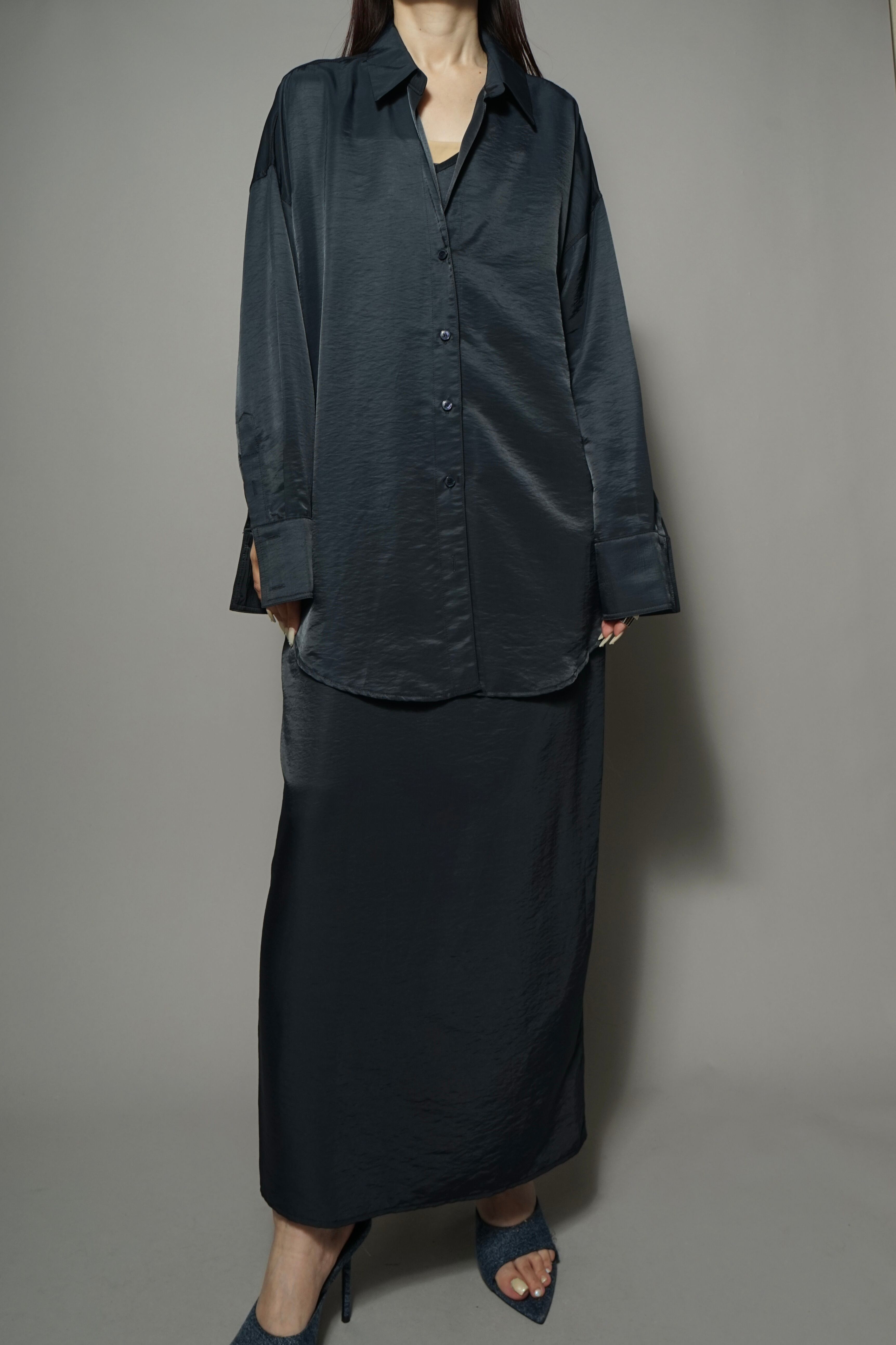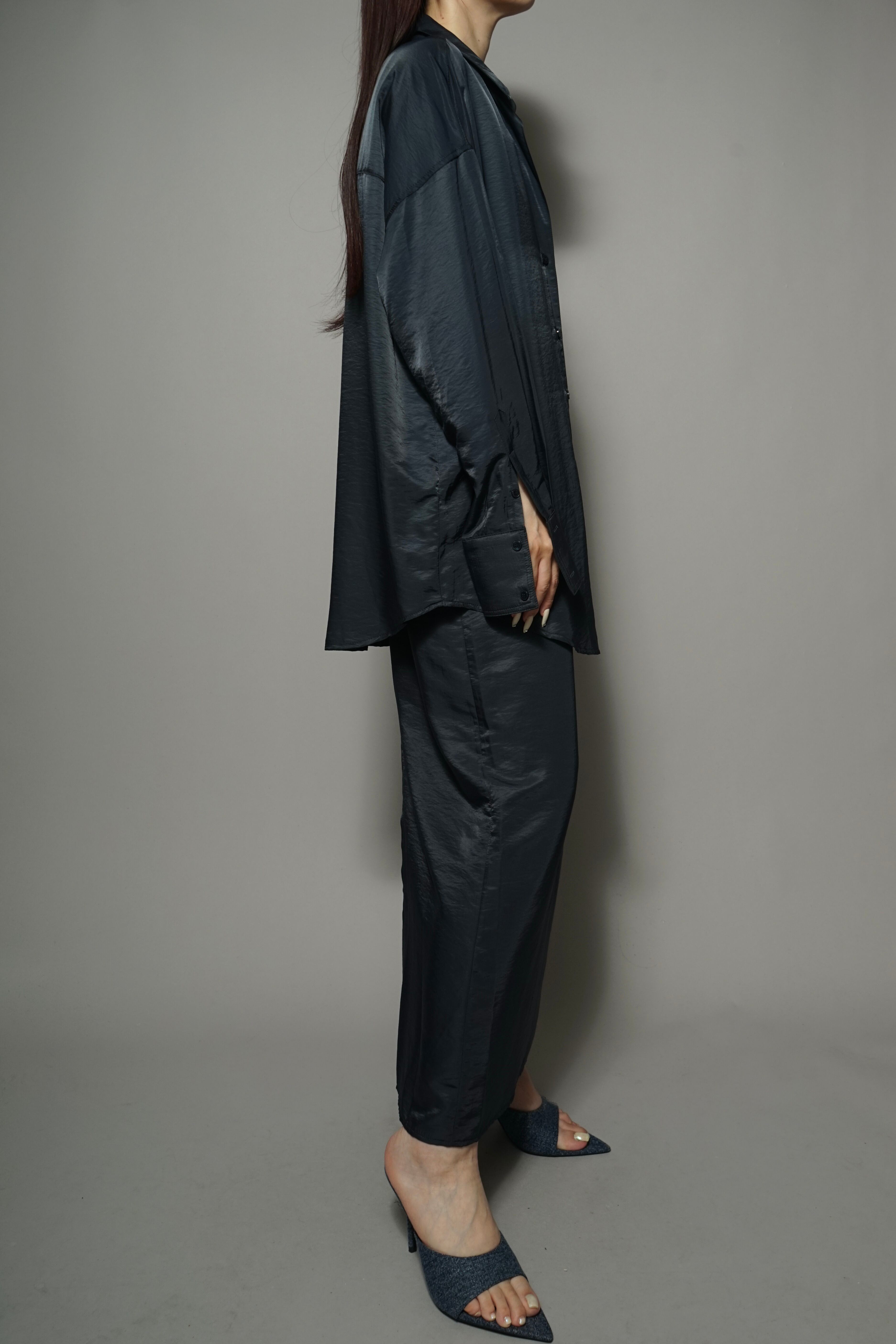 上品な光沢となめらかなシルキータッチのサテン素材を使用したシャツ